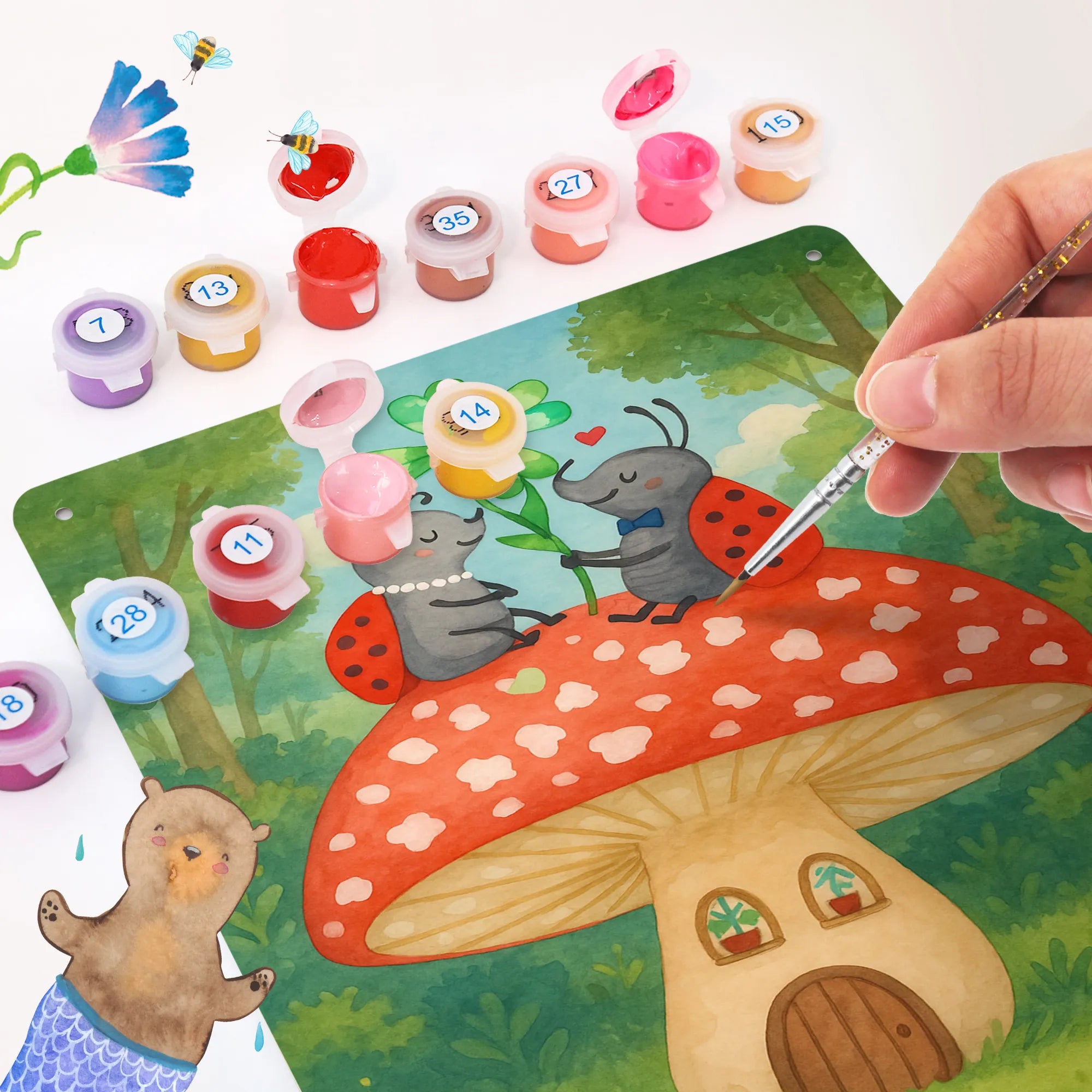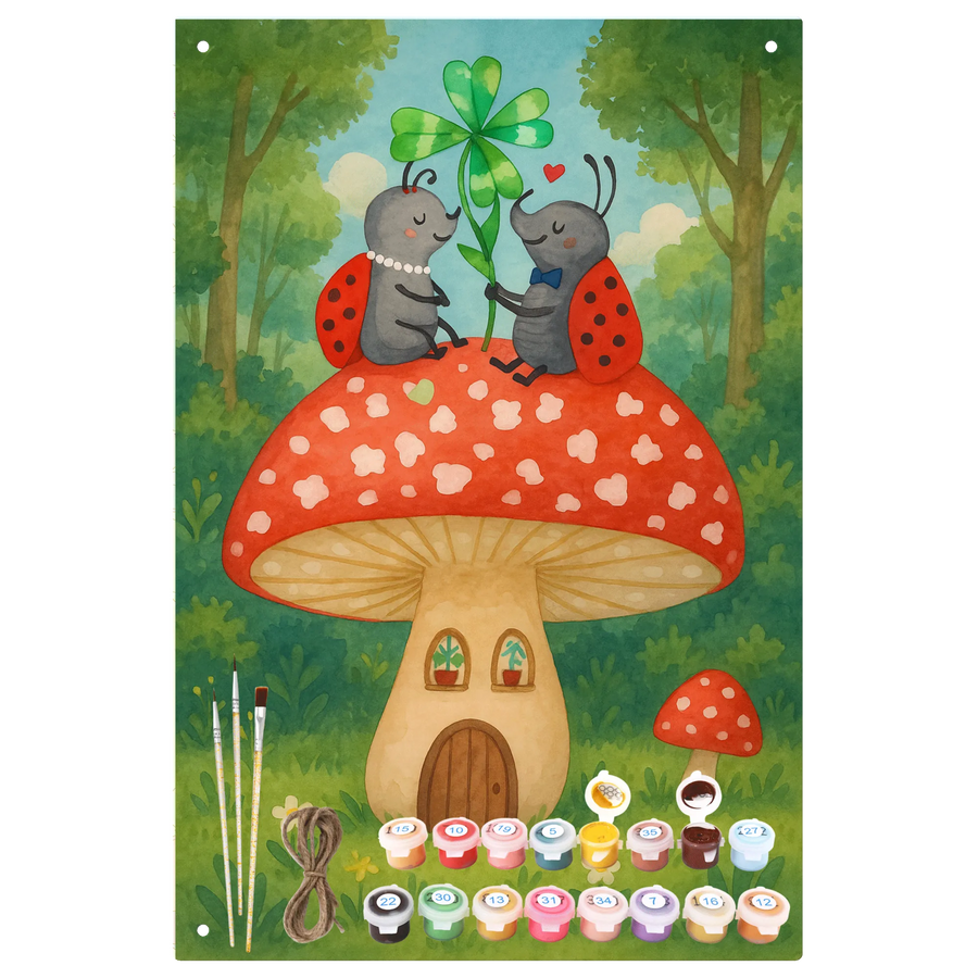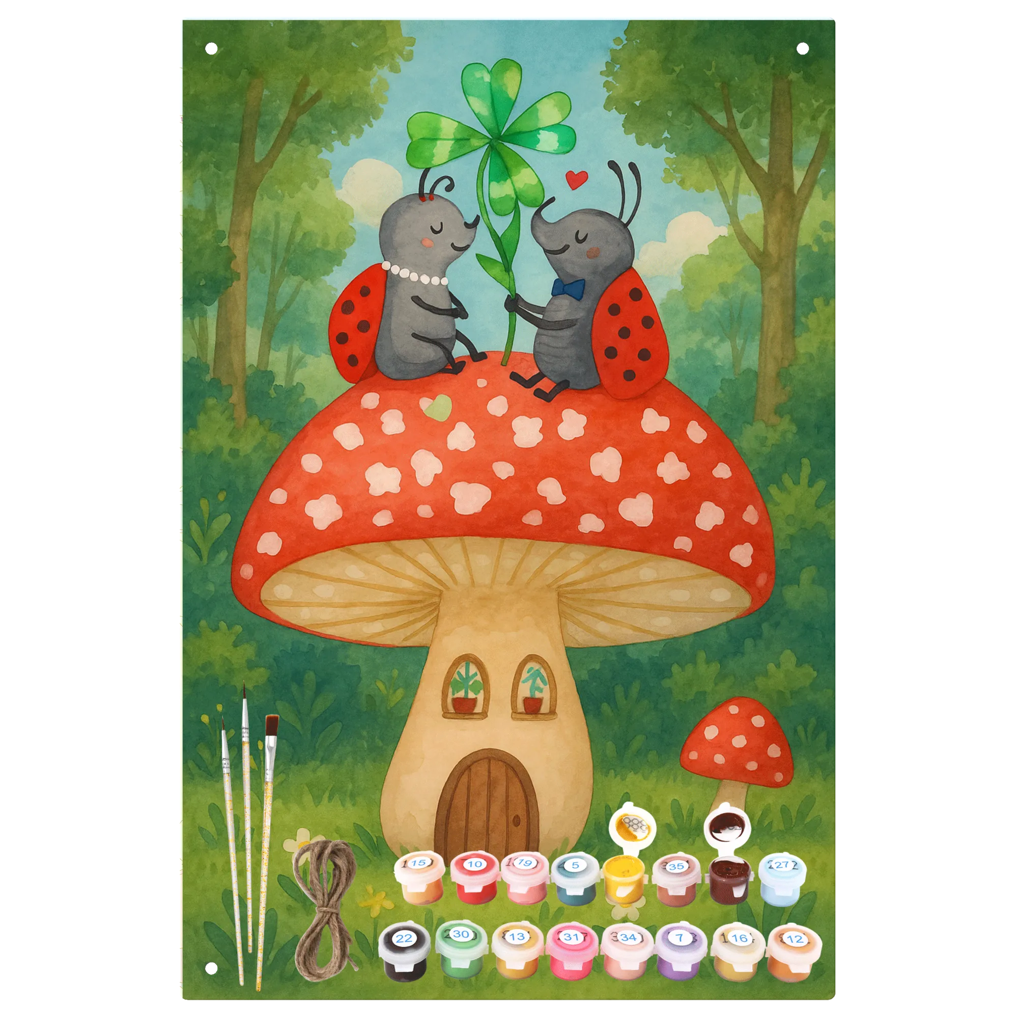 Malen nach Zahlen Metallschild Marienkäfer Fliegenpilz Design