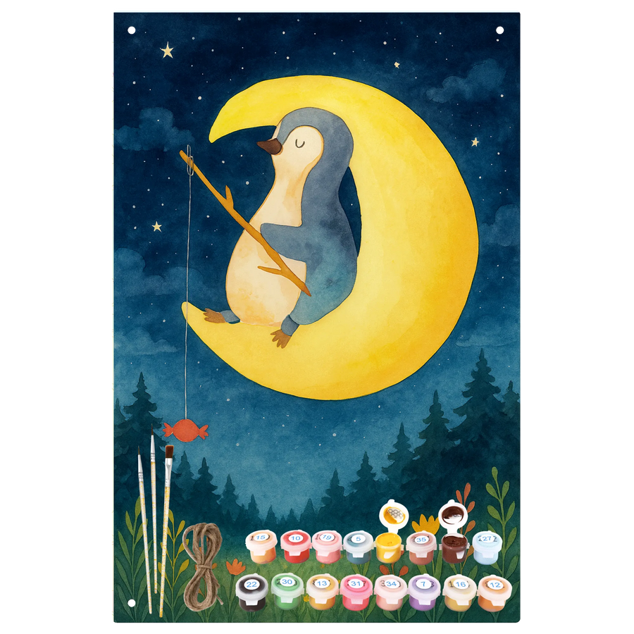 Malen nach Zahlen Metallschild Pinguin Mond Design