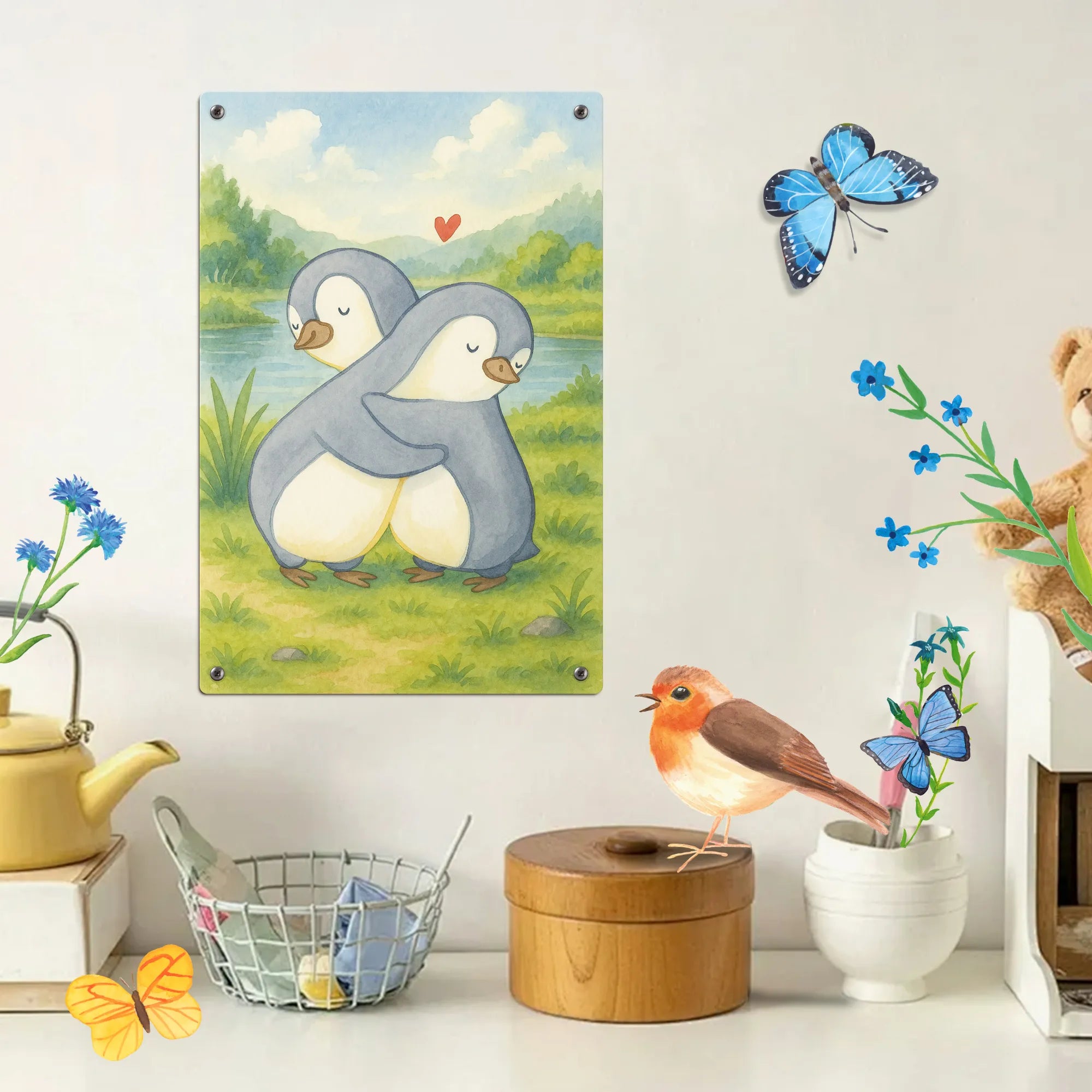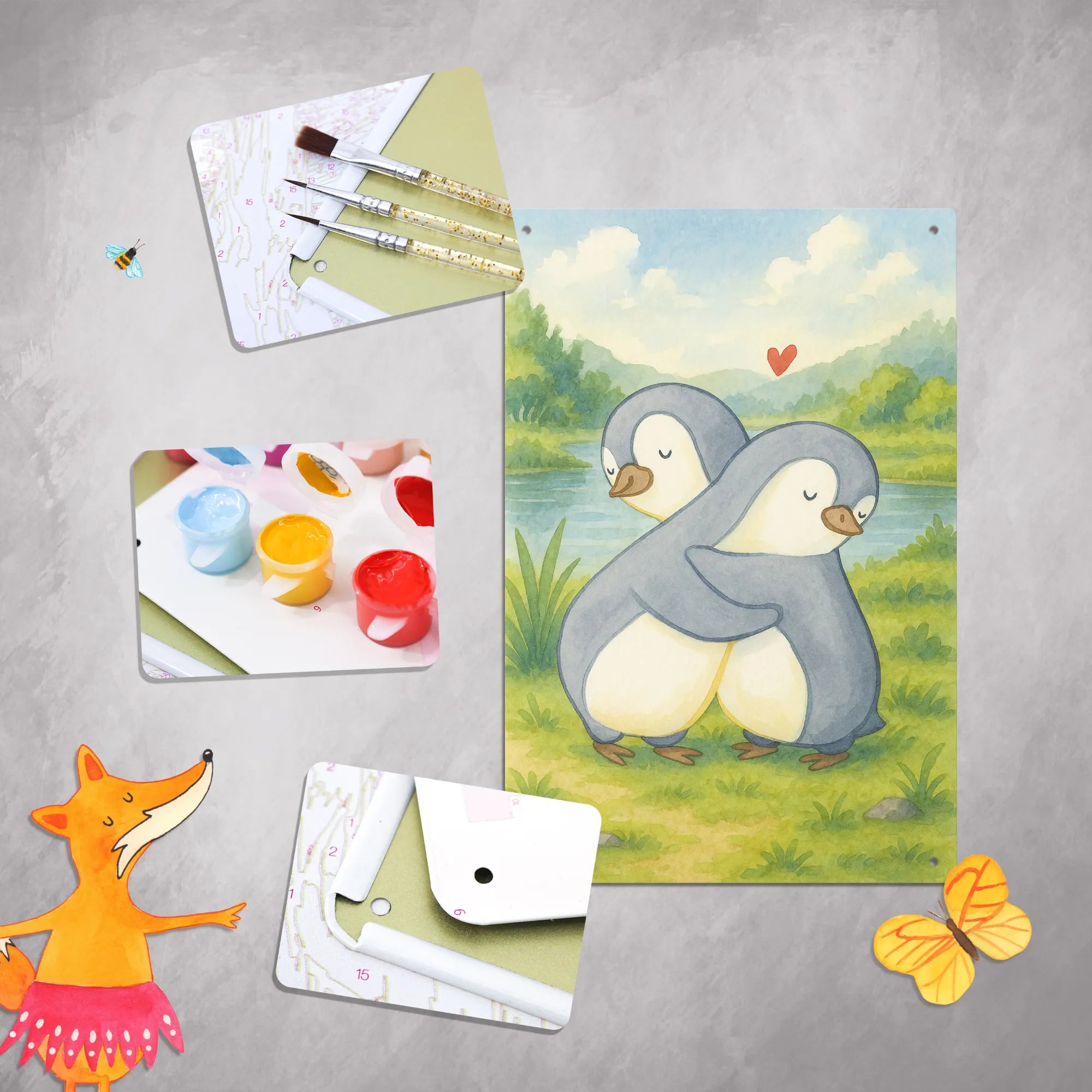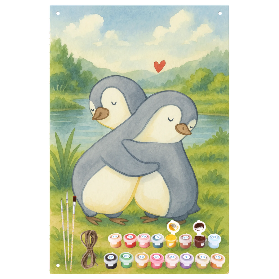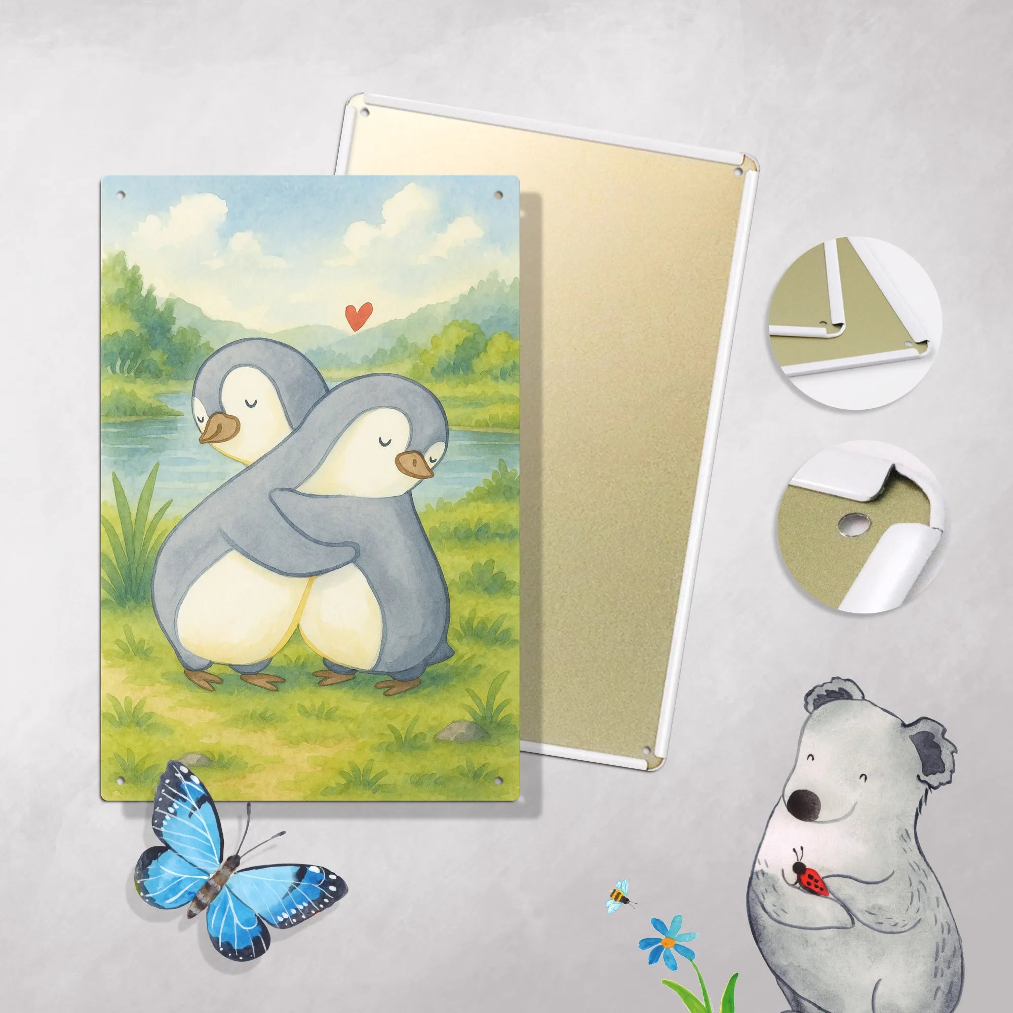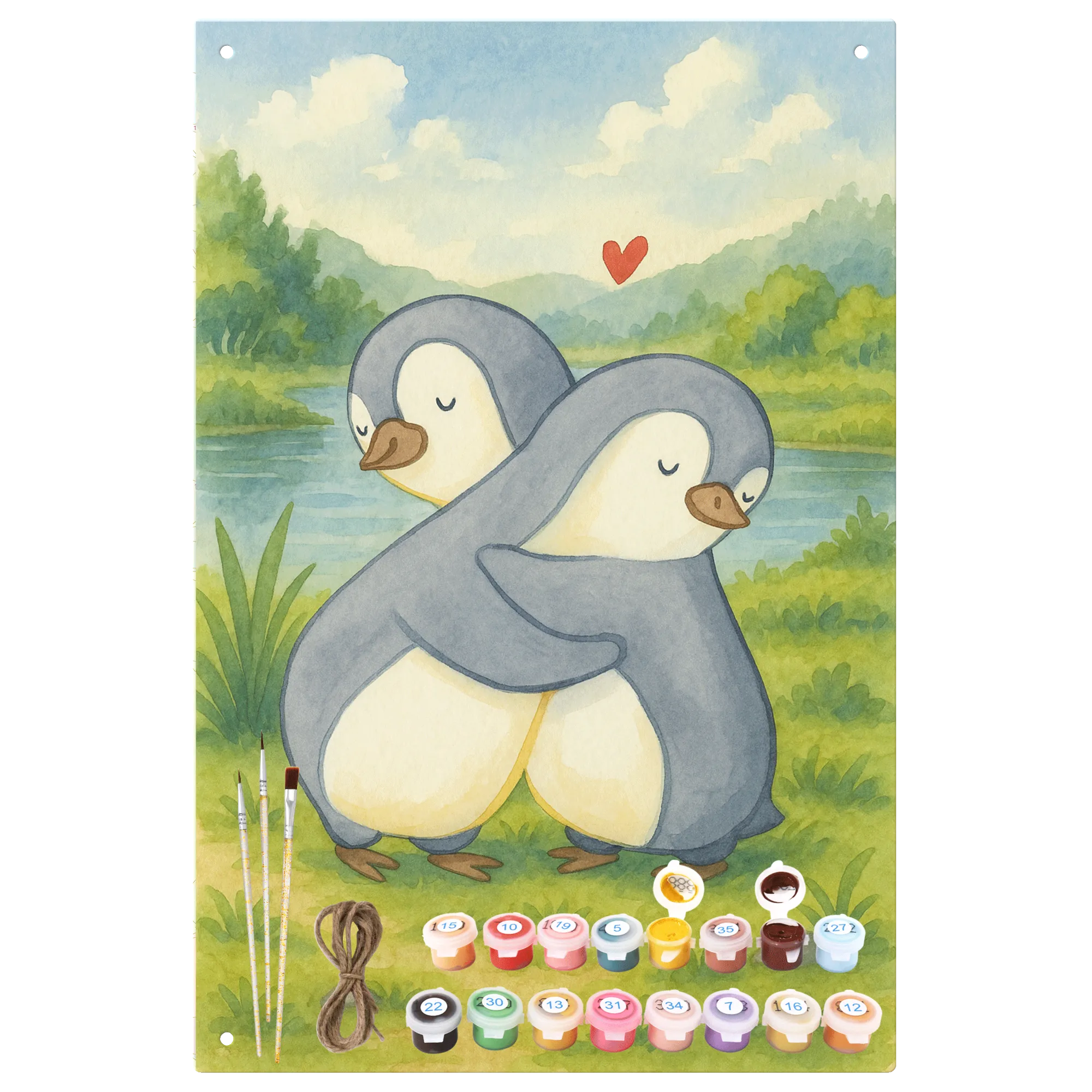 Malen nach Zahlen Metallschild Pinguine Kuscheln Design