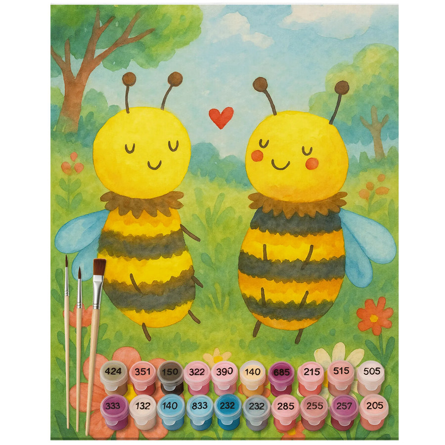 Malen nach Zahlen Biene Verliebt Design - Ohne Rahmen - 24 Farben (Standard)