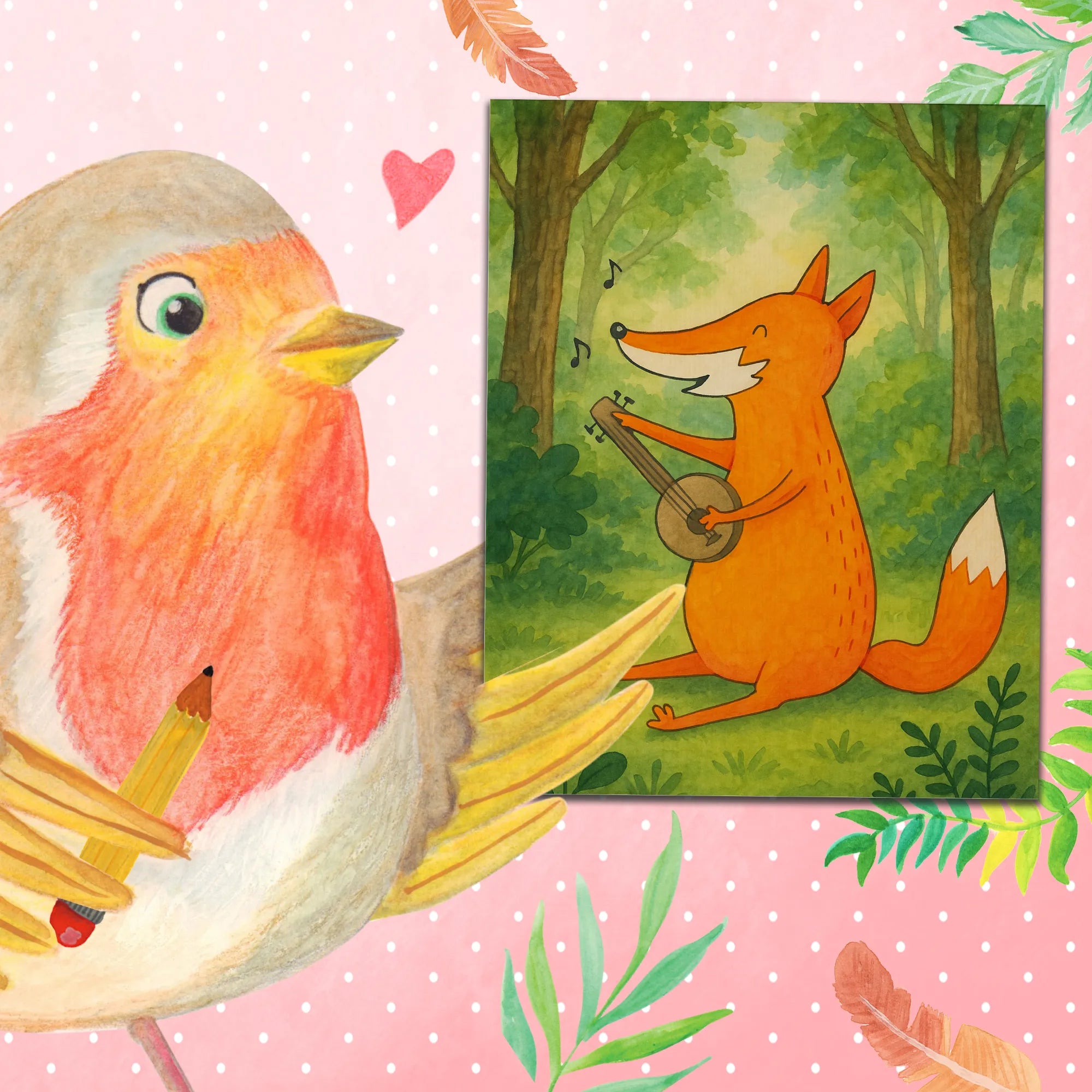 Beobachte diesen charmanten Fuchs, der mit seiner Gitarre die Melodien seiner Träume spielt. Er ist nicht nur ein Füchse, sondern auch ein wahrer Künstler, dessen Musik die Luft mit Freude erfüllt. Egal, ob er auf der Bühne steht oder im Park ein kleines Konzert gibt, seine Leidenschaft ist unverkennbar. Diese Illustration lädt jeden ein, sich der Musik hinzugeben und die Seele baumeln zu lassen. Ideal für Musikerinnen und Musiker, bietet dieses Bild eine liebevolle Erinnerung daran, dass Musik die Kraft hat, Menschen und Tiere zu verbinden. Verschenke es an einen Freund oder eine Freundin, die Gitarre spielt oder singt, und erinnere sie daran, wie wichtig es ist, die eigene Kreativität auszuleben. Ein wunderschönes Geschenk, das die Magie der Musik feiert und gleichzeitig ein fröhliches Ambiente zaubert.