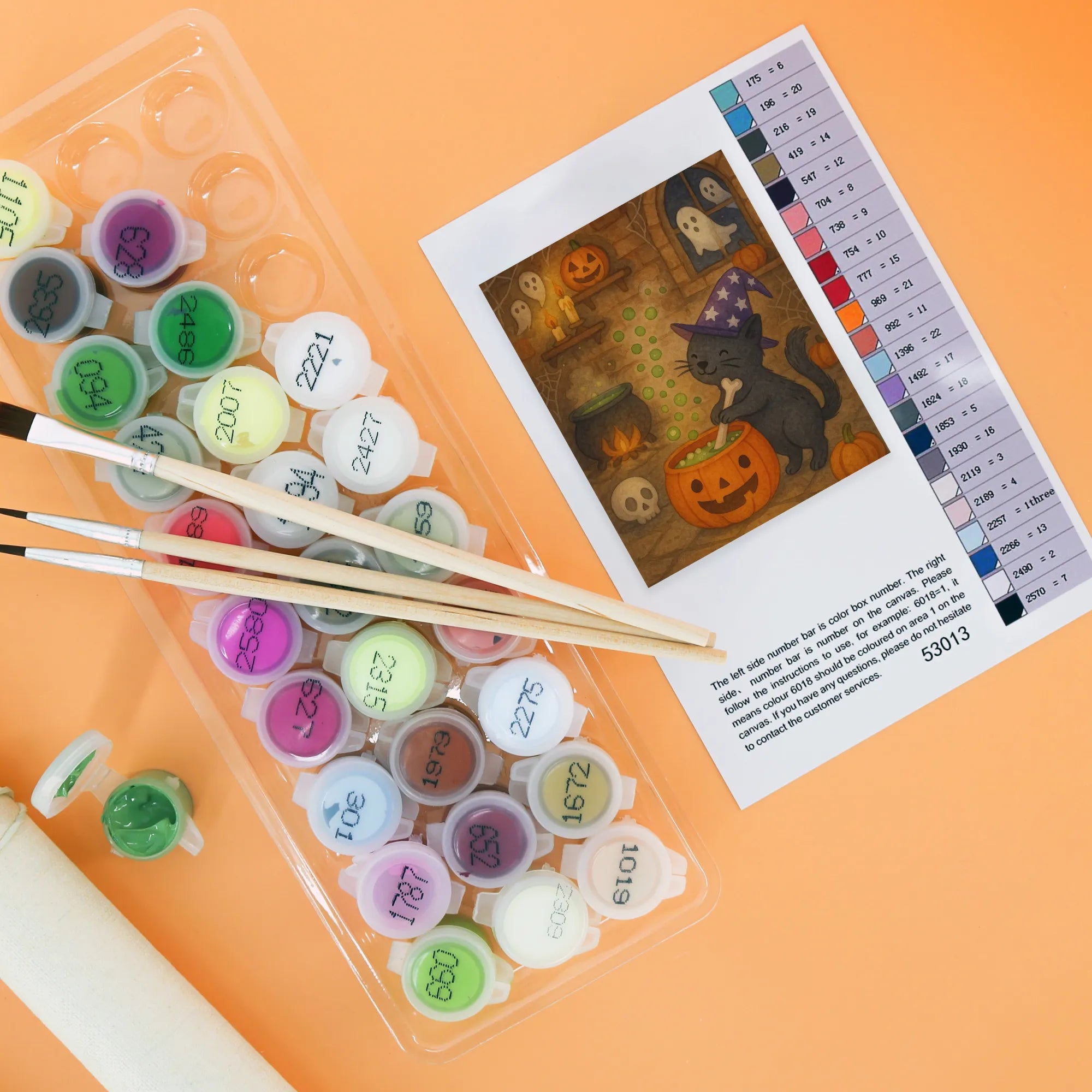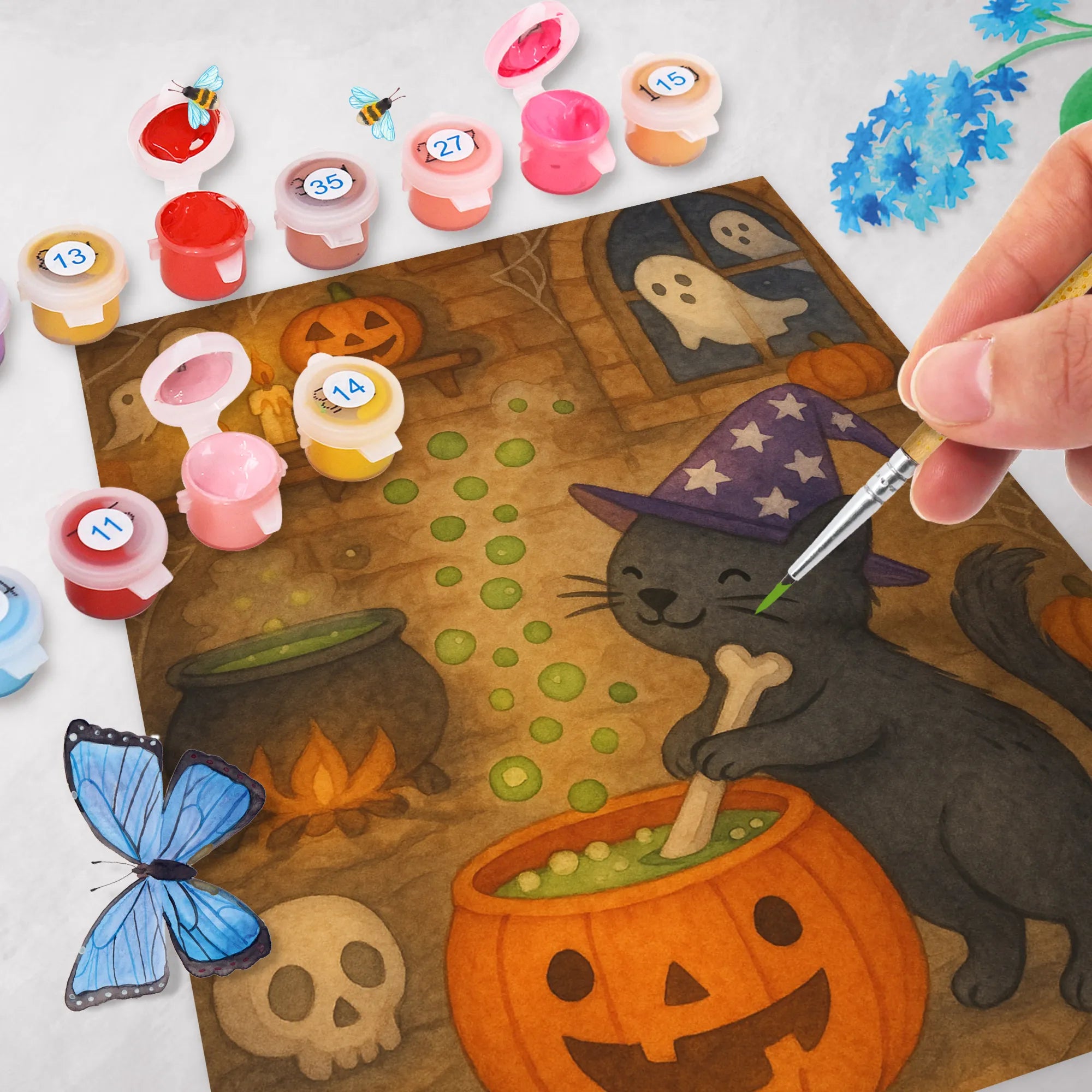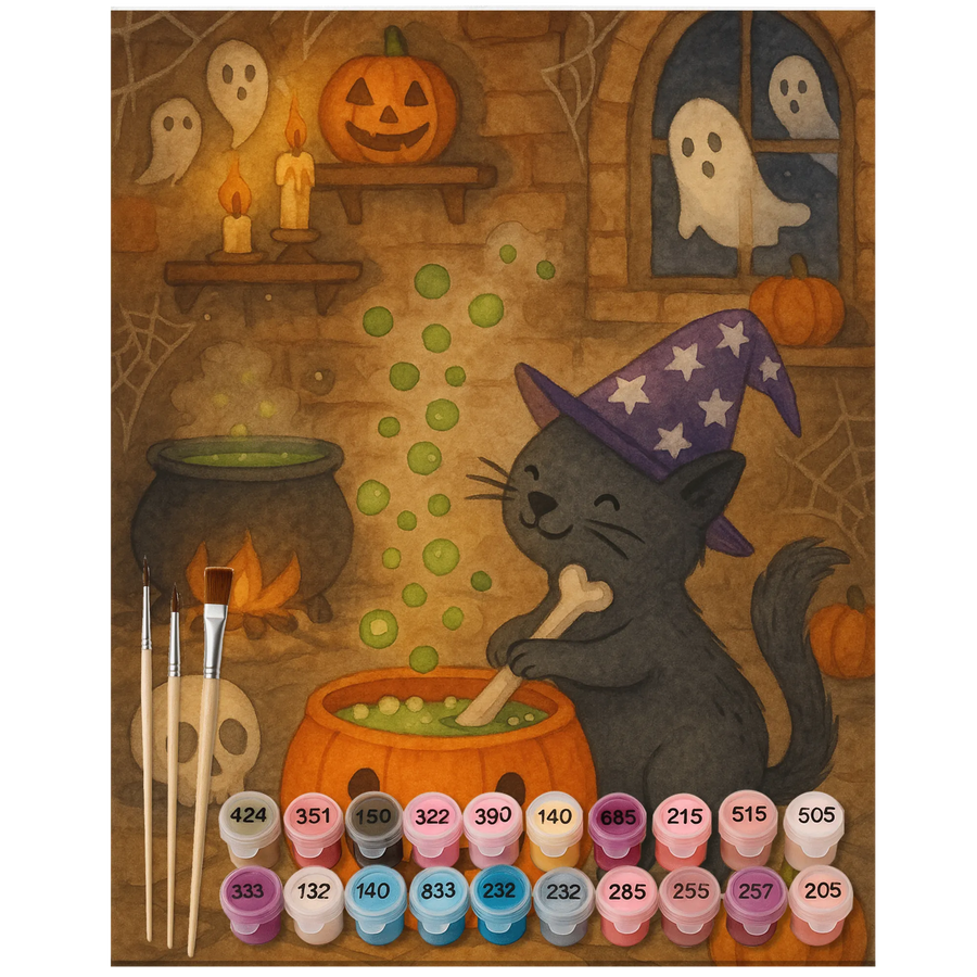 Malen nach Zahlen Kater Hexenkessel Design - Ohne Rahmen - 24 Farben (Standard)