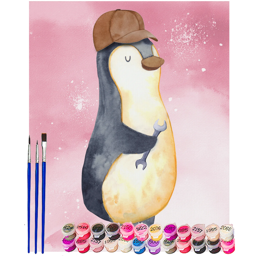 Mit diesem kreativen Malen nach Zahlen Set von Mr. & Mrs. Panda kannst du deinem Vater nicht nur eine große Freude bereiten, sondern ihm auch zeigen, wie viel er dir bedeutet. Das Motiv zeigt einen sympathischen Pinguin mit einem Schraubenschlüssel – ein tolles Symbol für Paps handwerkliches Geschick!