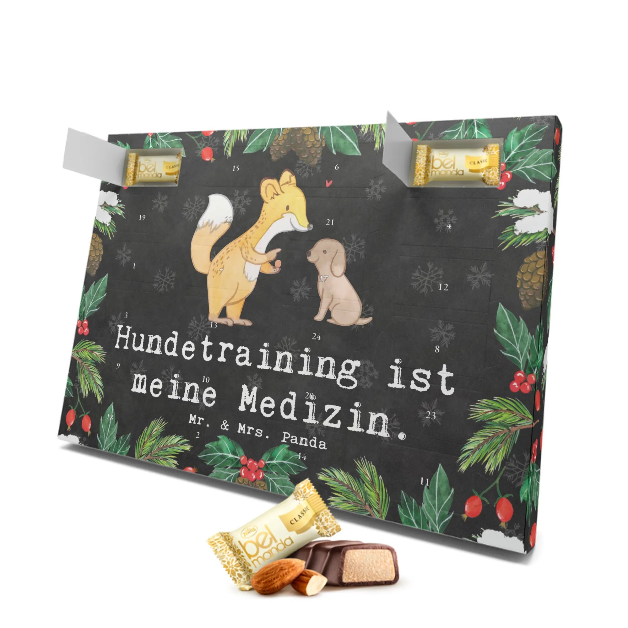 Der wundervolle Marzipan Adventskalender 'Fuchs Hundetraining Medizin' von Mr. & Mrs. Panda ist das perfekte Geschenk für Hundebesitzer und Hundefreunde! Ob zur Weihnachtszeit oder als besondere Überraschung zwischendurch, dieser Adventskalender bringt Freude und süße Leckereien in das Leben aller, die das Hundetraining lieben.