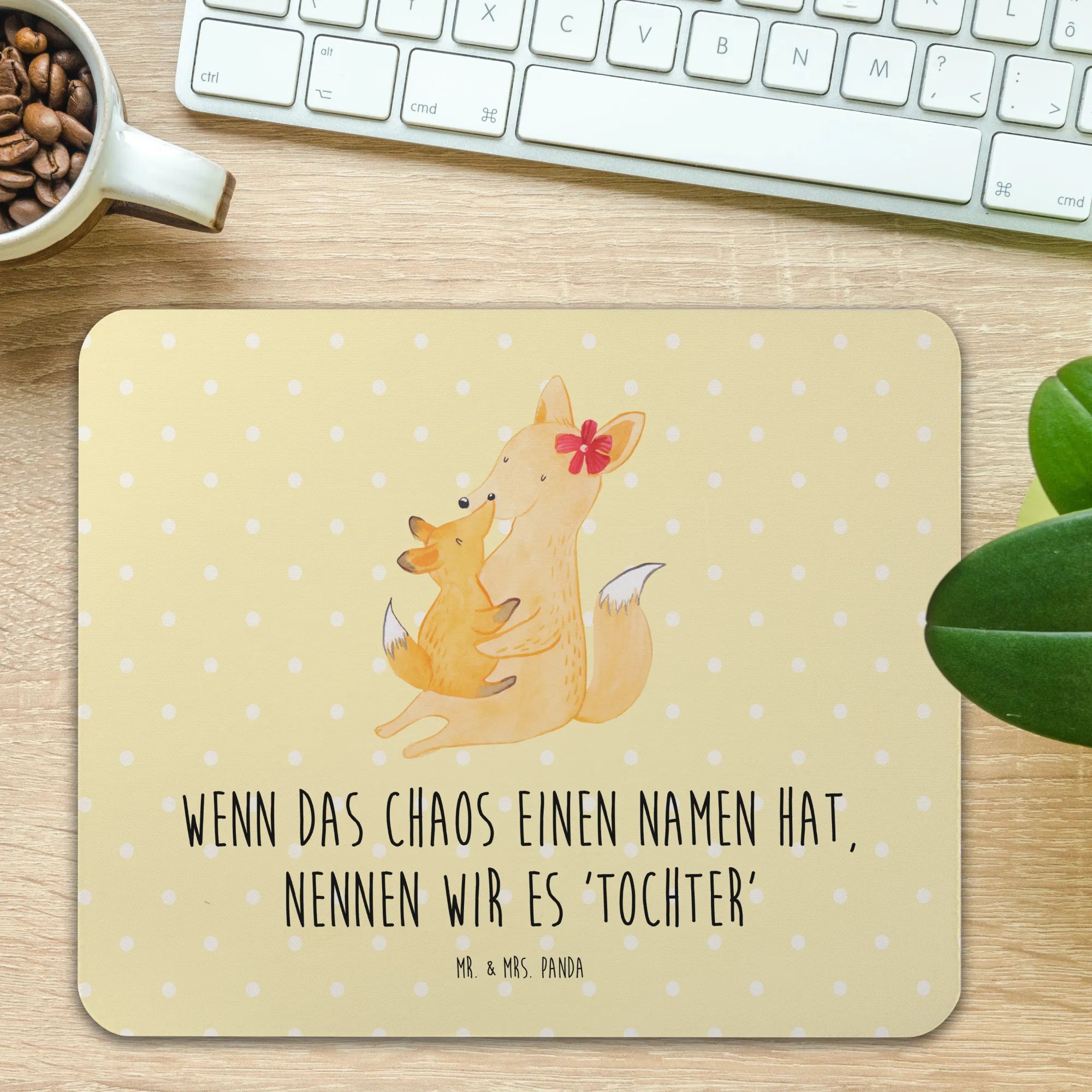 Ein wunderschönes und angenehmes Mauspad von Mr. & Mrs. Panda ist das perfekte Geschenk für alle, die eine Tochter haben! Mit dem charmanten Motiv "Wenn das Chaos einen Namen hat, nennen wir es 'Tochter'" bringt dieses Mauspad Freude und ein Lächeln in jeden Büroalltag oder das Homeoffice.