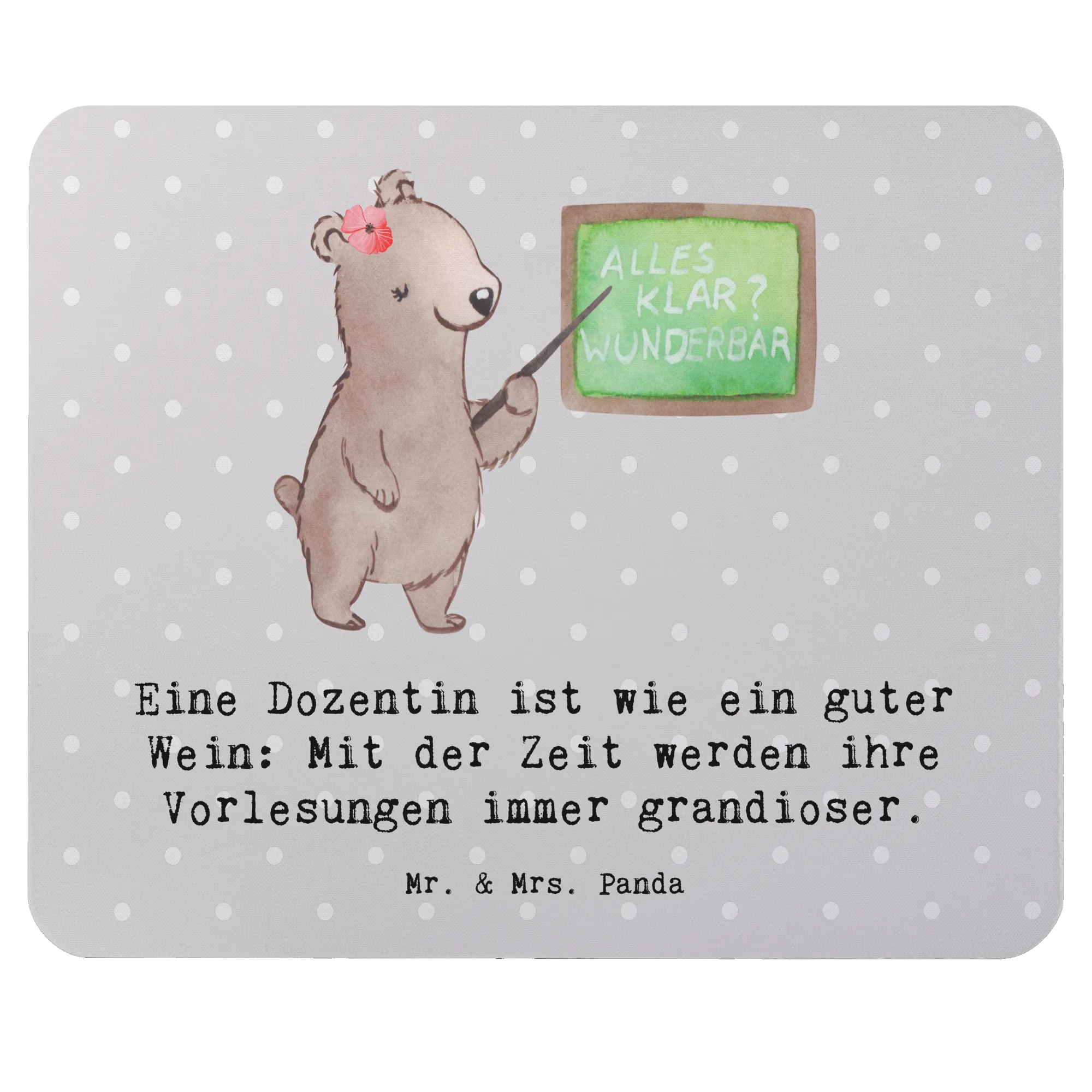 Suchst Du nach dem perfekten Geschenk für eine Dozentin oder einfach nach einem schönen und einzigartigen Accessoire für Dein Arbeitszimmer? Dann ist unser Mauspad "Dozentin" aus der Berufe Kollektion von Mr. & Mrs. Panda genau das Richtige für Dich! Mit dem liebevoll gestalteten Slogan "Eine Dozentin ist wie ein guter Wein: Mit der Zeit werden ihre Vorlesungen immer grandioser." erfreut dieses Mauspad nicht nur das Herz, sondern sorgt auch für ein angenehmes Arbeiten am Computer.