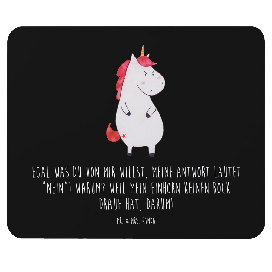 Mauspad Einhorn Wut - mit Spruch - Schwarz