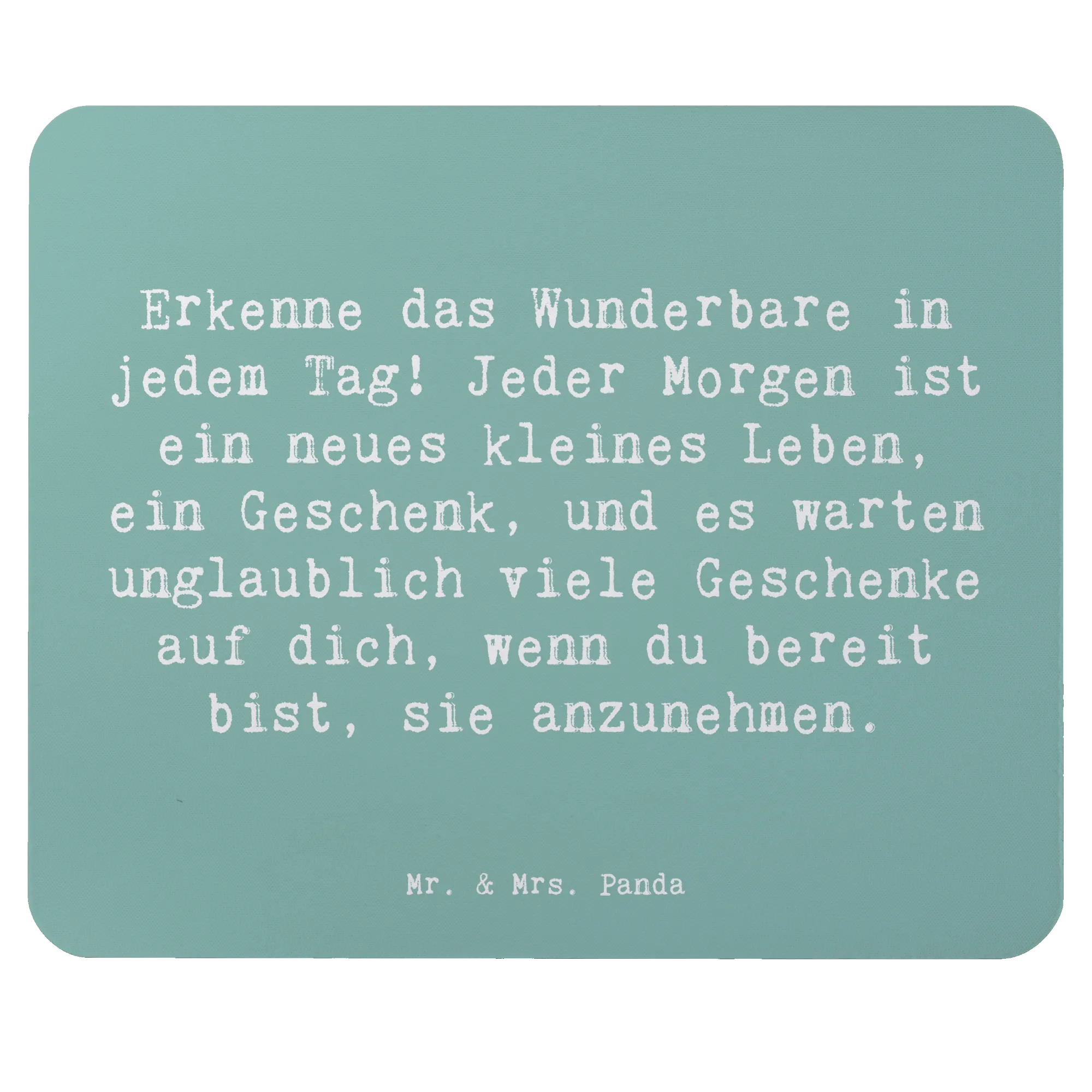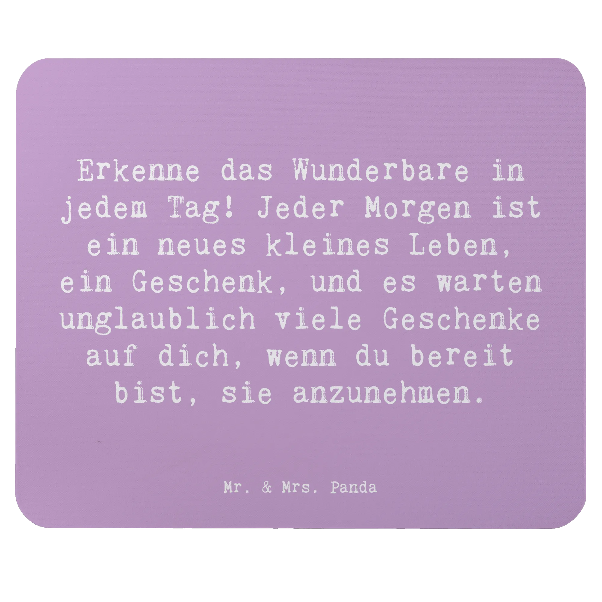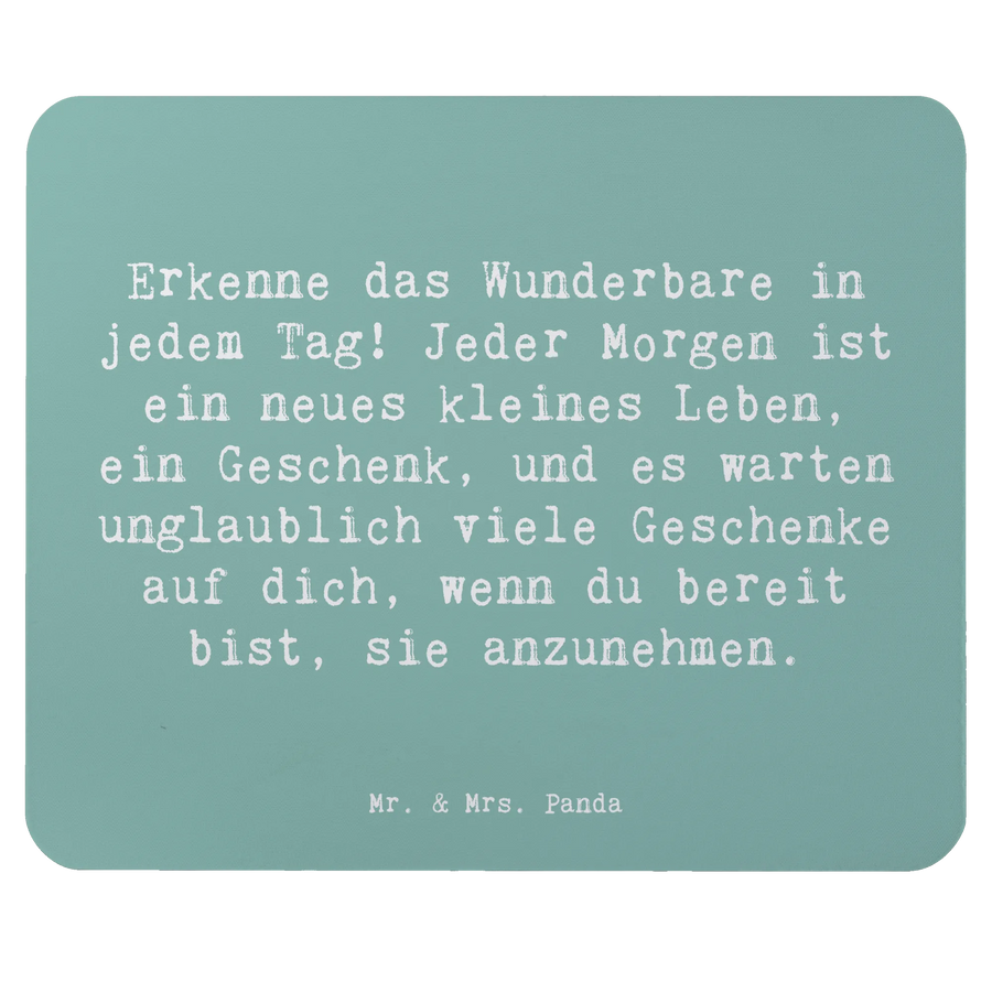 Abgestimmt auf Deinen Arbeitsalltag oder Dein Homeoffice, wird dieses Designer Mauspad nicht nur Deine Arbeitsumgebung verschönern, sondern auch Deine Stimmung heben. Mit dem inspirierenden Spruch "Erkenne das Wunderbare in jedem Tag! Jeder Morgen ist ein neues kleines Leben, ein Geschenk, und es warten unglaublich viele Geschenke auf dich, wenn du bereit bist, sie anzunehmen." ist dieses Mauspad perfekt für alle, die gelegentlich einen kleinen Anstoß zur positiven Einstellung benötigen.