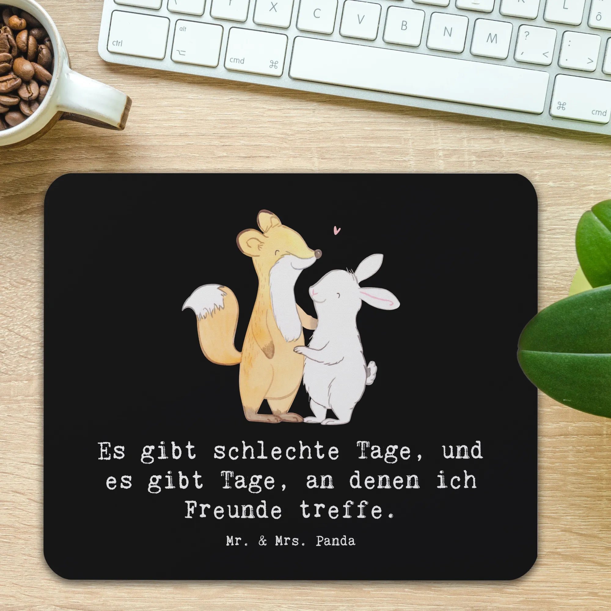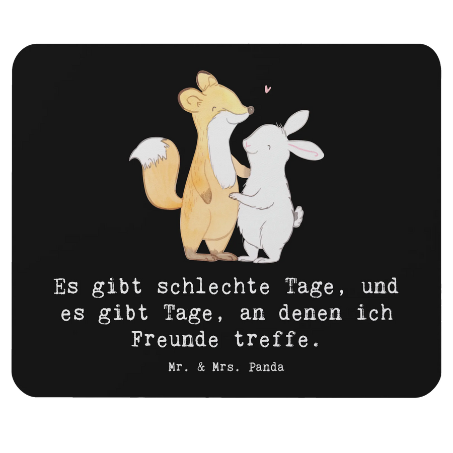 Mauspad Fuchs Hase Freunde treffen - Schwarz