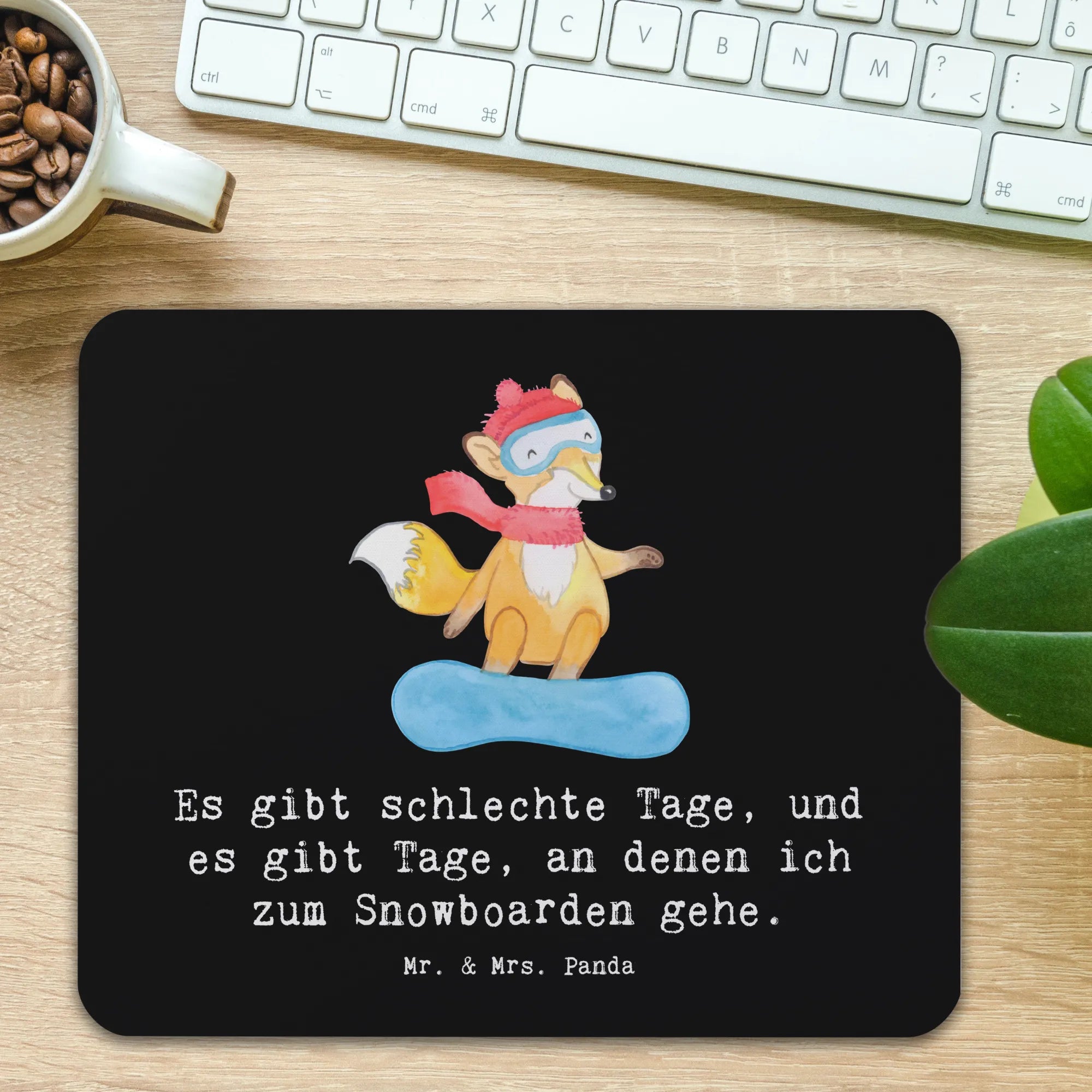 Entdecke das liebevoll gestaltete Mauspad "Fuchs Snowboarden Tage" von Mr. & Mrs. Panda! Diese süße Mausunterlage ist nicht nur ein praktischer Begleiter für deinen Arbeitsalltag oder dein Homeoffice, sondern auch ein wahres Kunstwerk, das deine Liebe zum Wintersport perfekt in Szene setzt. Mit dem charmanten Design eines Snowboard fahrenden Fuchses und dem Spruch "Es gibt schlechte Tage, und es gibt Tage, an denen ich zum Snowboarden gehe", bringt es jeden Tag ein Lächeln auf dein Gesicht.