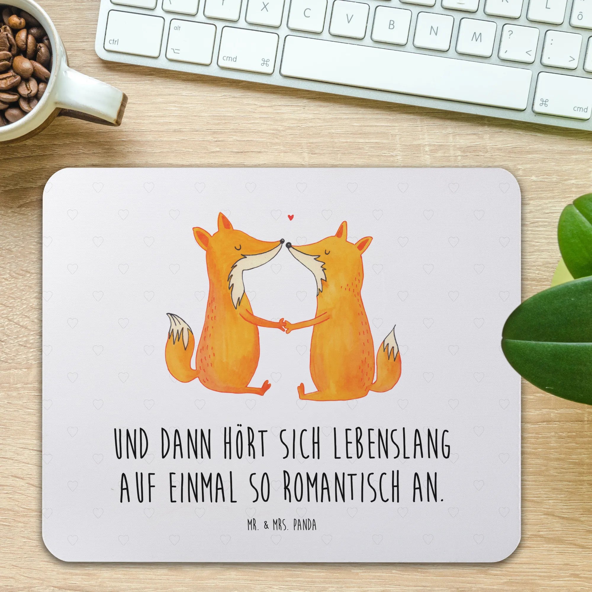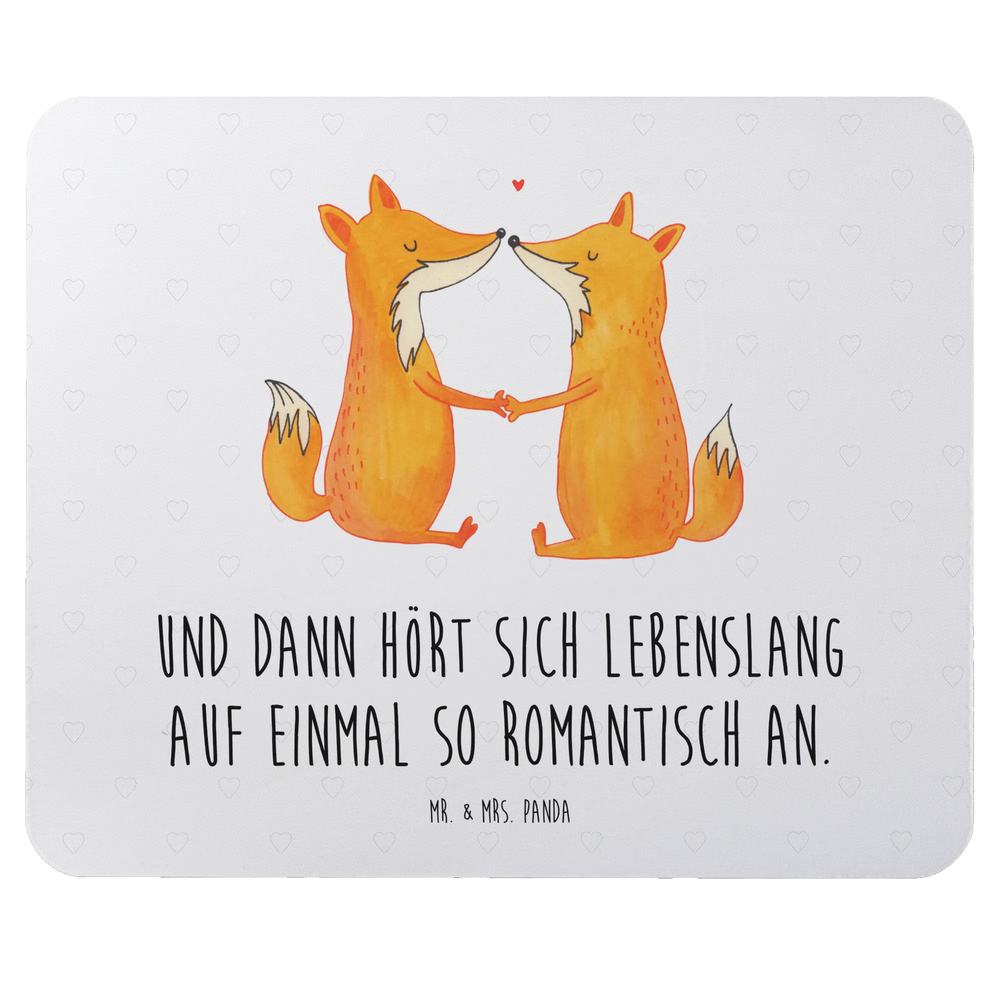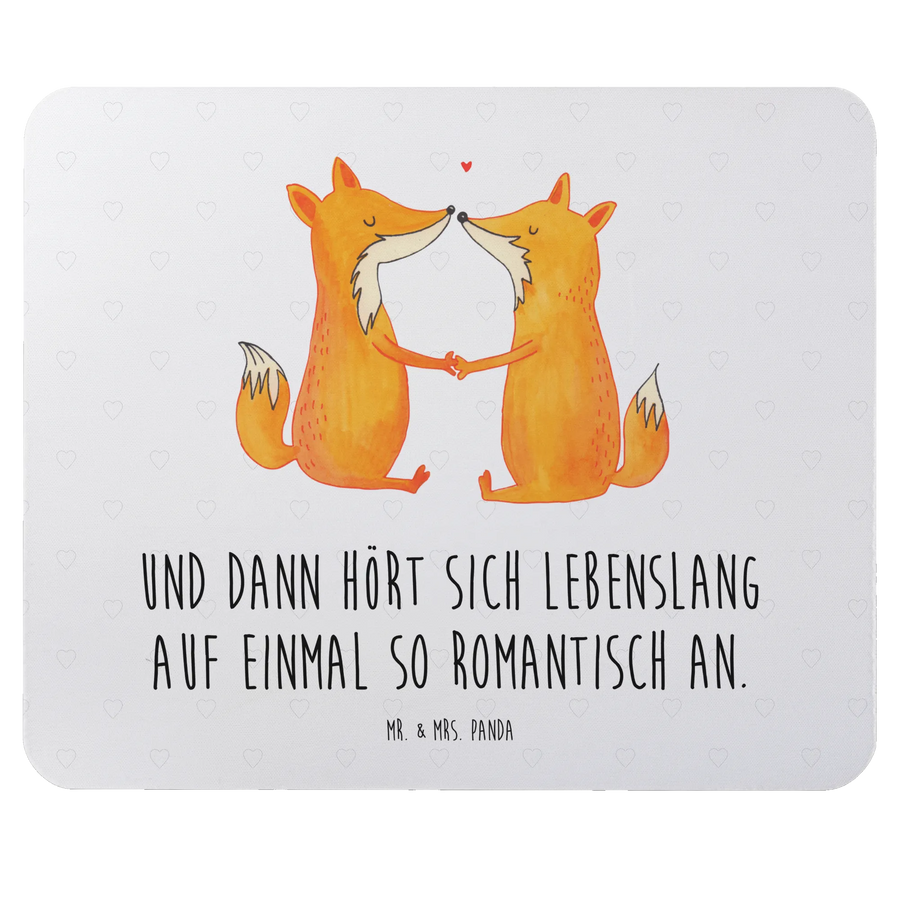 Das Mauspad Füchse Liebe aus der Fuchs Kollektion von Mr. & Mrs. Panda ist das perfekte Geschenk für alle, die das Besondere lieben! Mit einem einzigartigen Design, das zwei süße Füchse zeigt, die Händchen haltend aufeinandertreffen, strahlt dieses Mauspad eine unendliche Liebe und Verbundenheit aus. Der Slogan "Und dann hört sich lebenslang auf einmal so romantisch an." bringt die romantische Note perfekt zur Geltung.