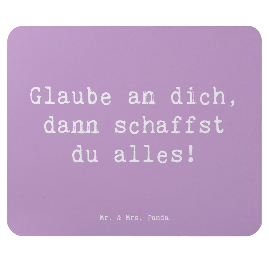 Das Mauspad "Angst überwinden" aus der Mutmacher Kollektion von Mr. & Mrs. Panda ist nicht nur ein praktisches Zubehör für dein Büro oder Homeoffice, sondern auch ein täglicher Mutmacher für dich. Mit dem inspirierenden Spruch "Glaube an dich, dann schaffst du alles!" auf einem stilvollen und ansprechenden Design bietet dieses Mauspad eine hervorragende Oberfläche für deine Maus und ein kleines Stückchen Motivation während des Arbeitstags.