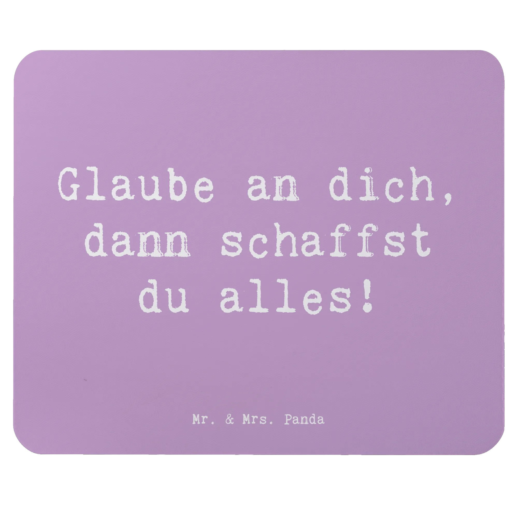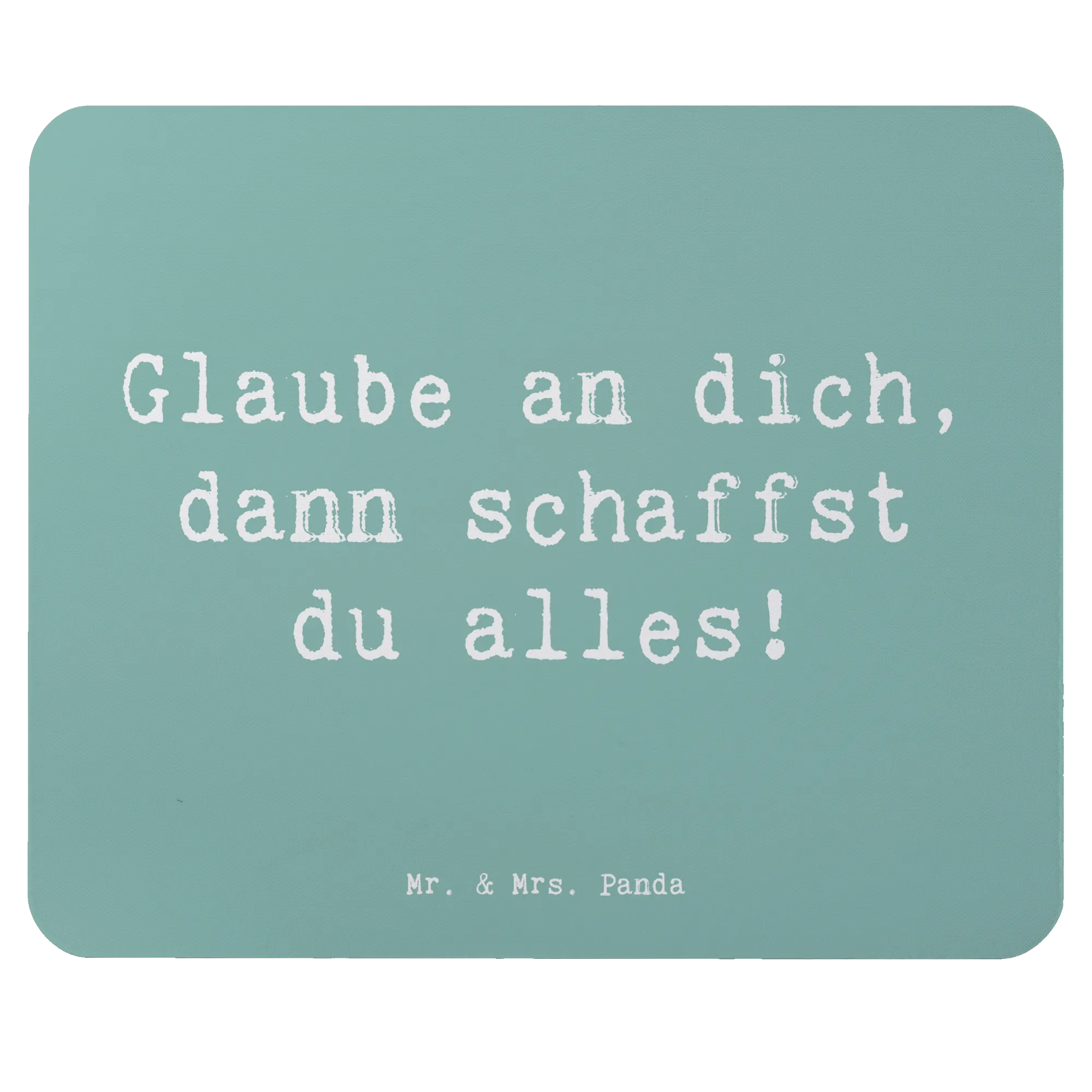 Das Mauspad "Angst überwinden" aus der Mutmacher Kollektion von Mr. & Mrs. Panda ist nicht nur ein praktisches Zubehör für dein Büro oder Homeoffice, sondern auch ein täglicher Mutmacher für dich. Mit dem inspirierenden Spruch "Glaube an dich, dann schaffst du alles!" auf einem stilvollen und ansprechenden Design bietet dieses Mauspad eine hervorragende Oberfläche für deine Maus und ein kleines Stückchen Motivation während des Arbeitstags.