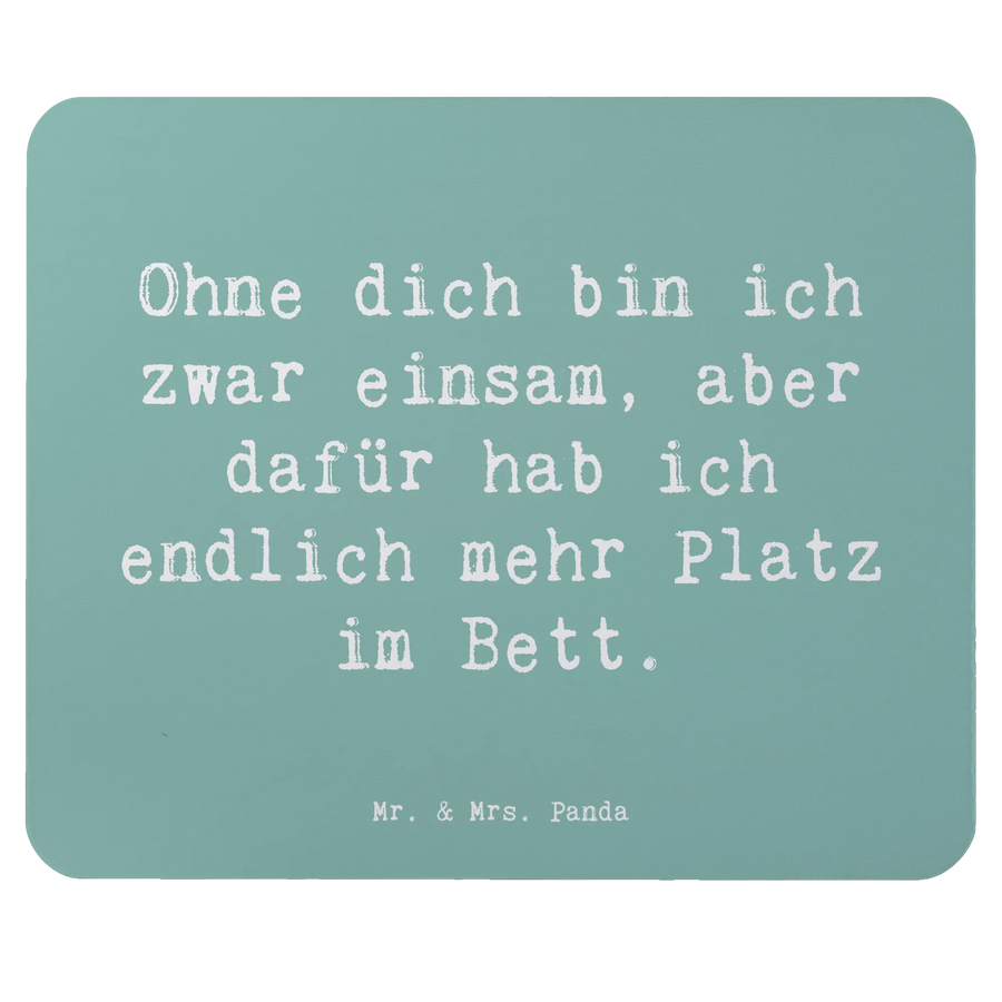 Entdecke das perfekte Mauspad von Mr. & Mrs. Panda für all diejenigen, die gerade eine schwere Zeit durchleben. Das Mauspad mit dem Aufdruck "Ohne dich bin ich zwar einsam, aber dafür hab ich endlich mehr Platz im Bett." ist nicht nur ein praktisches Accessoire für dein Büro oder Homeoffice, sondern bringt auch einen Hauch von Humor und Trost in trübe Zeiten.