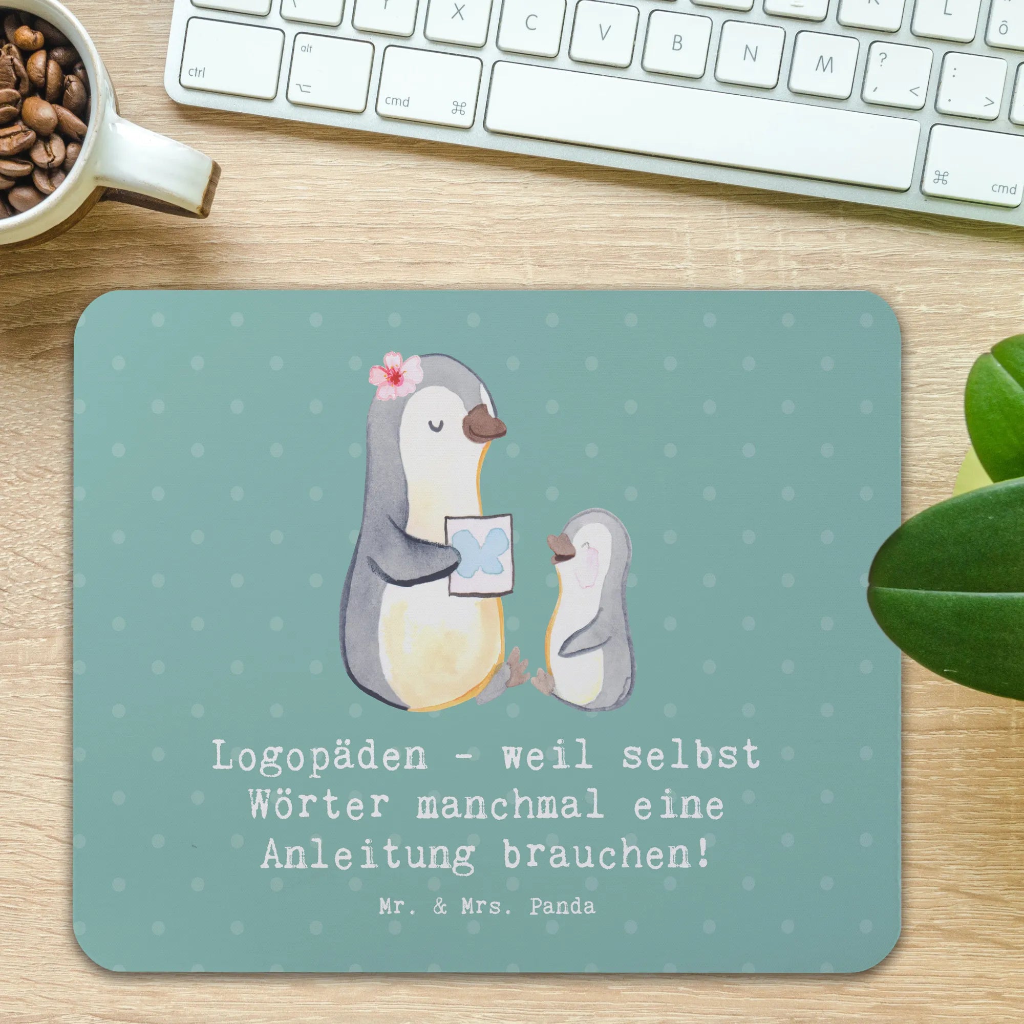 Suchst du ein Geschenk, das Berufsherz und Alltag verbindet? Unser Mr. & Mrs. Panda Mauspad „Logopädin“ aus der liebevollen Berufe-Kollektion ist genau das: ein hübsches Designer-Mauspad mit Herz. Das handgezeichnete Aquarell-Motiv von Mrs. Panda zeigt eine sympathische Logopädin und wird von dem frechen Spruch „Logopäden - weil selbst Wörter manchmal eine Anleitung brauchen!“ begleitet. 🐼✨