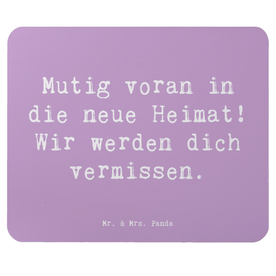 Der Spruch "Mutig voran in die neue Heimat! Wir werden dich vermissen." trägt eine Botschaft voller Zuversicht und Trost – ideal, um einem Freund oder einer Freundin zu zeigen, dass du an sie denkst, während sie ein neues Abenteuer beginnen. Egal, ob es sich um einen Umzug, einen neuen Job oder andere große Veränderungen im Leben handelt, mit diesem Mauspad unterstützt du sie auf ihrem Weg.