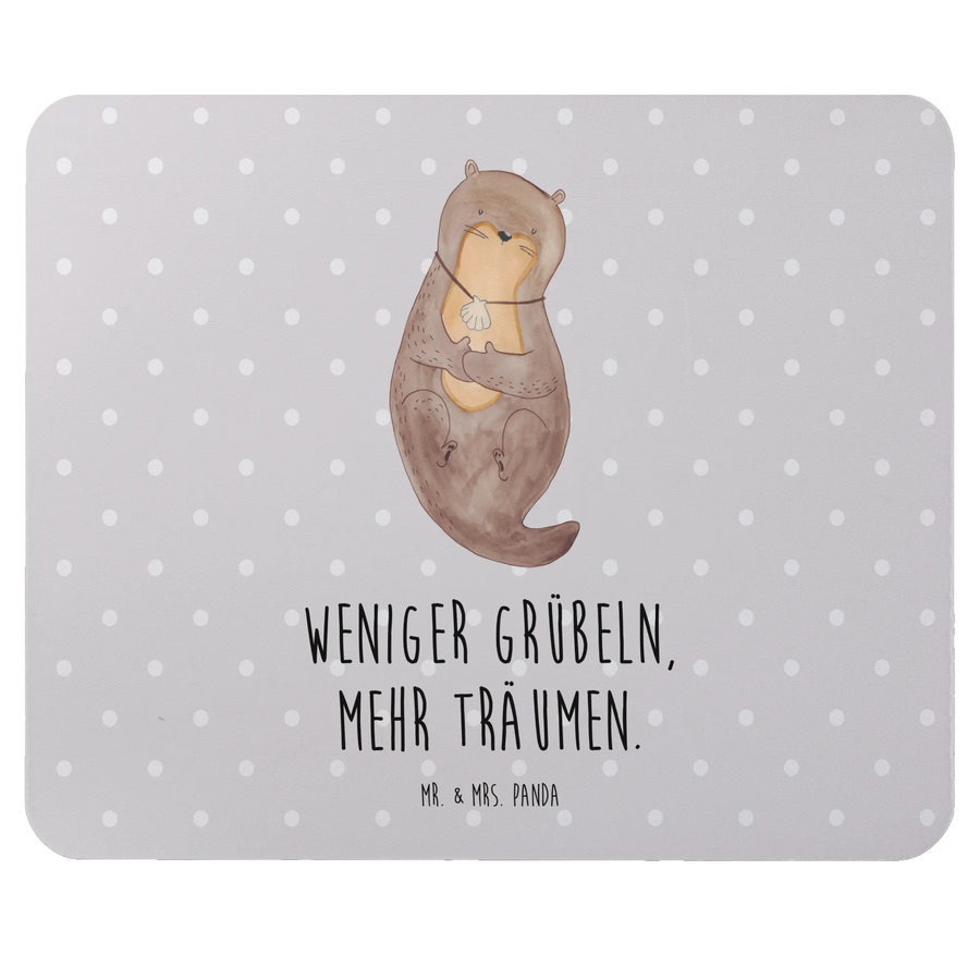 Mauspad Otter mit Muschelmedaillon - mit Spruch - Grau Pastell