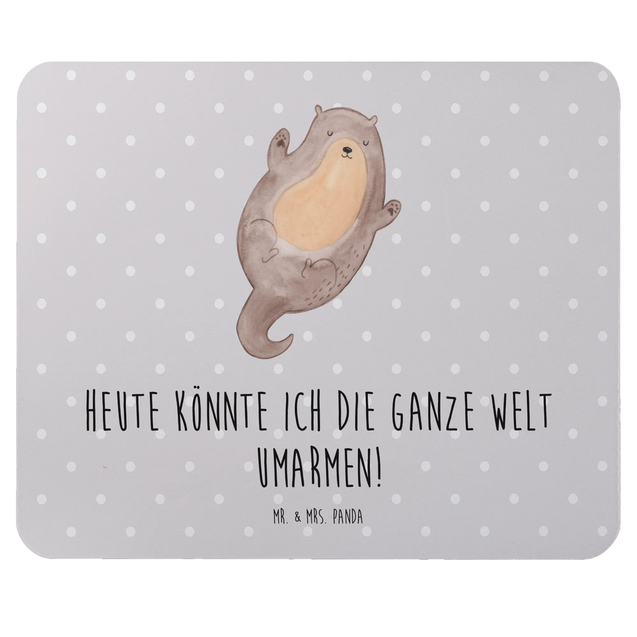Mauspad Otter Umarmen - mit Spruch - Grau Pastell