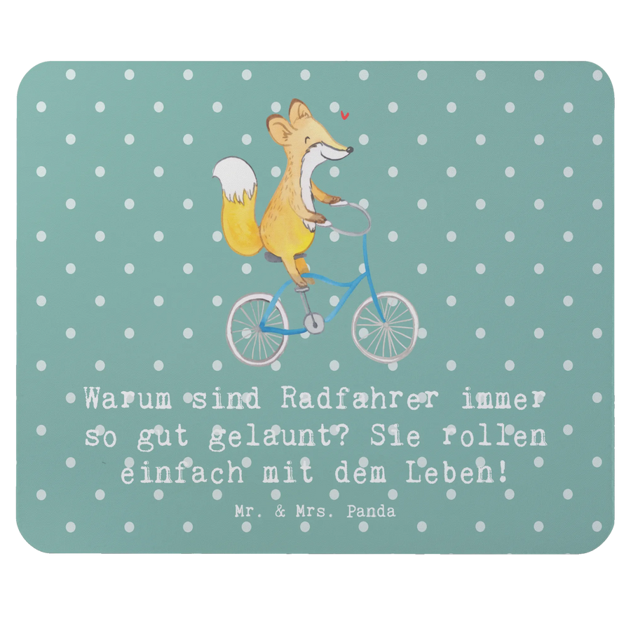 Das perfekte Geschenk für Sportbegeisterte und Radsportler – unser Mauspad im einzigartigen Design von Mr. & Mrs. Panda! Ob im Büro oder im Homeoffice, dieses wunderschöne Mauspad bringt nicht nur Farbe, sondern auch Freude in Deinen Arbeitsalltag. Mit dem inspirierenden Spruch "Warum sind Radfahrer immer so gut gelaunt? Sie rollen einfach mit dem Leben!" wird jeder Arbeitstag zum kleinen Abenteuer.