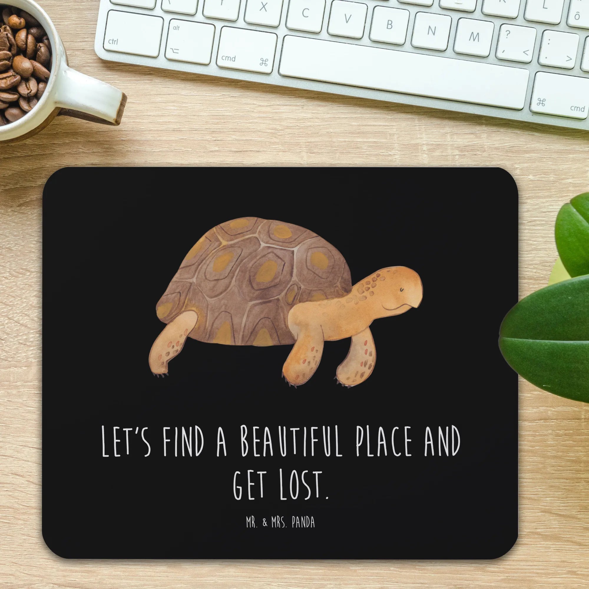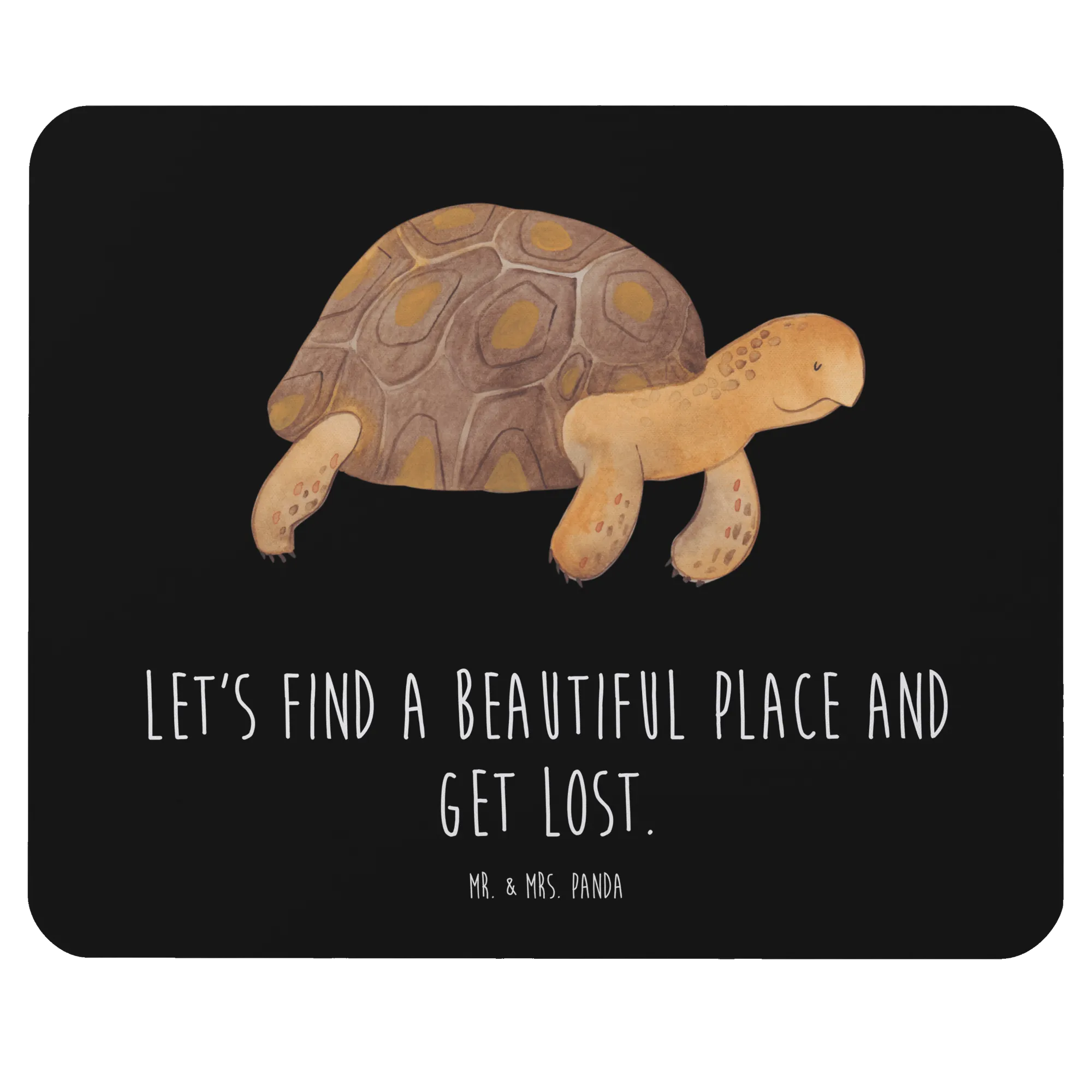 Mauspad Schildkröte marschiert - mit Spruch - Schwarz