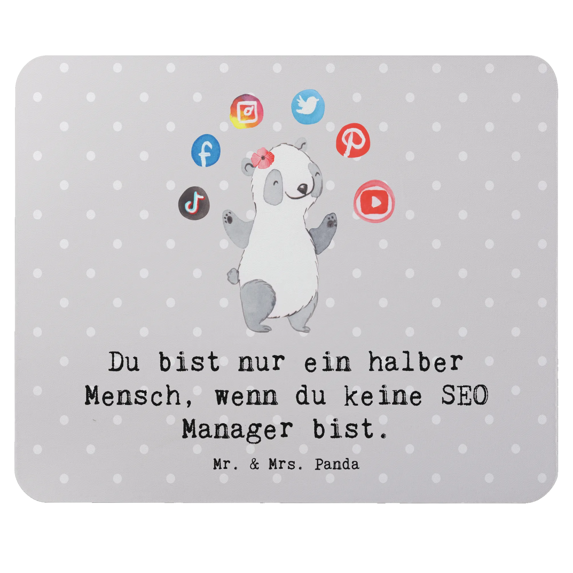 Das Mauspad mit dem Motif "SEO Manager mit Herz" von Mr. & Mrs. Panda ist nicht nur ein praktisches Zubehör für deinen Arbeitsplatz, sondern auch ein liebevolles Geschenk für alle, die im Bereich Suchmaschinenoptimierung tätig sind. Mit seinem charmanten Design, das einen süßen Panda zeigt, der mit sozialen Medien Icons jongliert, bringt es Freude und Kreativität in jeden Büroalltag.