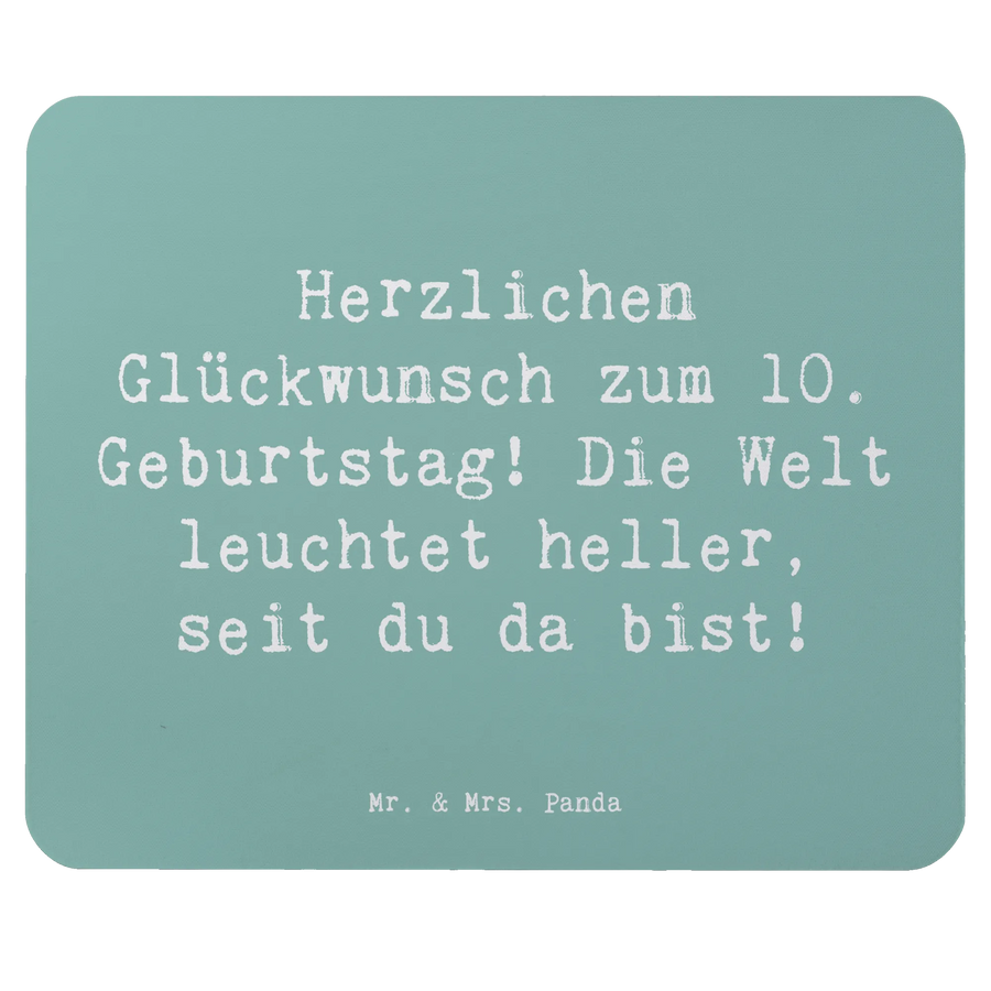 Suchst du das perfekte Geschenk zum 10. Geburtstag? Dann ist das Mauspad "Herzlichen Glückwunsch zum 10. Geburtstag! Die Welt leuchtet heller, seit du da bist!" von Mr. & Mrs. Panda genau das Richtige für dich! Ob für den Sohn, die Tochter, Nichten, Neffen oder alle kleinen Freunde – dieses Mauspad wird bestimmt für leuchtende Augen sorgen! Es stammt aus unserer besonderen Kollektion "Geburtstag Alter" und verkörpert alles, was den besonderen Tag ausmacht.