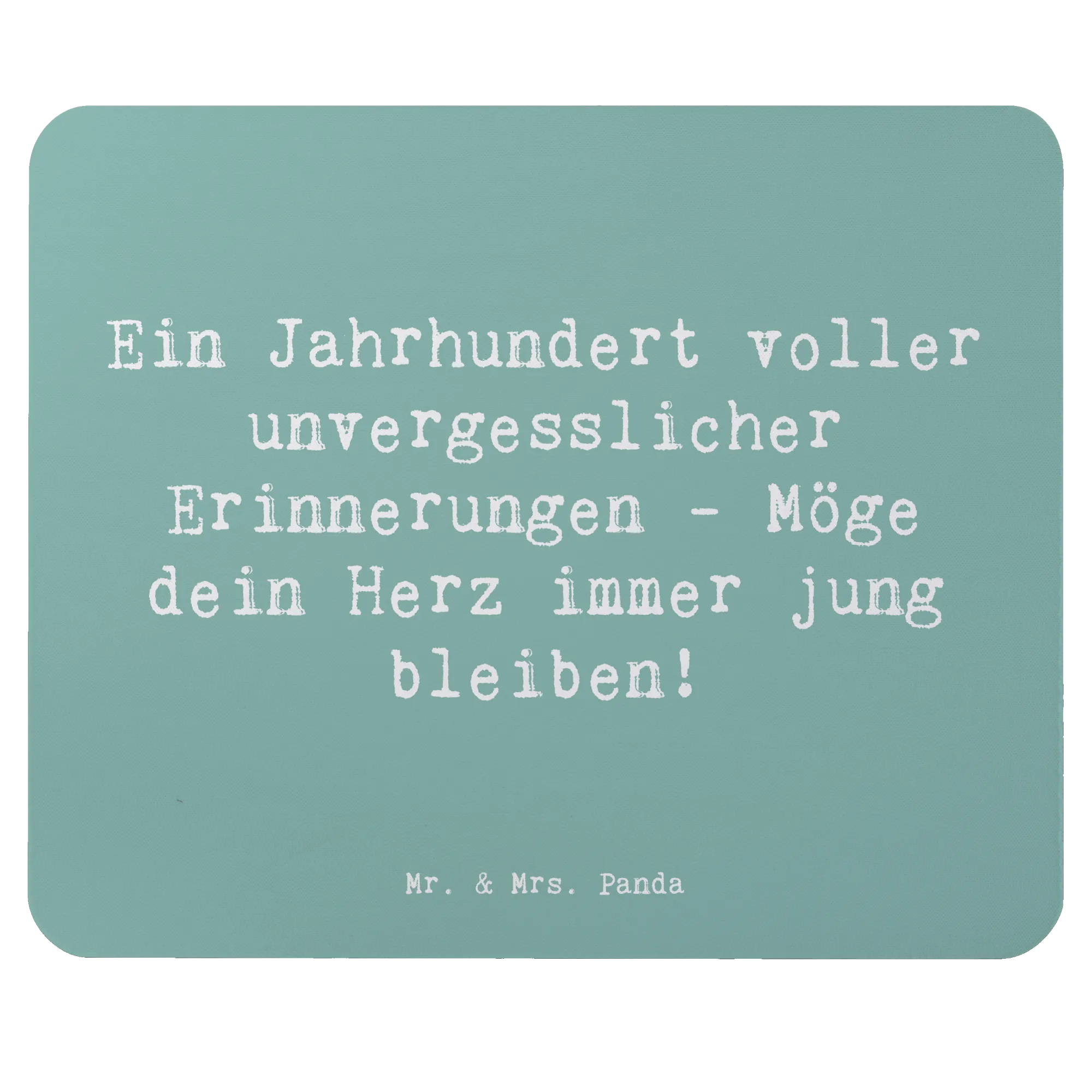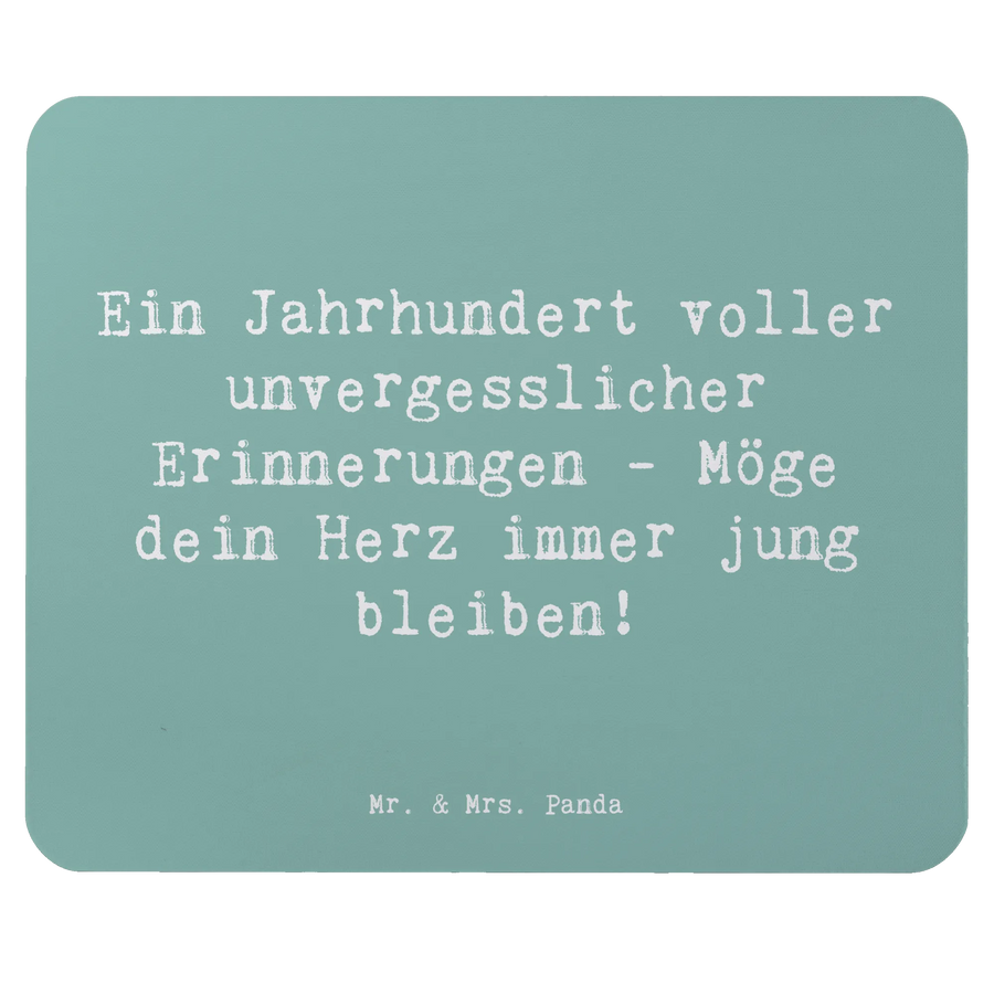 Wenn Du auf der Suche nach einem ganz besonderen Geschenk zum 100. Geburtstag bist, dann ist unser Mauspad mit dem liebevollen Motiv "Ein Jahrhundert voller unvergesslicher Erinnerungen - Möge dein Herz immer jung bleiben!" von Mr. & Mrs. Panda genau das Richtige für Dich!