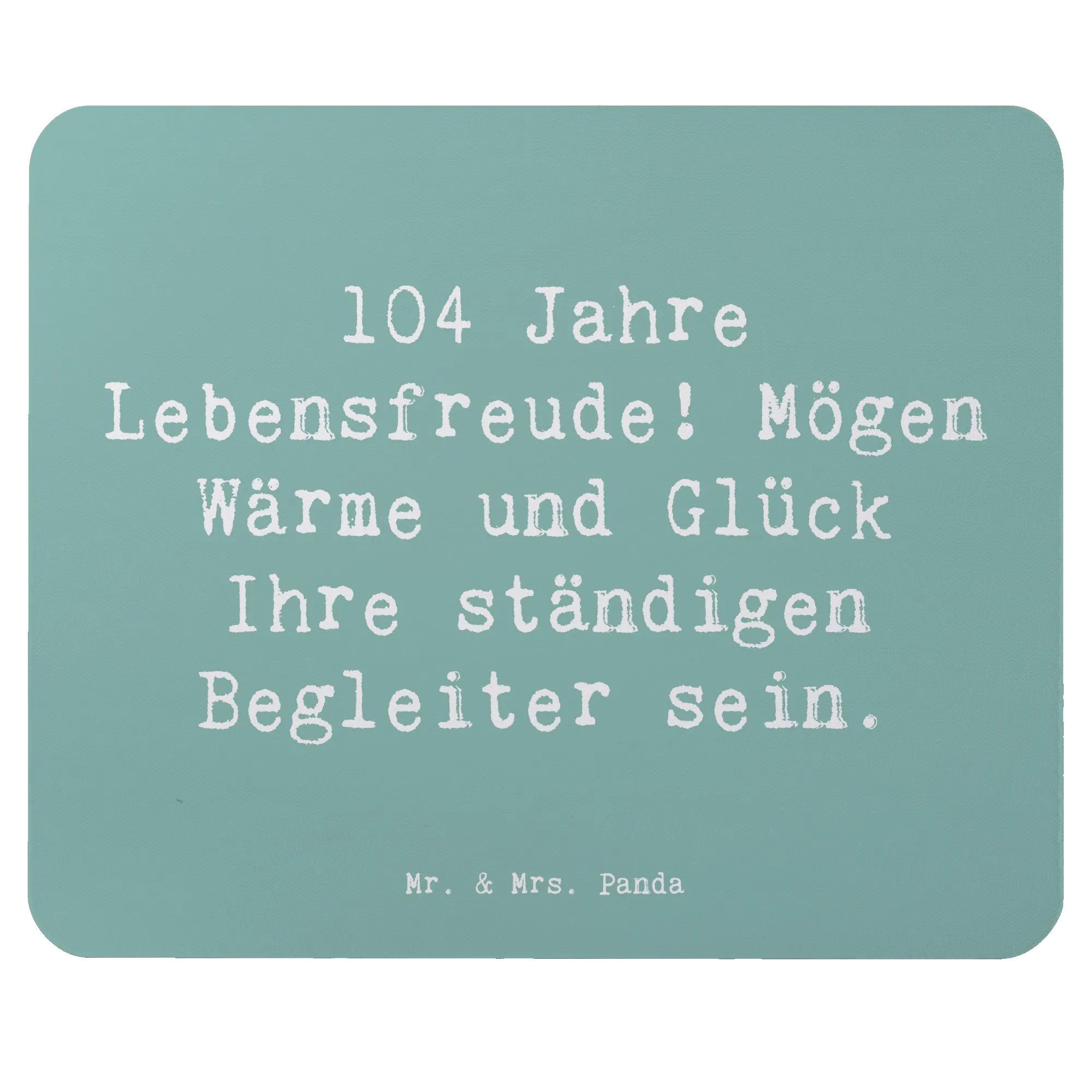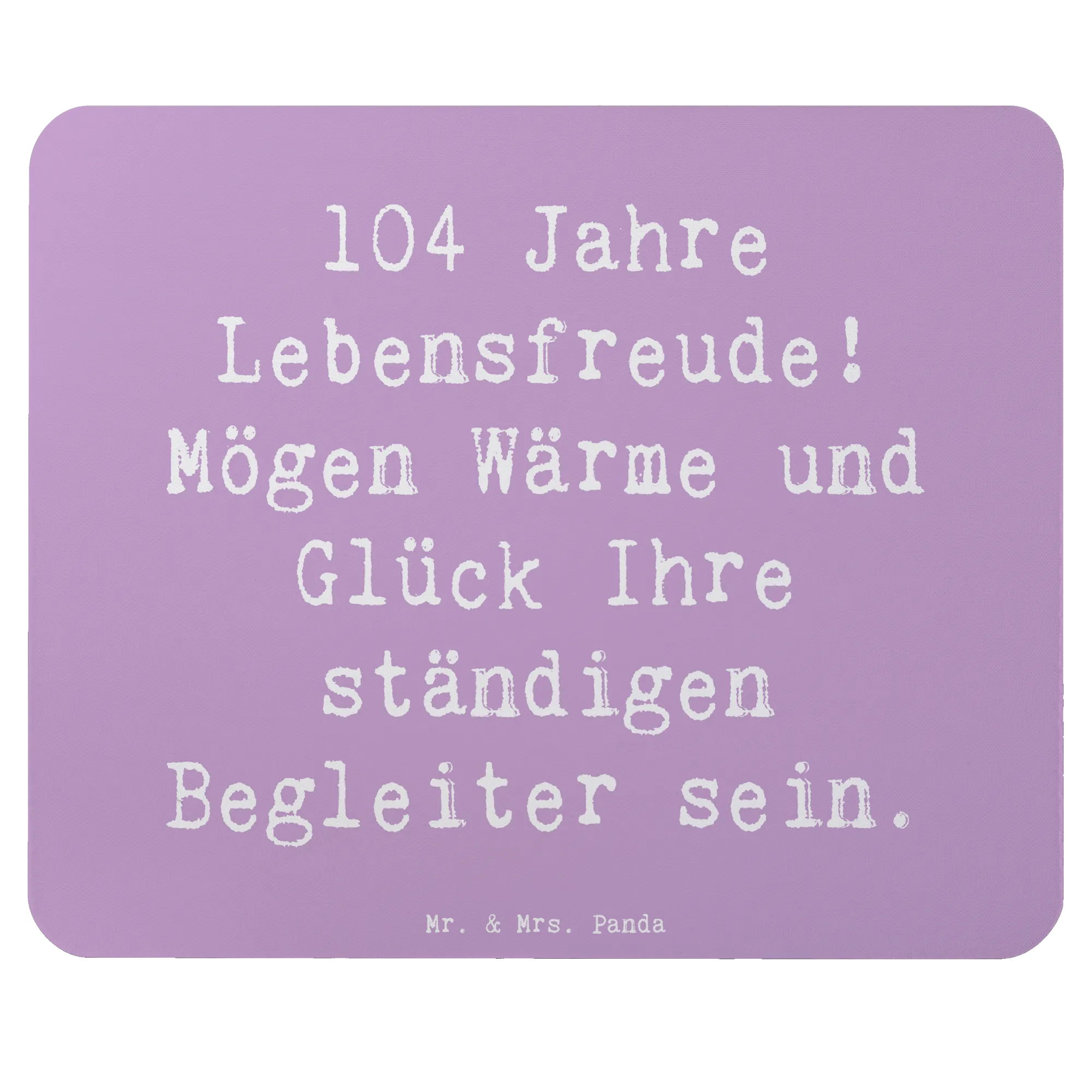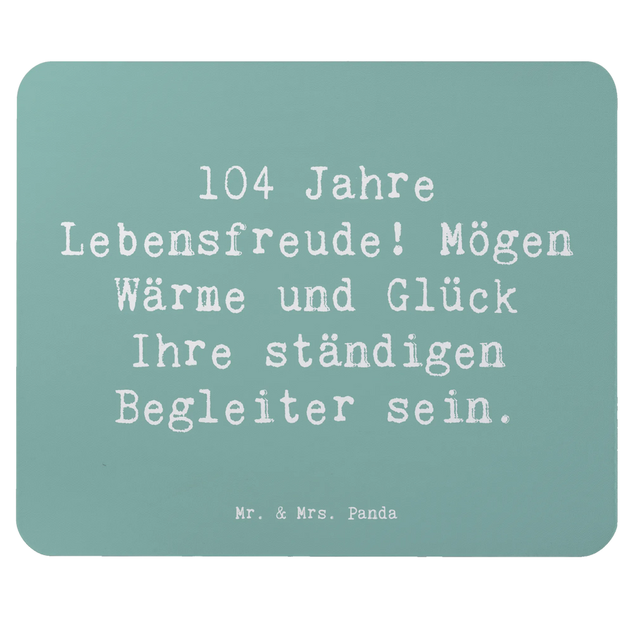 Suchst du das perfekte Geschenk für einen ganz besonderen Menschen, der seinen 104. Geburtstag feiert? Dann ist das Mauspad von Mr. & Mrs. Panda genau das Richtige für dich! Mit dem fröhlichen Motiv "104 Jahre Lebensfreude! Mögen Wärme und Glück Ihre ständigen Begleiter sein." zauberst du jedem ein Lächeln ins Gesicht und machst diesen besonderen Tag unvergesslich.