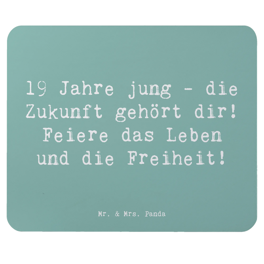 Herzlichen Glückwunsch! Du hast den 19. Geburtstag eines geliebten Menschen im Blick und suchst nach DEM perfekten Geschenk? Wir von Mr. & Mrs. Panda haben da genau das richtige für dich: unser wundervolles Mauspad mit dem spritzigen Spruch "19 Jahre jung - die Zukunft gehört dir! Feiere das Leben und die Freiheit!" Dieses einzigartige Mauspad ist nicht nur ein praktisches Zubehör für den Schreibtisch, sondern auch ein echter Hingucker. Mit seiner hochwertigen Oberfläche bietet es nicht nur eine angenehme Haptik, sondern sorgt auch für ein ergonomisches Arbeiten. Der natürliche Zellkautschuk ist angenehm handgelenkschonend und rutschfest, was dir eine optimale Nutzung ermöglicht, egal ob im Büro oder im Homeoffice.