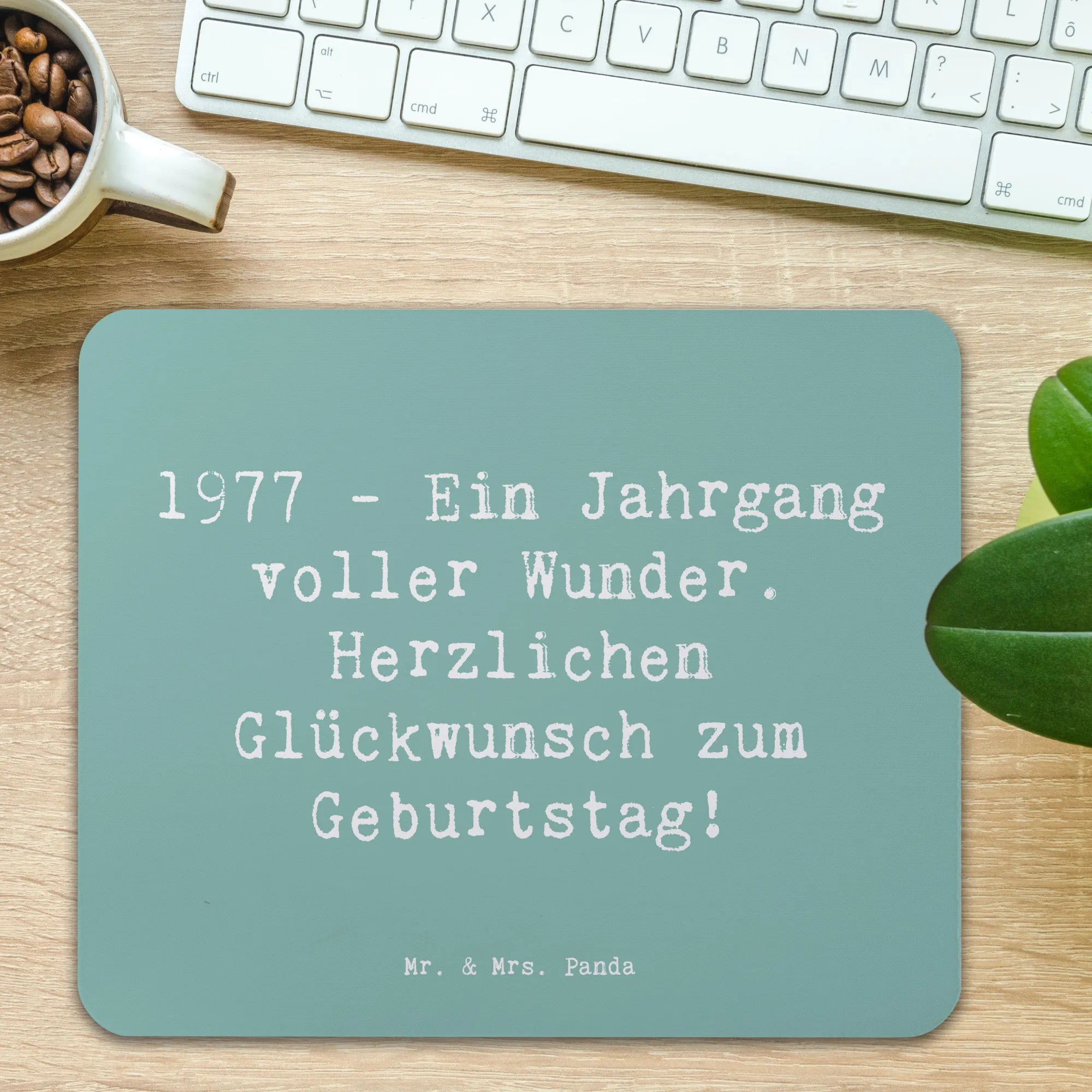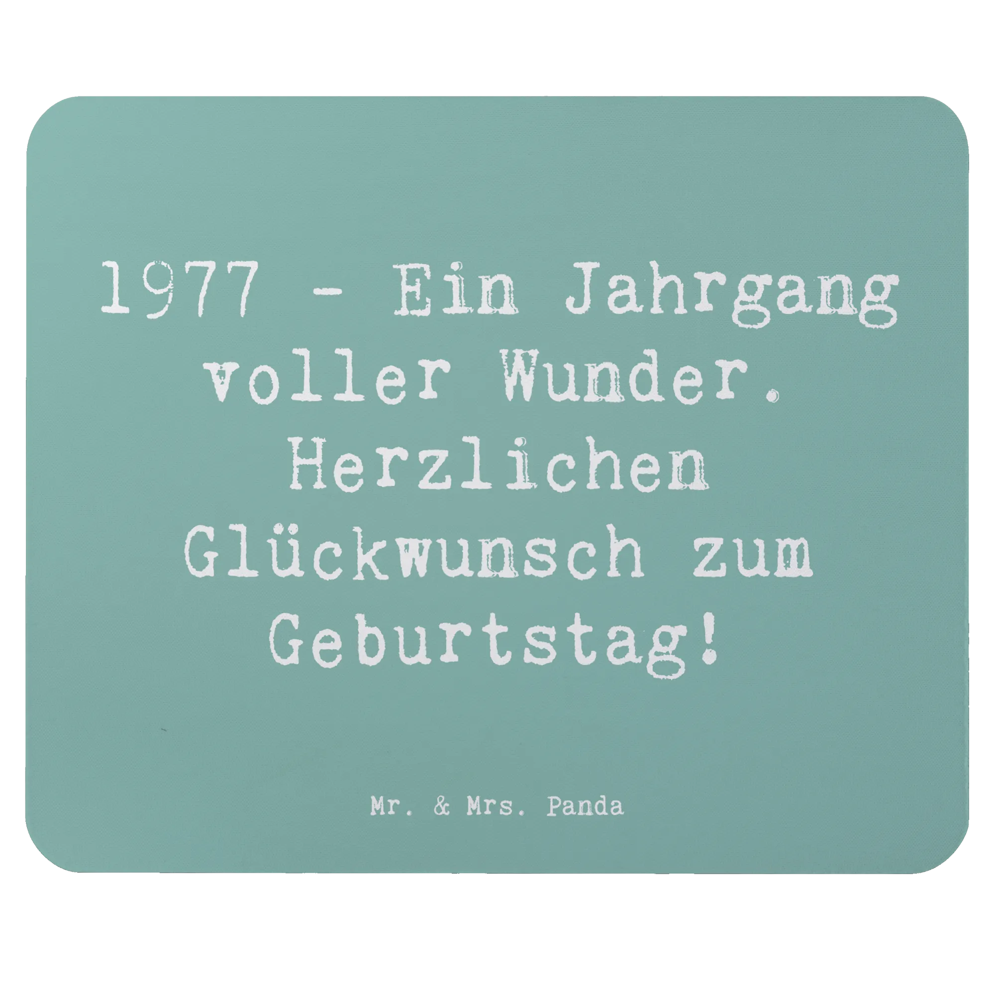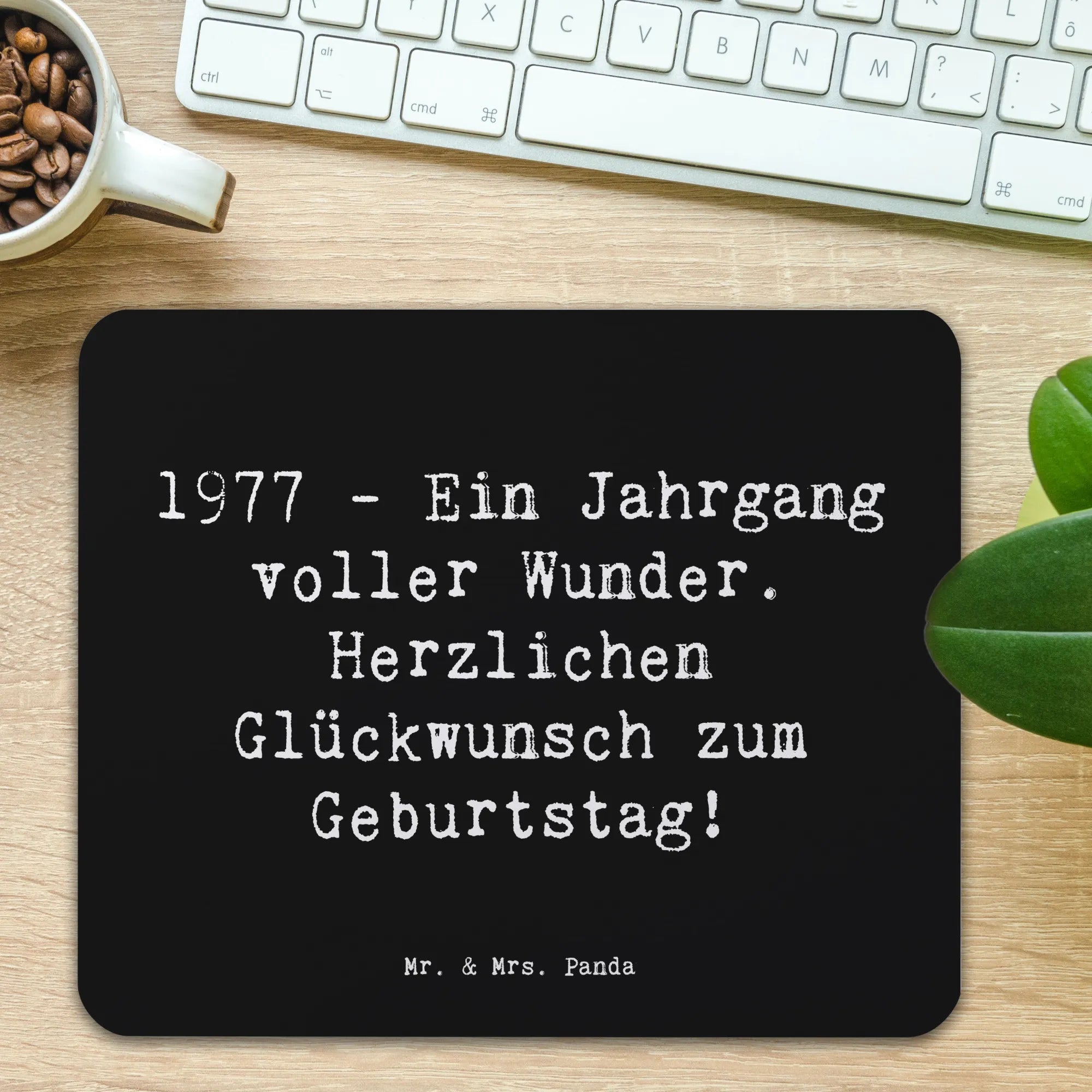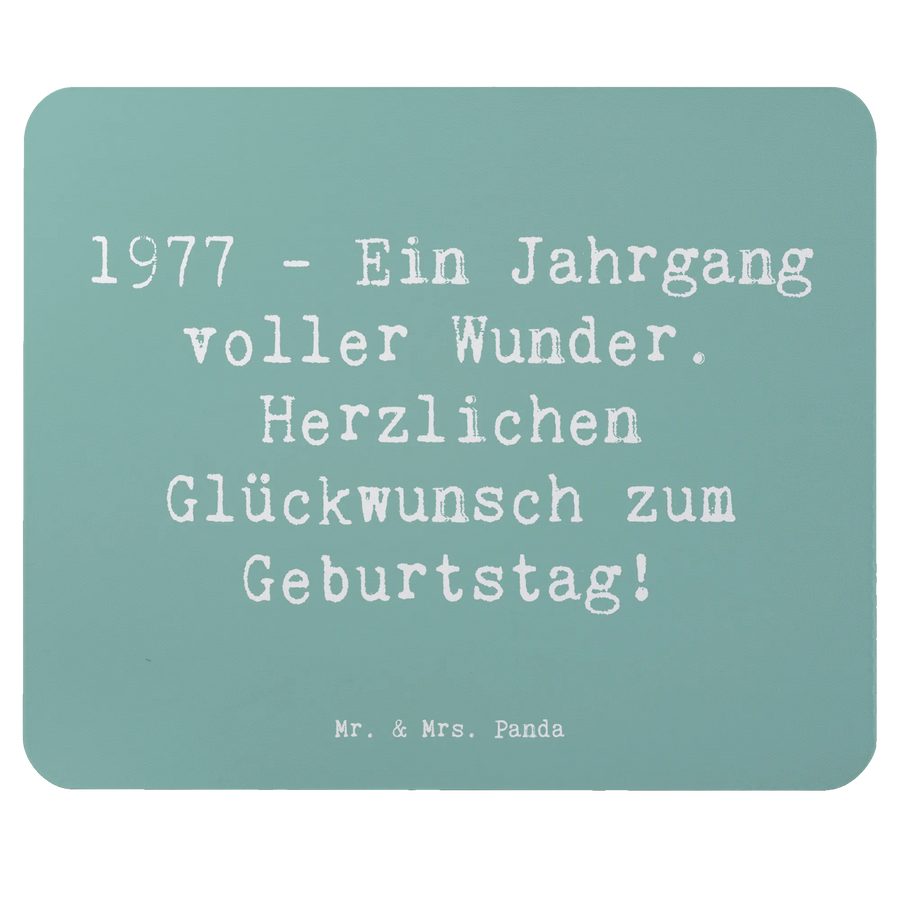 Entdecke das wundervolle Mauspad "1977 - Ein Jahrgang voller Wunder. Herzlichen Glückwunsch zum Geburtstag!" von Mr. & Mrs. Panda! Dieses einzigartige Mauspad ist das perfekte Geschenk für alle, die im Jahr 1977 das Licht der Welt erblickt haben und nun ihren ganz besonderen Geburtstag feiern.