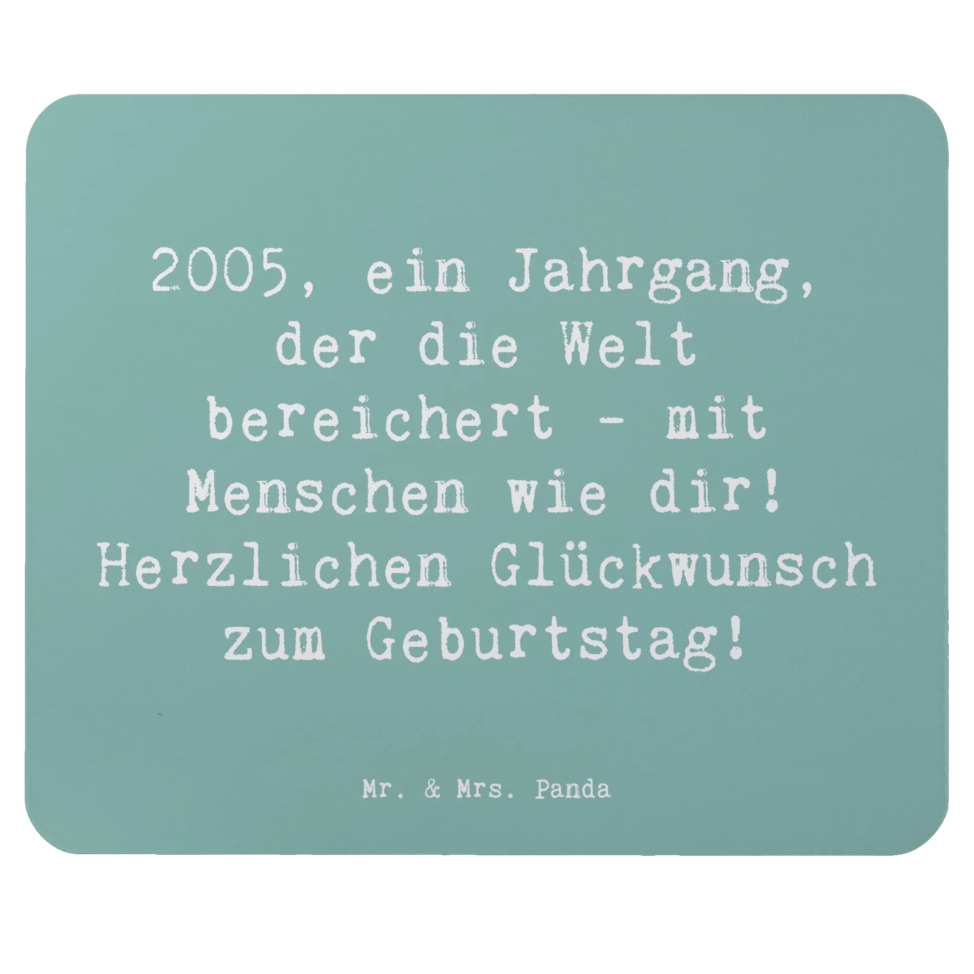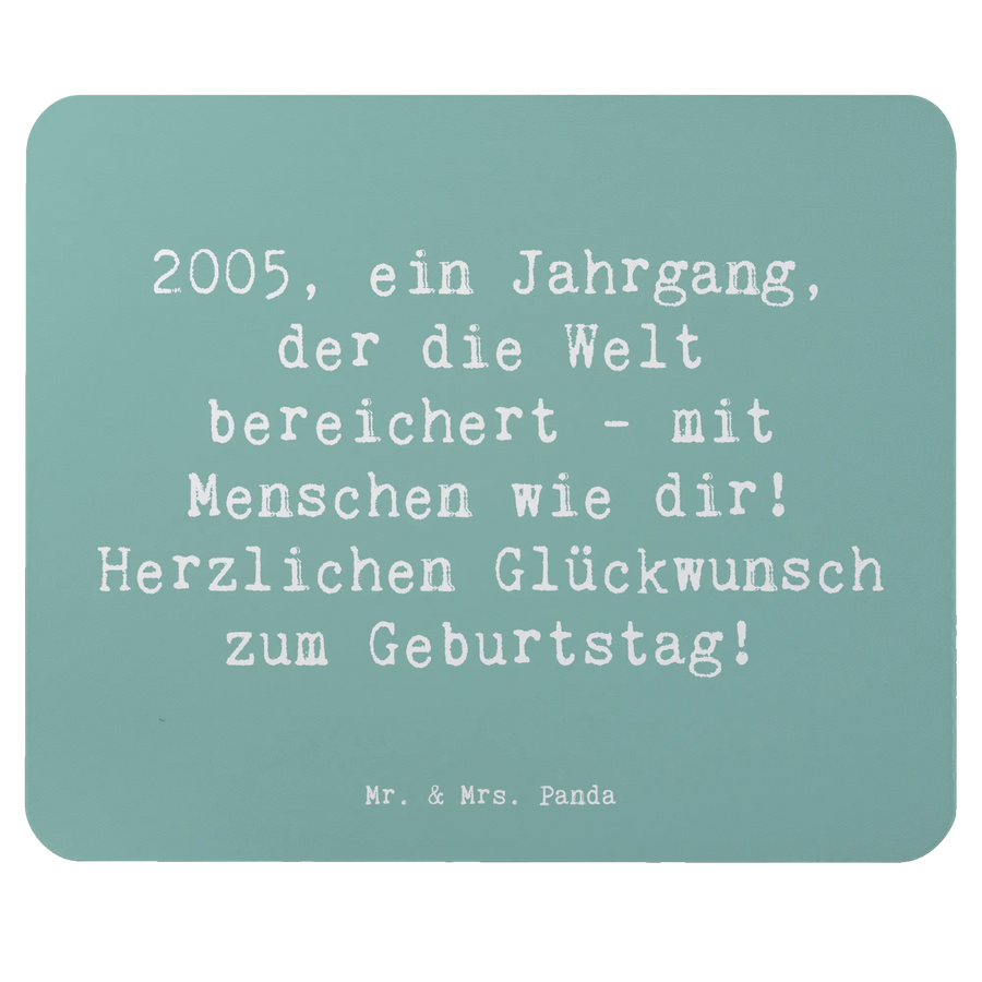 Suchst du nach dem perfekten Geschenk für einen ganz besonderen Menschen, der 2005 das Licht der Welt erblickte? Dann ist unser einzigartiges Mauspad von Mr. & Mrs. Panda genau das richtige für dich! Mit dem entzückenden Spruch: "2005, ein Jahrgang, der die Welt bereichert - mit Menschen wie dir! Herzlichen Glückwunsch zum Geburtstag!" zauberst du garantiert ein Lächeln ins Gesicht des Geburtstagskindes.