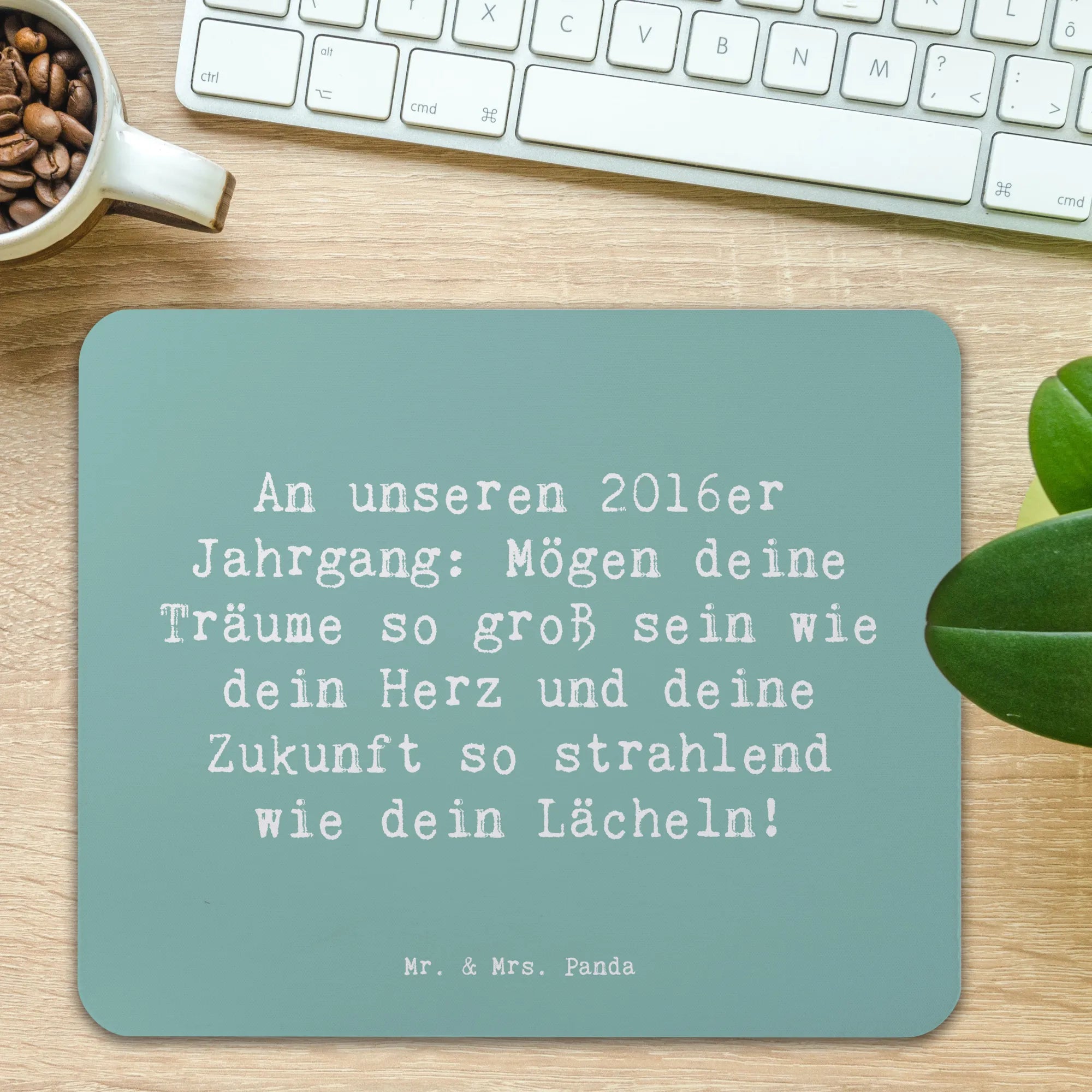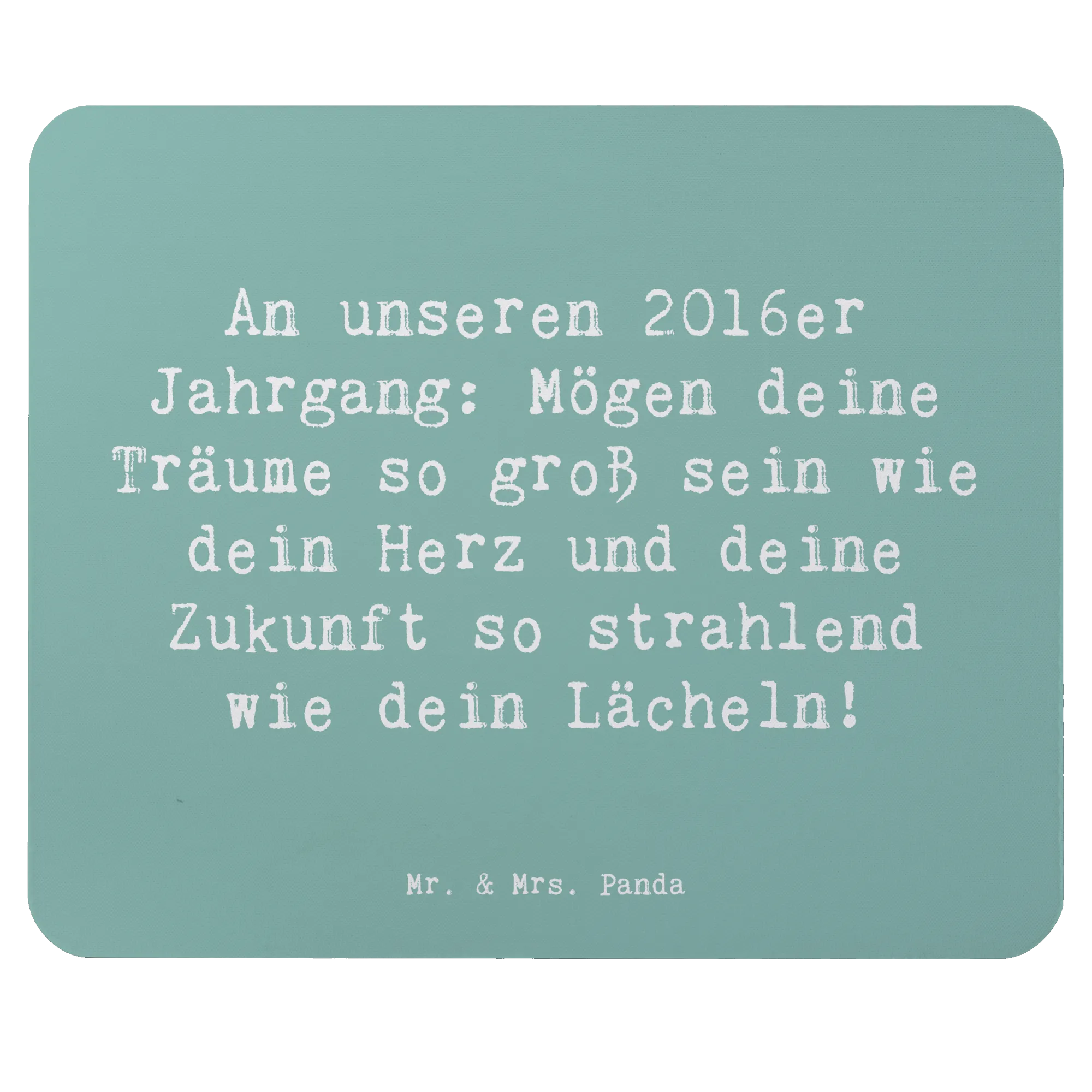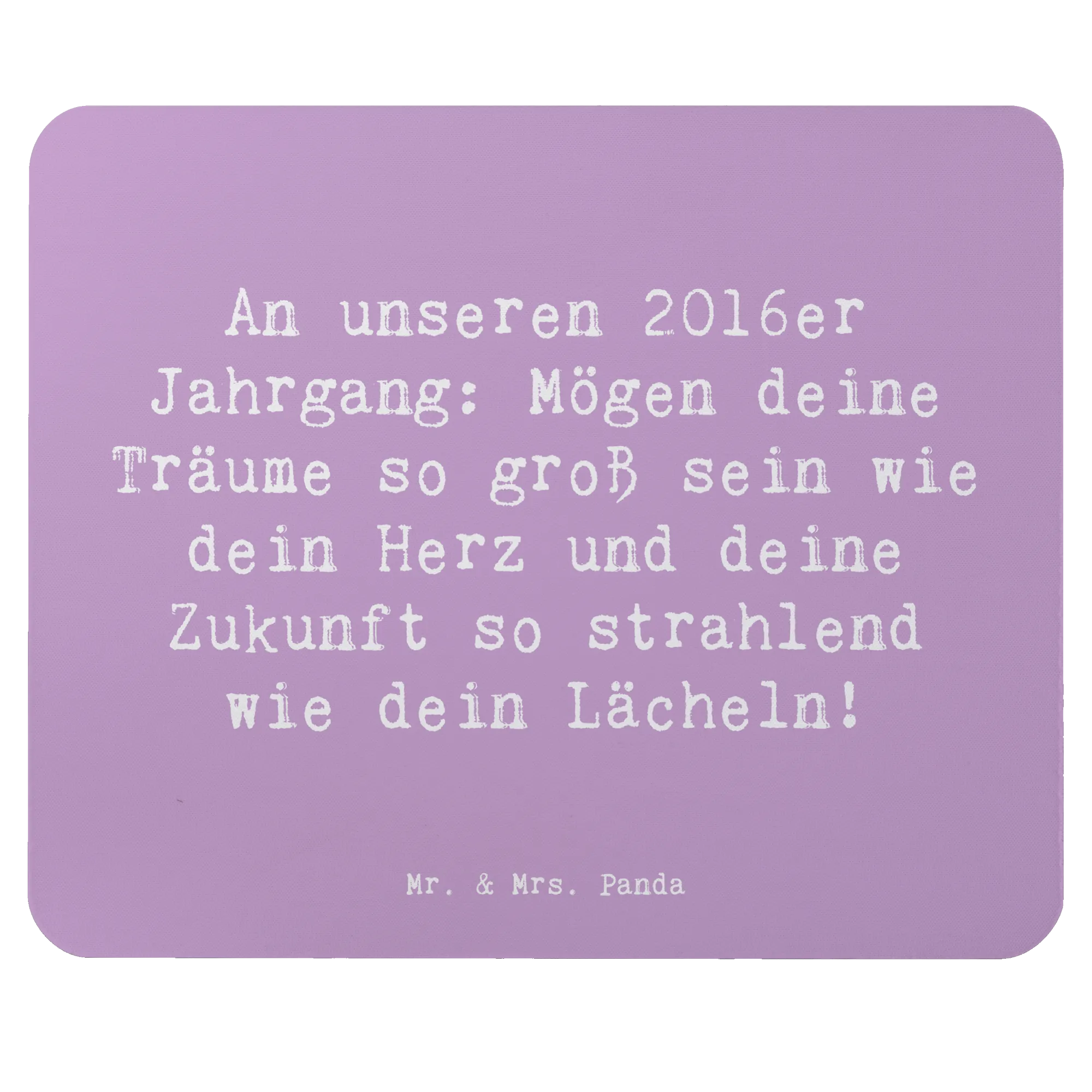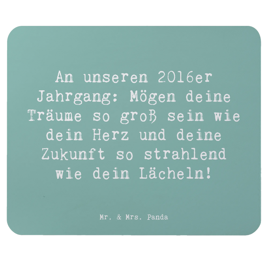 Suchst du nach dem perfekten Geschenk für einen 2016er Jahrgang? Dann ist unser wunderschönes Mauspad von Mr. & Mrs. Panda genau das Richtige! Mit dem Spruch "An unseren 2016er Jahrgang: Mögen deine Träume so groß sein wie dein Herz und deine Zukunft so strahlend wie dein Lächeln!" wird es zu einem einzigartigen Geburtstagsgeschenk, das nicht nur stylisch aussieht, sondern auch in jedem Arbeitszimmer oder Homeoffice zum Einsatz kommen kann.