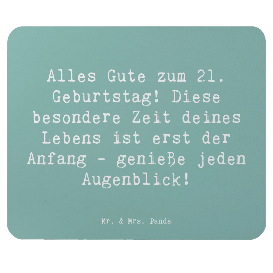Das Mauspad "Alles Gute zum 21. Geburtstag! Diese besondere Zeit deines Lebens ist erst der Anfang - genieße jeden Augenblick!" aus der bezaubernden Geburtstag-Alter-Kollektion von Mr. & Mrs. Panda ist das ideale Geschenk für jeden, der diesen besonderen Tag feiert. Mit liebevollen Sprüchen und einem bezaubernden Design bringt dieses Mauspad Freude und persönliche Note in jedes Arbeitszimmer oder Homeoffice.