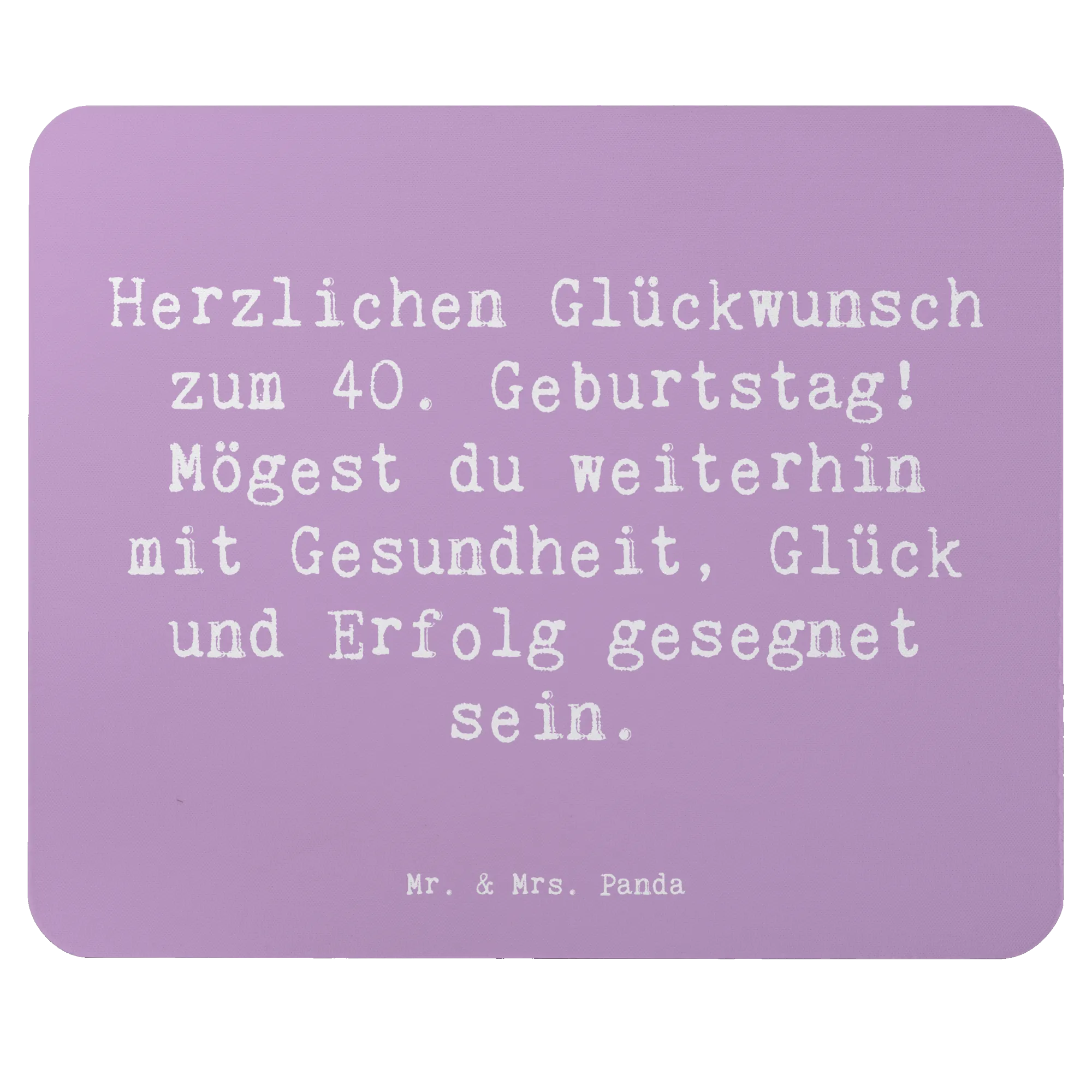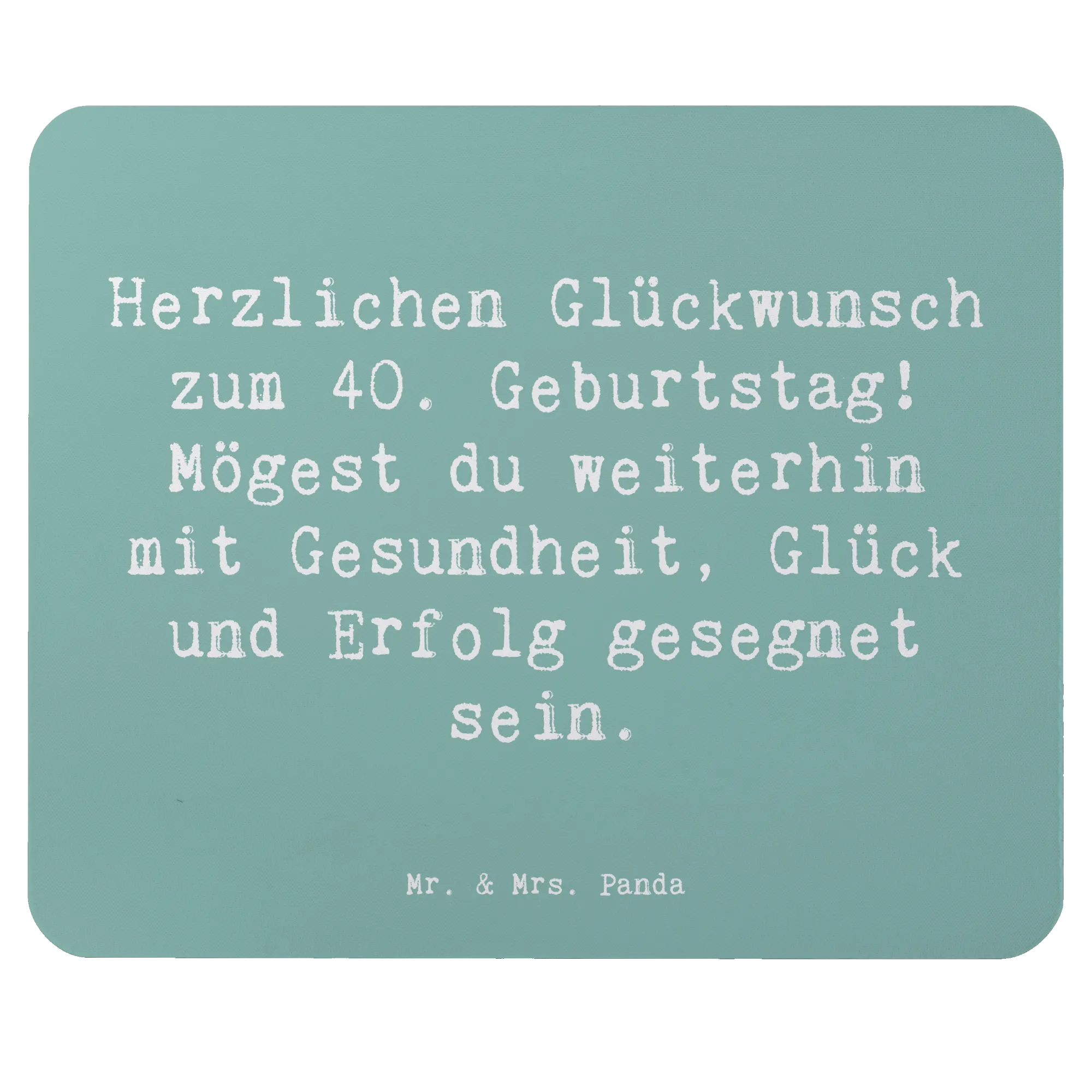 Du suchst nach dem perfekten Geburtstagsgeschenk für einen ganz besonderen Menschen? Dann ist unser Mauspad zum 40. Geburtstag von Mr. & Mrs. Panda genau das Richtige für dich! Dieses wundervolle und ergonomisch gestaltete Mauspad ist nicht nur praktisch für das Homeoffice oder den Arbeitsplatz, sondern bringt auch noch ein ganz besonderes Gefühl auf deinen Schreibtisch. Bedruckt mit dem herzlichen Spruch 'Herzlichen Glückwunsch zum 40. Geburtstag! Mögest du weiterhin mit Gesundheit, Glück und Erfolg gesegnet sein.', sorgt es dafür, dass jeder Arbeitstag mit Wärme und guten Wünschen beginnt.