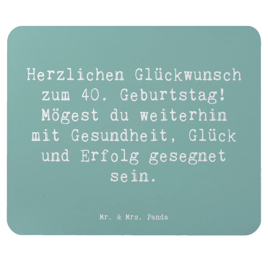 Das perfekte Geschenk für den 40. Geburtstag – unser hochwertiges Mauspad von Mr. & Mrs. Panda! Wenn Du auf der Suche nach einem einzigartigen Geburtstagsgeschenk bist, das sowohl praktisch als auch stilvoll ist, dann ist dieses Mauspad genau das Richtige für Dich. Mit dem besonderen Spruch "Herzlichen Glückwunsch zum 40. Geburtstag! Mögest du weiterhin mit Gesundheit, Glück und Erfolg gesegnet sein." wird jeder Schreibtisch zum echten Hingucker und gleichzeitig zollst Du dem Geburtstagskind den nötigen Respekt für diesen besonderen Tag.
