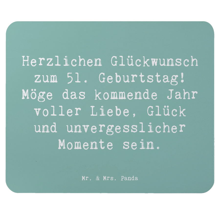 Suchst du das perfekte Geschenk zum 51. Geburtstag? Dann ist unser einzigartiges Mauspad von Mr. & Mrs. Panda genau das Richtige für dich! Mit dem herzlichen Spruch "Herzlichen Glückwunsch zum 51. Geburtstag! Möge das kommende Jahr voller Liebe, Glück und unvergesslicher Momente sein." versehen, bringt es nicht nur Freude, sondern auch eine persönliche Note in jedes Arbeitszimmer.
