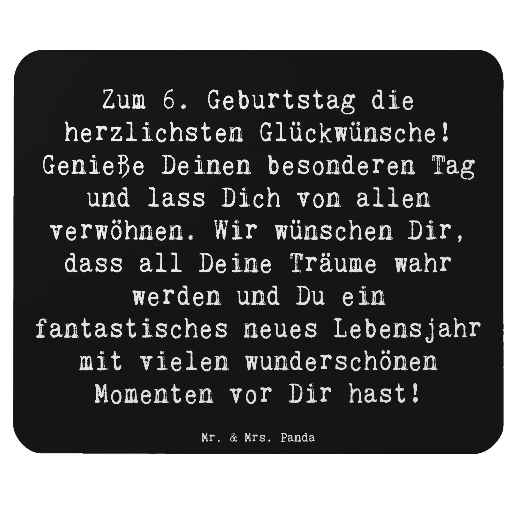 Bedruckt mit dem herzlichen Spruch: "Zum 6. Geburtstag die herzlichsten Glückwünsche! Genieße Deinen besonderen Tag und lass Dich von allen verwöhnen. Wir wünschen Dir, dass all Deine Träume wahr werden und Du ein fantastisches neues Lebensjahr mit vielen wunderschönen Momenten vor Dir hast!", ist dieses Mauspad eine wunderbare Möglichkeit, um Glückwünsche kreativ zu übermitteln.
