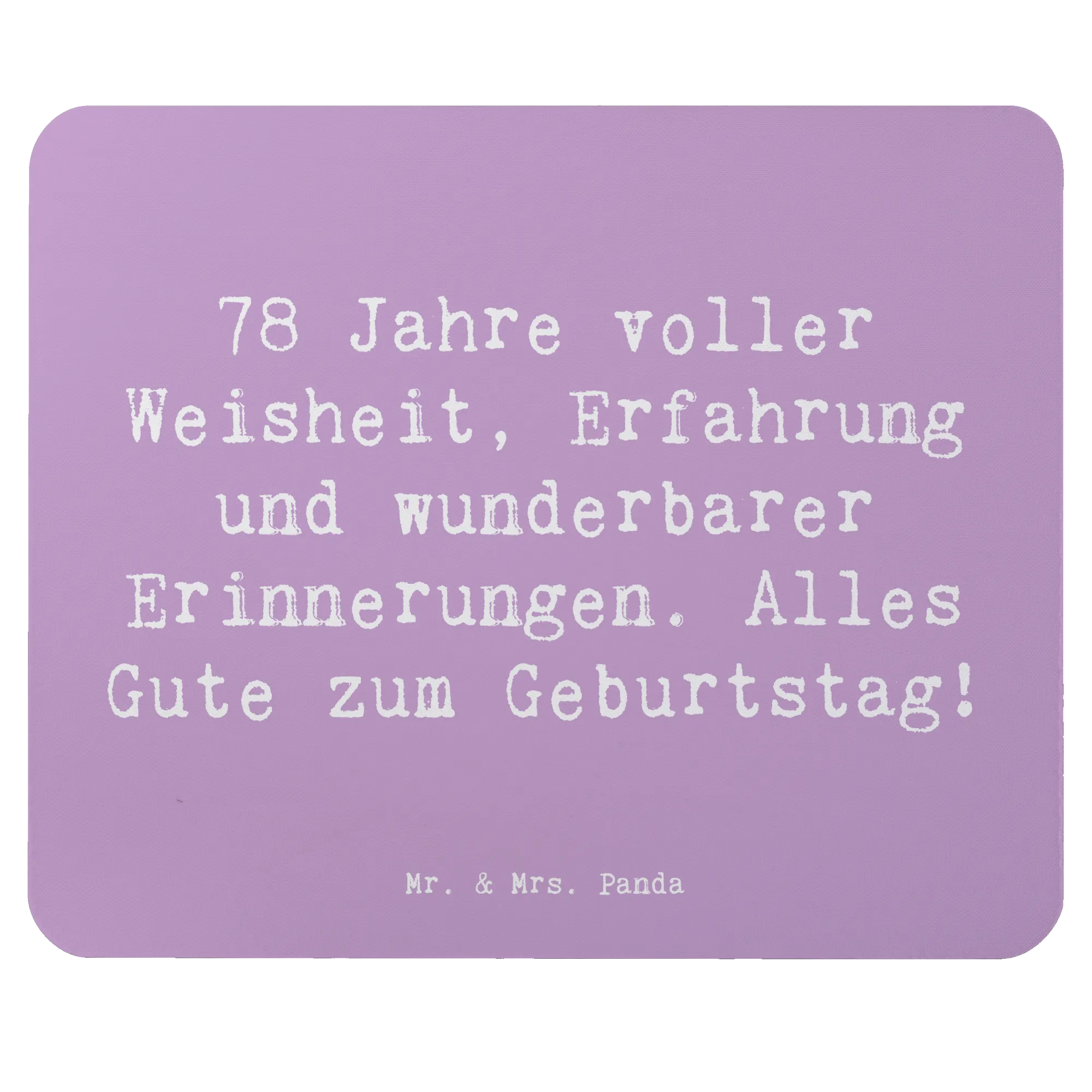 Das Mauspad „78 Jahre voller Weisheit, Erfahrung und wunderbarer Erinnerungen. Alles Gute zum Geburtstag!“ von Mr. & Mrs. Panda ist nicht nur ein praktisches PC Zubehör, sondern auch ein ganz besonderes Geschenk, das jedem Arbeitszimmer das gewisse Etwas verleiht!