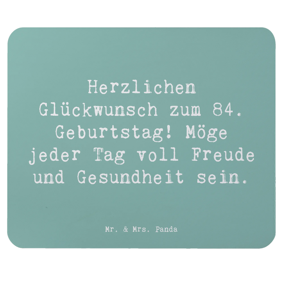 Mit dem Slogan "Herzlichen Glückwunsch zum 84. Geburtstag! Möge jeder Tag voll Freude und Gesundheit sein." bringt dieses Designer Mauspad nicht nur einen Hauch von Freude in den Alltag, sondern bietet auch eine wunderschöne, handgezeichnete Aquarellgrafik, die die Lebensfreude zelebriert. Die gesamte Geburtstagskollektion von Mr. & Mrs. Panda ist darauf ausgelegt, jeden Geburtstag unvergesslich zu machen und so ist auch dieses Mauspad ein echter Hingucker, der dem Schreibtisch das gewisse Extra verleiht.