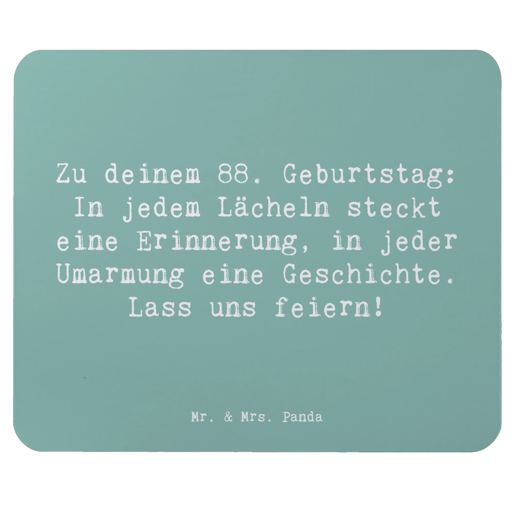 Feierst du bald einen ganz besonderen Geburtstag oder suchst du nach dem perfekten Geschenk für einen lieben Menschen, der seinen 88. Geburtstag feiert? Dann ist das Mauspad von Mr. & Mrs. Panda genau das Richtige! Mit dem liebevollen Spruch: "Zu deinem 88. Geburtstag: In jedem Lächeln steckt eine Erinnerung, in jeder Umarmung eine Geschichte. Lass uns feiern!" wird dieses Mauspad zu einem einzigartigen und emotionalen Begleiter im Arbeitsalltag oder Homeoffice.