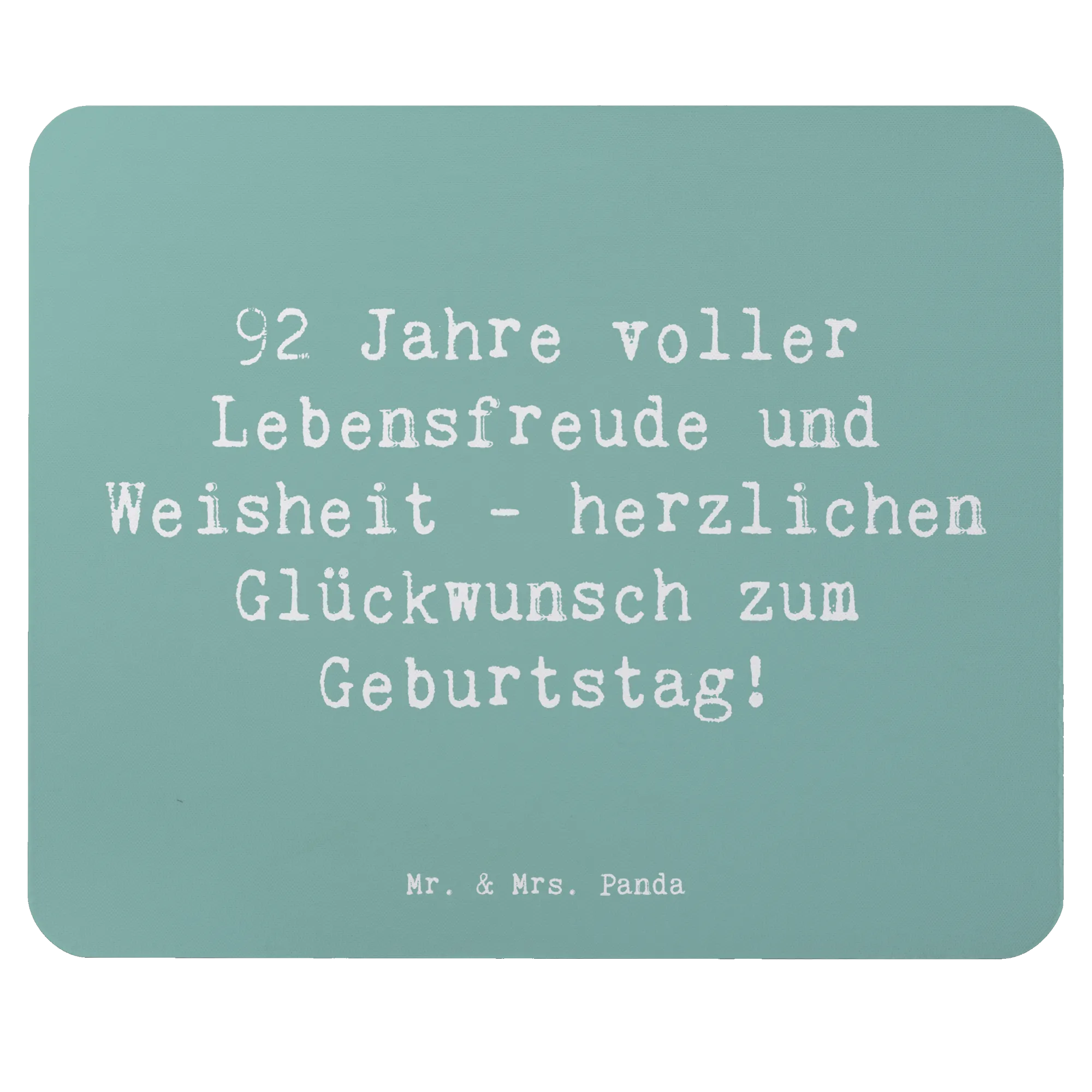 Das perfekte Geschenk für einen ganz besonderen 92. Geburtstag! Unser wunderschönes Mauspad von Mr. & Mrs. Panda wird den festlichen Anlass wunderbar unterstreichen. Mit dem liebevollen Spruch "92 Jahre voller Lebensfreude und Weisheit - herzlichen Glückwunsch zum Geburtstag!" sorgt es nicht nur für ein Lächeln, sondern erinnert auch daran, wie wertvoll die Zeit und die gemeinsamen Erinnerungen sind.