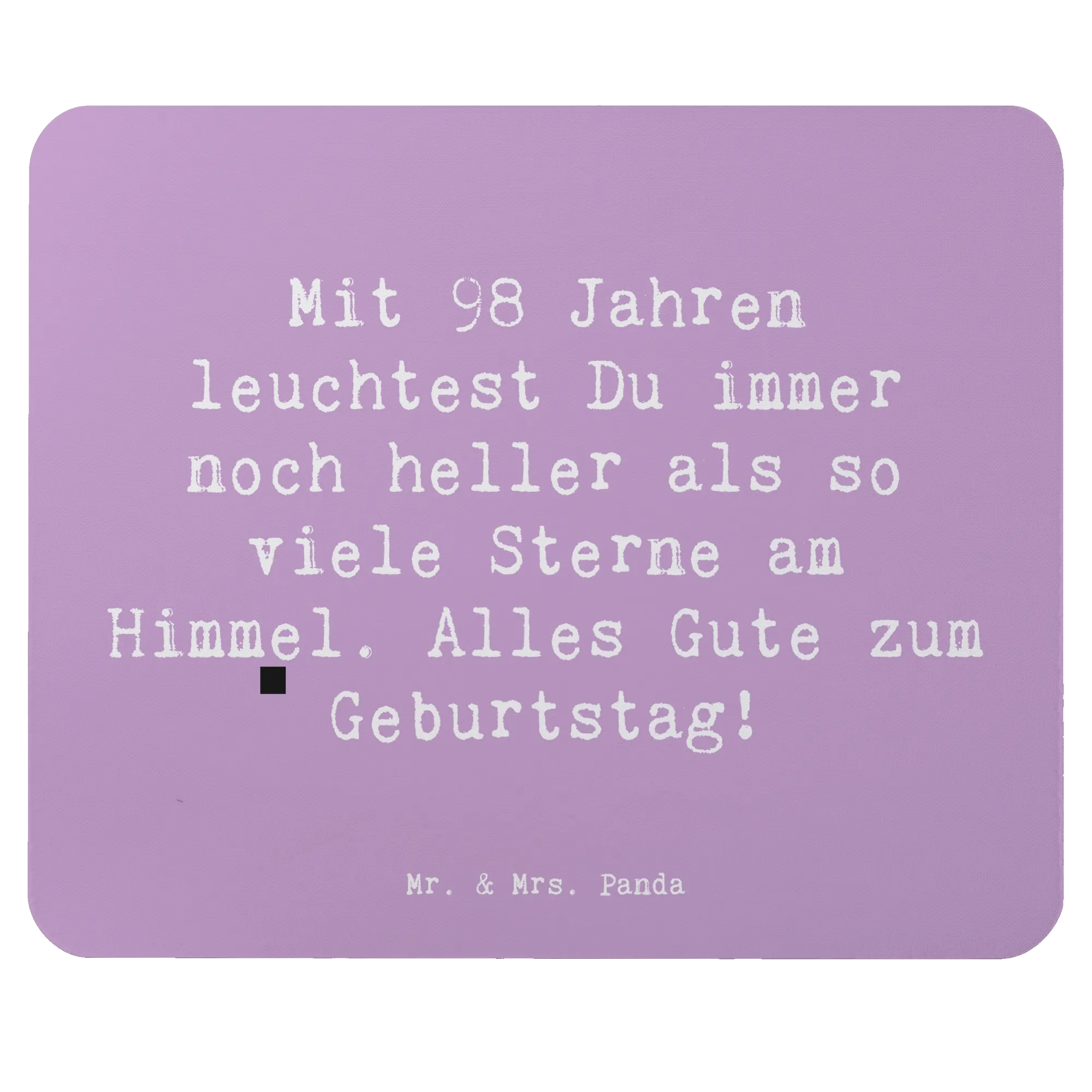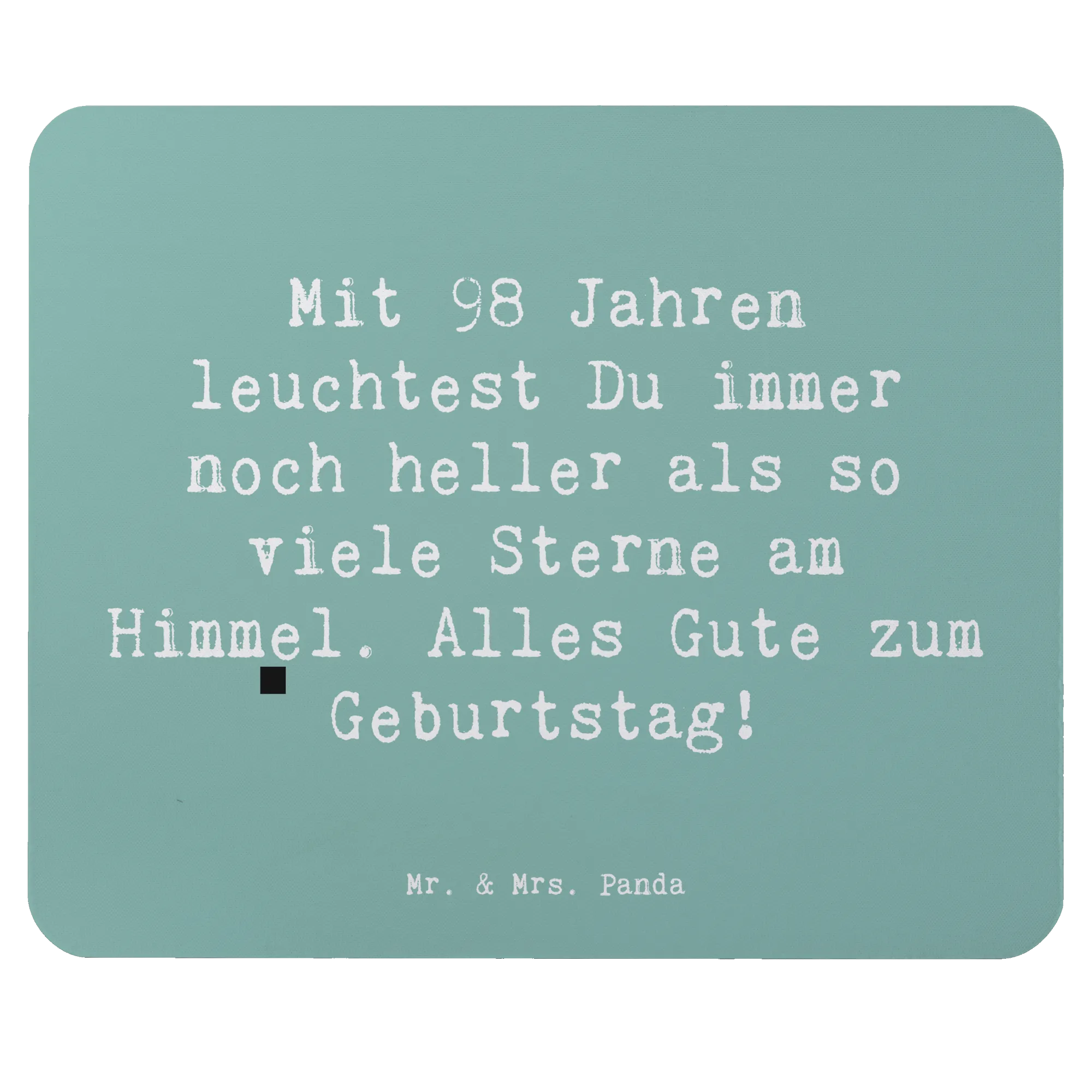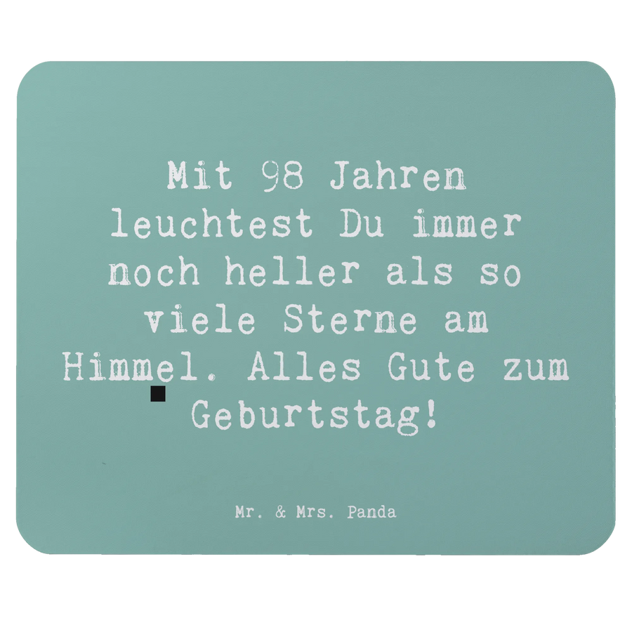 Das perfekte Mauspad zum 98. Geburtstag! Dieses exklusive Mauspad von Mr. & Mrs. Panda ist nicht nur ein praktisches Zubehör für dein Arbeitszimmer, sondern auch ein ganz besonderes Geschenk für liebe Menschen, die ihren 98. Geburtstag feiern. Mit dem inspirierenden Spruch "Mit 98 Jahren leuchtest Du immer noch heller als so viele Sterne am Himmel. Alles Gute zum Geburtstag!" wird das Mauspad zu einem herzlichen Erinnerungsgeschenk.