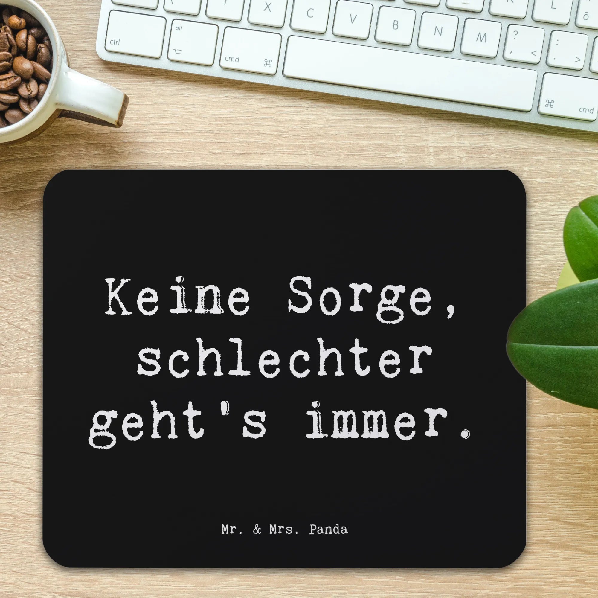 Hinzu kommt der charmante Spruch, der auf dem Mousepad prangt: "Keine Sorge, schlechter geht's immer." Dieser humorvolle Spruch bringt dir in stressigen Zeiten ein Lächeln ins Gesicht und erinnert dich daran, die Dinge gelassener zu sehen. Ganz gleich, ob du es für dich selbst kaufst oder als liebevolles Geschenk zu Anlässen wie Geburtstagen, Einweihungen oder einfach nur so verschenkst – dieses Mauspad bereitet Freude und macht Mut.