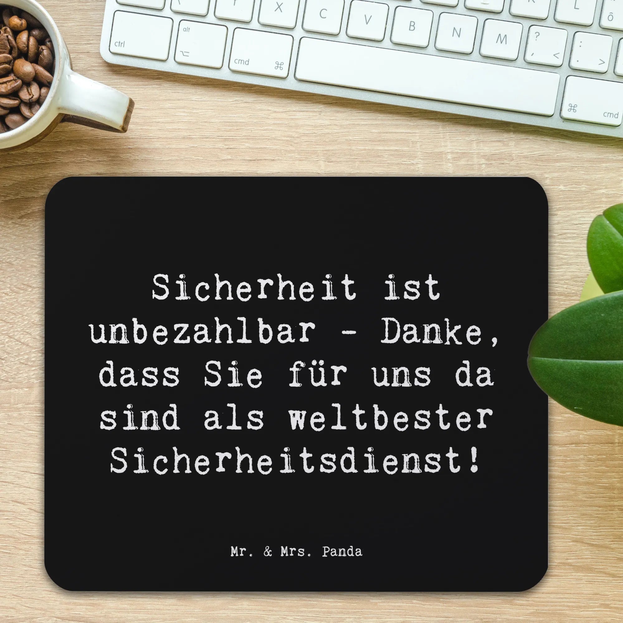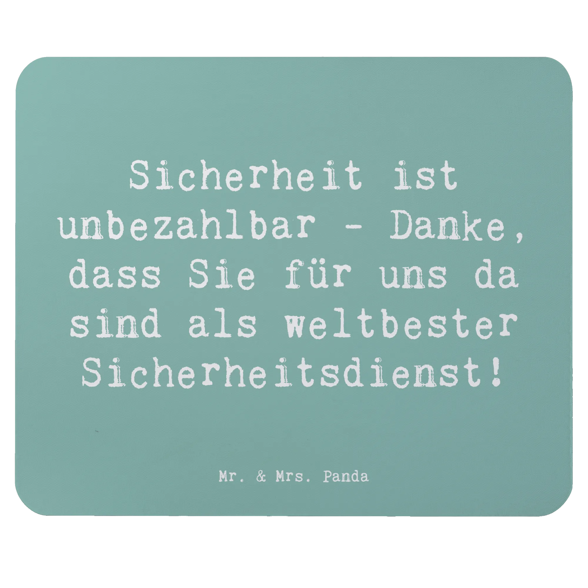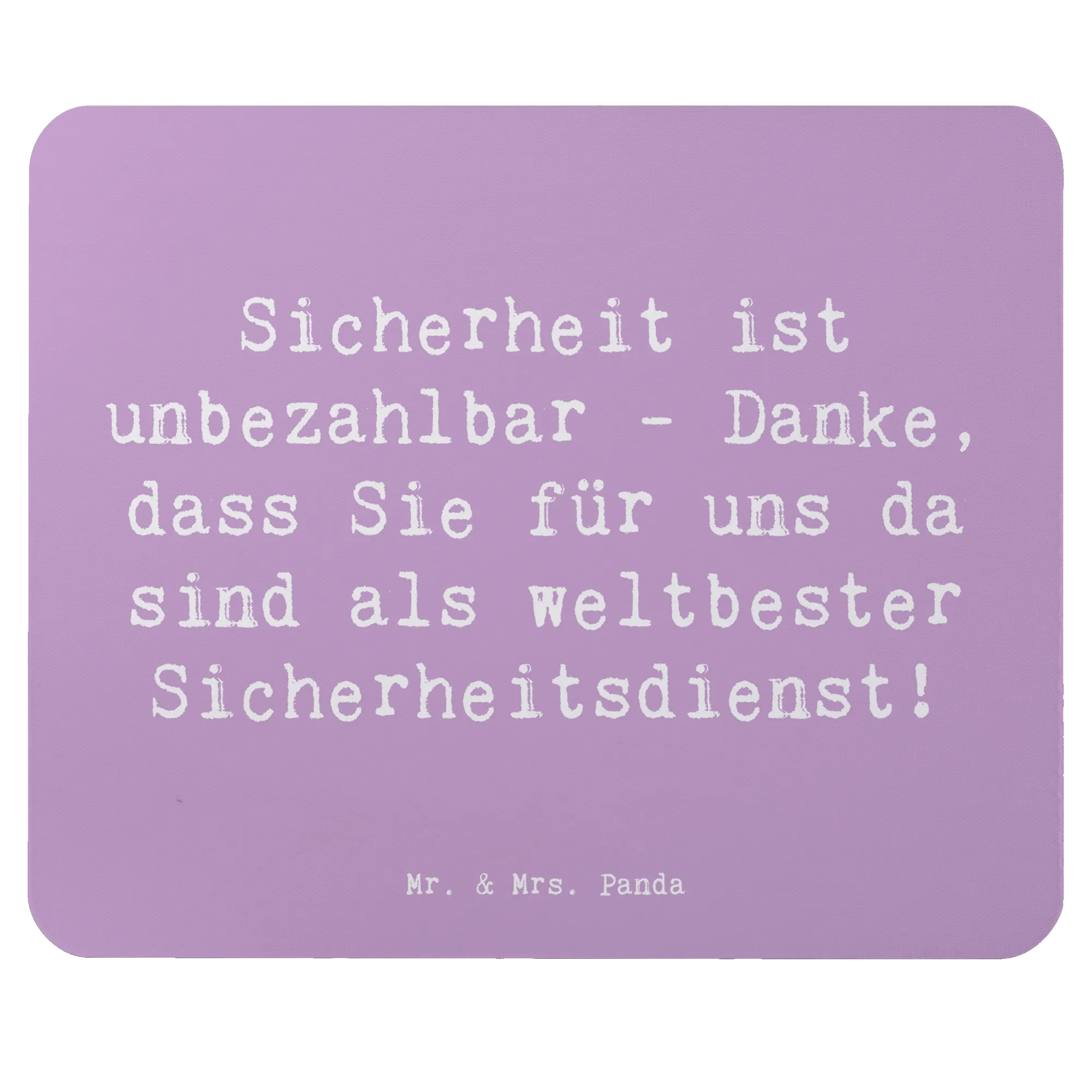 Das perfekte Geschenk für jeden Sicherheitsdienst und für all die Menschen, die ihnen für ihren unermüdlichen Einsatz danken möchten! Unser einzigartiges Mauspad mit dem liebevollen Spruch "Sicherheit ist unbezahlbar - Danke, dass Sie für uns da sind als weltbester Sicherheitsdienst!" aus der exklusiven 'Danke'-Kollektion von Mr. & Mrs. Panda ist nicht nur ein praktisches Büroaccessoire, sondern auch eine herzliche Geste der Anerkennung.
