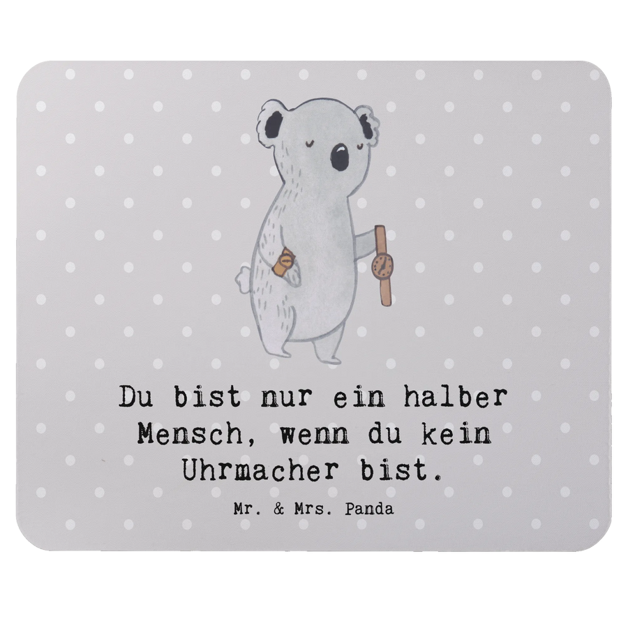 Mit einem süßen Koala, der stolz seine goldene Uhr präsentiert und dem witzigen Spruch "Du bist nur ein halber Mensch, wenn du kein Uhrmacher bist", begeistert dieses Mauspad jeden, der sich für die Welt der Uhren und der Zeit interessiert. Die ideale Wahl für Jubiläen, Abschiede von Kollegen oder einfach als Dankeschön für einen tollen Mitarbeiter.