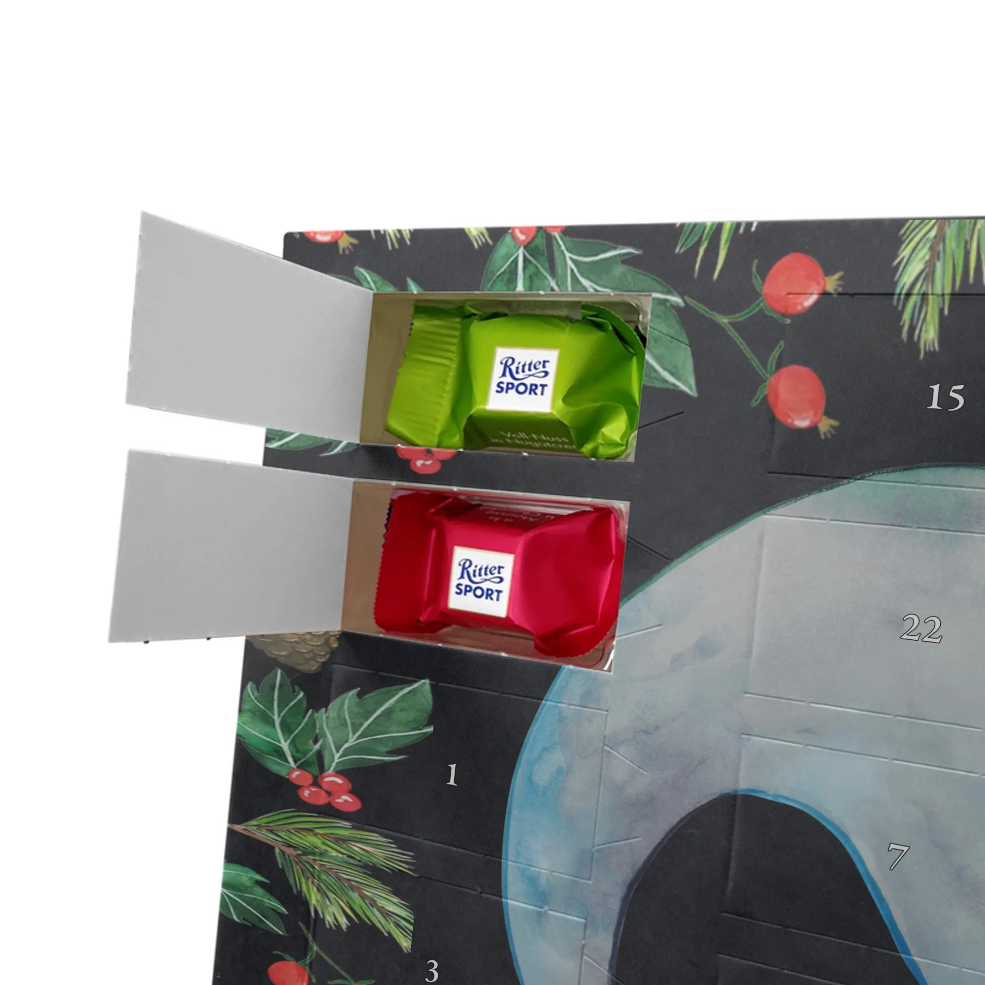Schon unser Schoko-Adventskalender von Mr. & Mrs. Panda gesehen? Ein liebevoll gestalteter Kalender, bedruckt mit wunderschönen Motiven & Sprüchen, der deine Adventszeit versüßt. Der Kalender ist nicht personalisierbar, überzeugt aber durch brillante Druckqualität mit seidenmatter Oberflächenveredelung und bedruckte Seitenflächen für ein rundum schönes Erscheinungsbild. Maße: 325 mm x 225 mm x 27 mm. Du kannst ihn aufhängen oder aufstellen – ganz wie es dir gefällt. Gefüllt mit Ritter Sport Schokowürfeln in köstlichen Sorten: Mousse au Chocolat, Schoko Crisp, Voll-Nuss in Nougatcreme, Karamell Duo, Joghurt und Erdbeer-Joghurt. Bitte beachten: Es handelt sich um einen Kalender gefüllt mit Ritter Sport Schokolade, nicht um einen Kalender der Marke Ritter Sport. Ob als Geschenk oder für dich selbst – dieser Schoko-Adventskalender bringt täglich kleine Glücksmomente und süße Überraschungen.