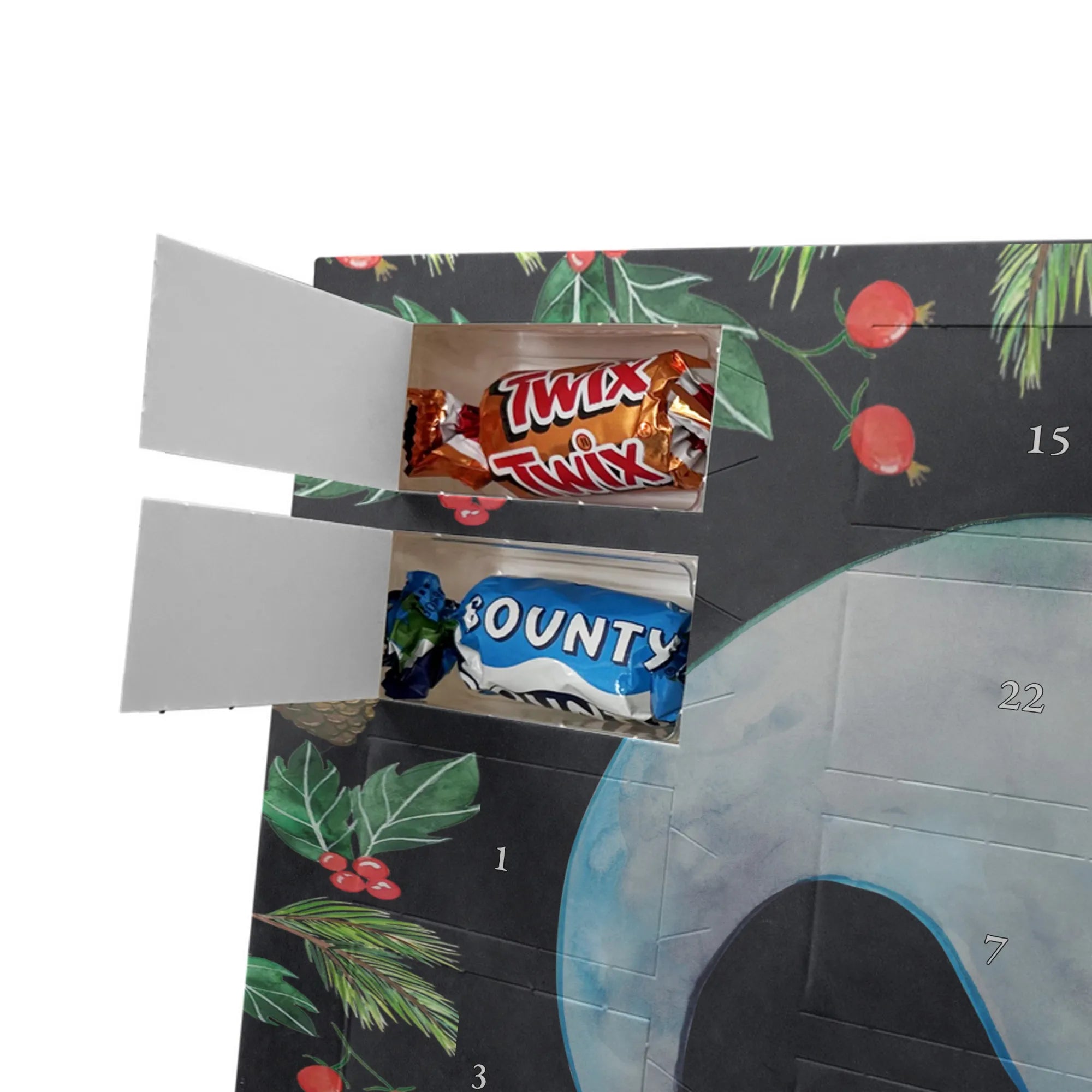 Unser Schoko Adventskalender von Mr. & Mrs. Panda bringt dir und deinen Lieben jede Menge Vorfreude und zauberhafte Momente in die Adventszeit. Der Kalender ist liebevoll bedruckt mit wunderschönen Motiven und frechen Sprüchen im typischen Mr. & Mrs. Panda Stil – ein echter Blickfang auf dem Tisch oder an der Wand. Die brillante Druckqualität kombiniert mit einer seidenmatten Oberflächenveredelung sorgt für edle Farben und ein angenehmes Gefühl beim Anfassen. Auch die Seitenflächen sind bedruckt, sodass der Kalender von allen Seiten hübsch aussieht. Er ist nicht personalisierbar, dafür aber in seiner Gestaltung rundum stimmig. Gefüllt ist der Adventskalender mit 24 hochwertigen Celebrations-Füllungen in acht verschiedenen Sorten: Maltesers, Mars, Snickers, Twix, Milky Way, Bounty, Galaxy und Galaxy Caramel — so ist für jede Naschkatze etwas dabei. Die Besonderheit: Du kannst den Kalender entweder aufstellen oder dank rückseitiger Aufhängung an die Wand hängen. Maße: 325 mm x 225 mm x 27 mm. Ein liebevolles Geschenk für Familie, Freunde oder einfach für dich selbst, das kleine tägliche Glücksmomente schenkt und die Adventszeit versüßt.