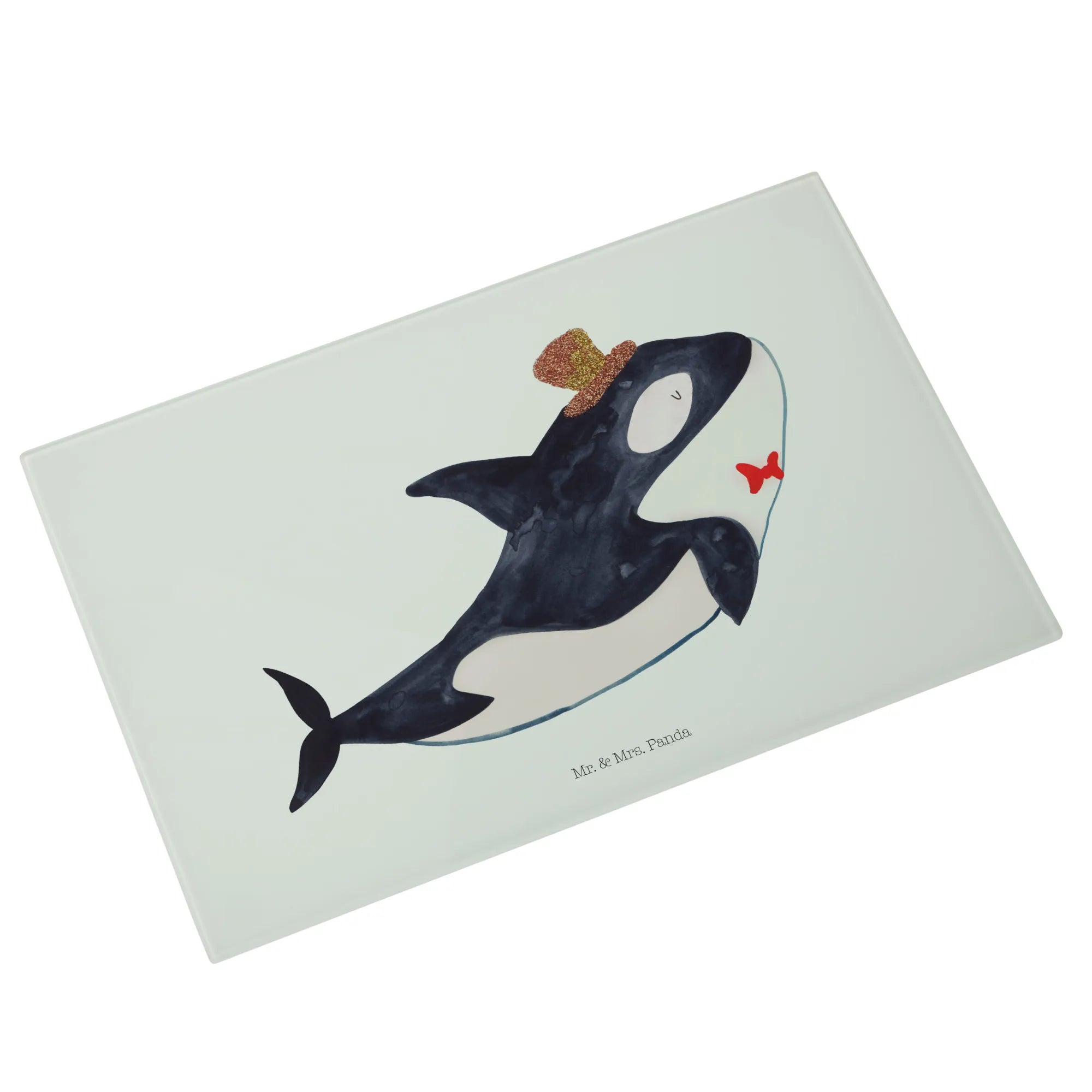 Das XL Glas Schneidbrett Orca Zylinder von Mr. & Mrs. Panda ist das perfekte Küchenaccessoire für alle Meerestiere-Fans! Mit seinem bezaubernden Motiv eines liebevollen Orcas, der einen Zylinder trägt, bringt es nicht nur Freude in die Küche, sondern ist auch ein stylisches Statement.