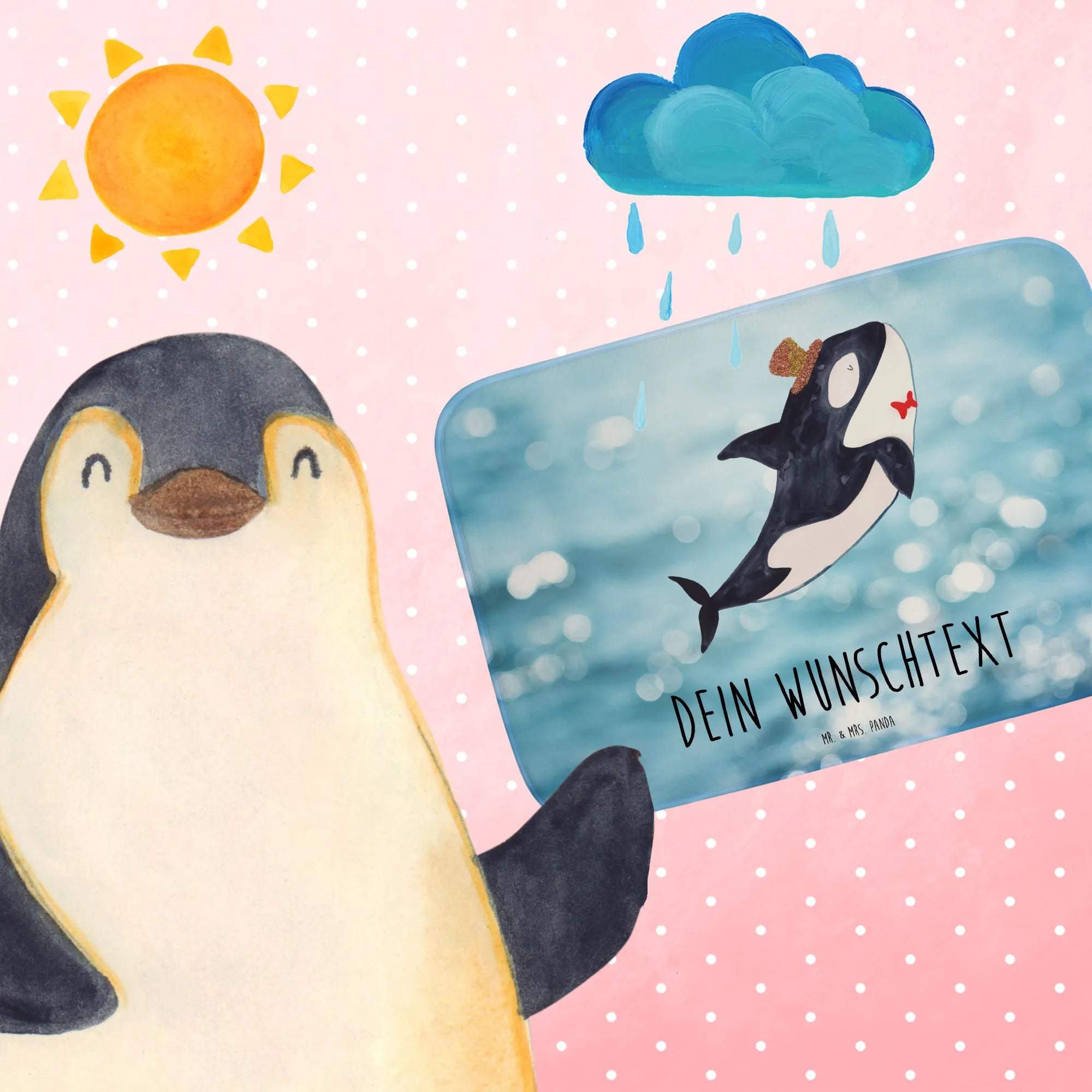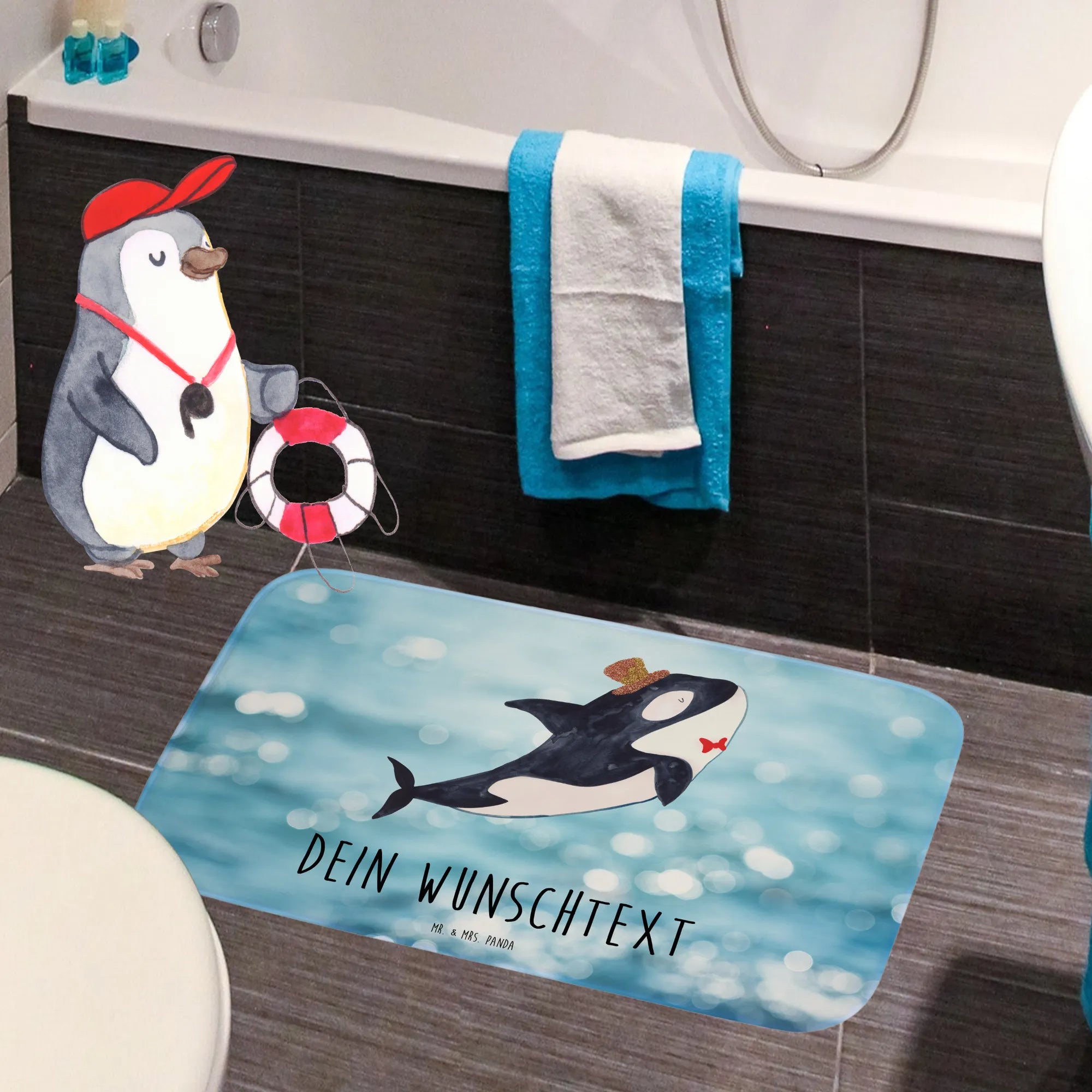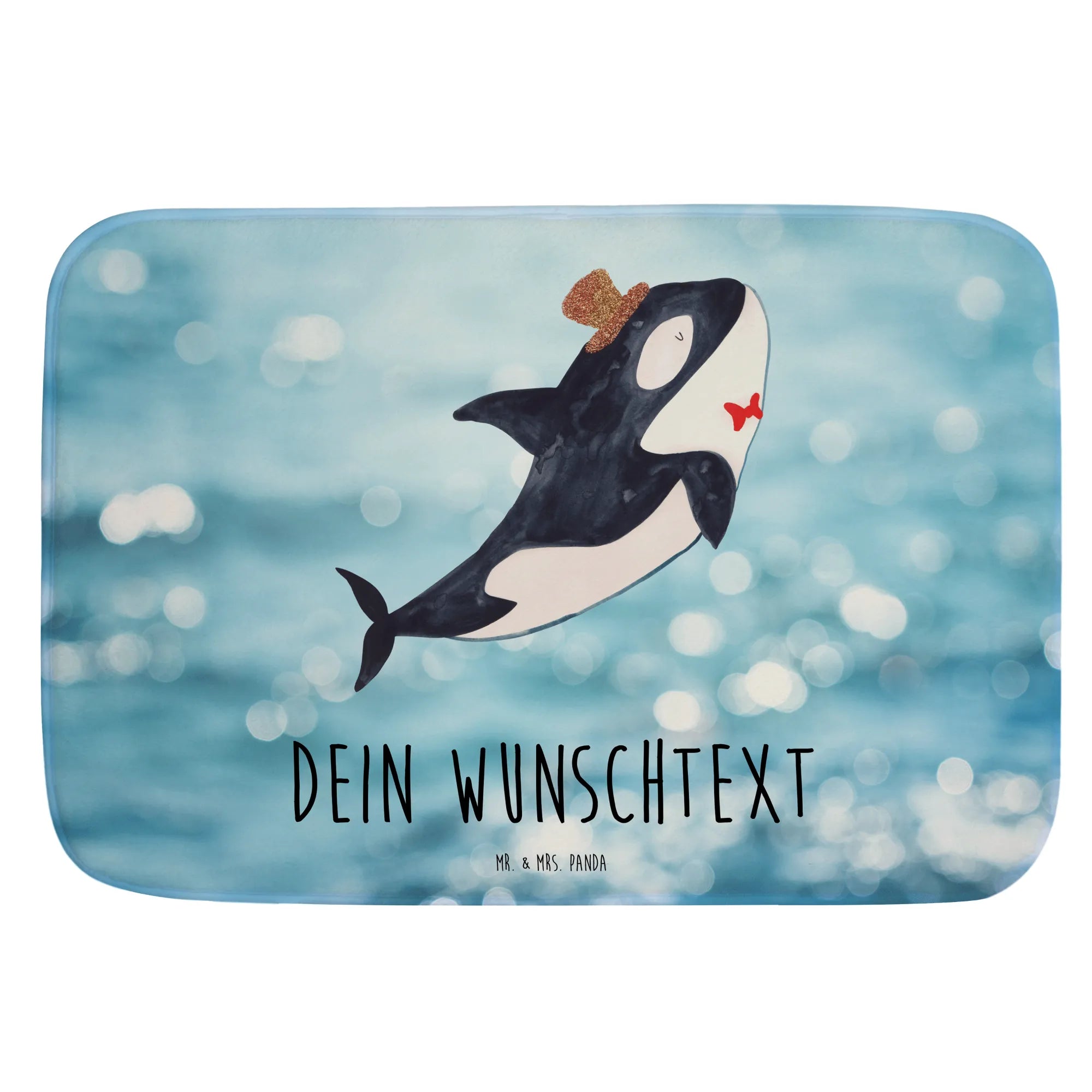 Entdecke den perfekten personalisierten Badvorleger von Mr. & Mrs. Panda mit dem bezaubernden Orca Zylinder Motiv! 🐋🎩 Diese flauschige Badematte bringt nicht nur einen Hauch von Meer in dein Badezimmer, sondern sorgt auch für eine warmherzige und einladende Atmosphäre. Der niedliche Orca mit seinem stilvollen Zylinder und dem kleinen roten Fisch fängt sofort das Herz eines jeden Meerestiere-Fans.
