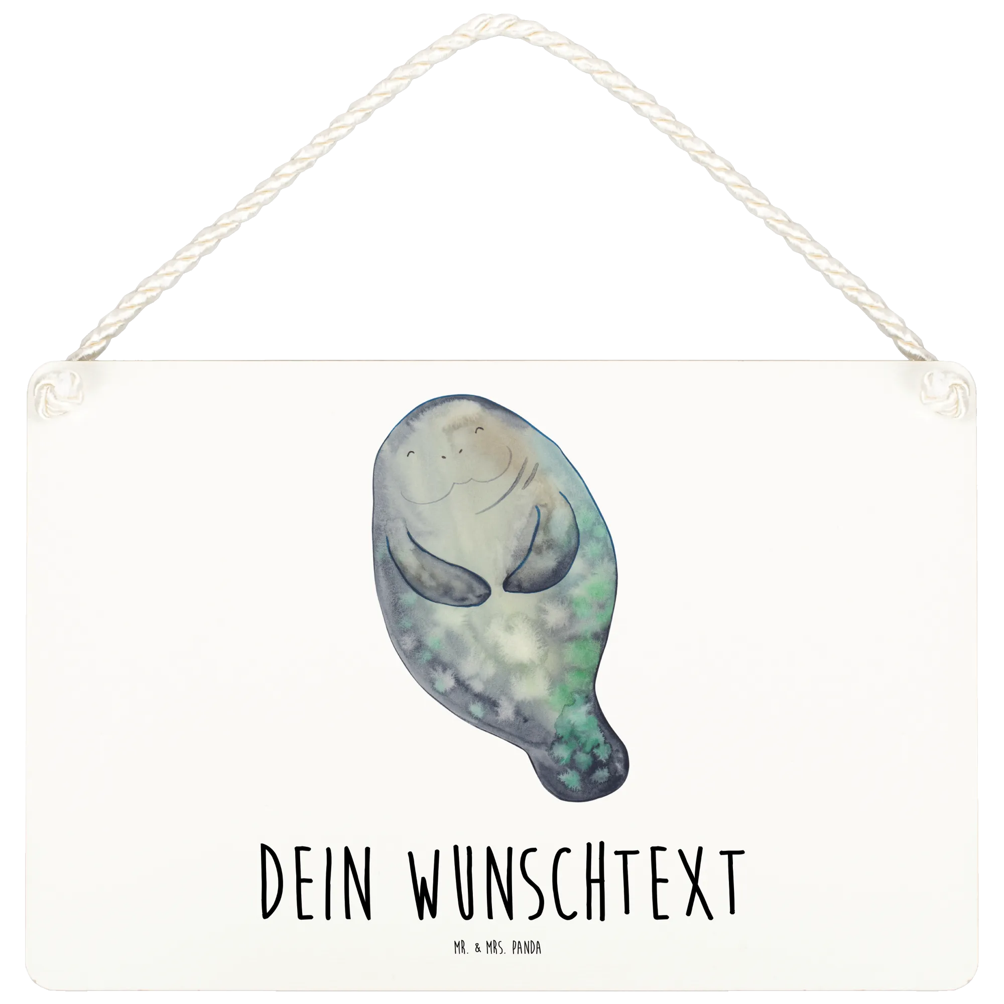 Das personalisierte Deko Schild mit dem fröhlichen Seekuh-Motiv von Mr. & Mrs. Panda ist das perfekte Geschenk für alle, die das Leben im Einklang mit der Natur genießen und sich selbst nicht zu ernst nehmen.